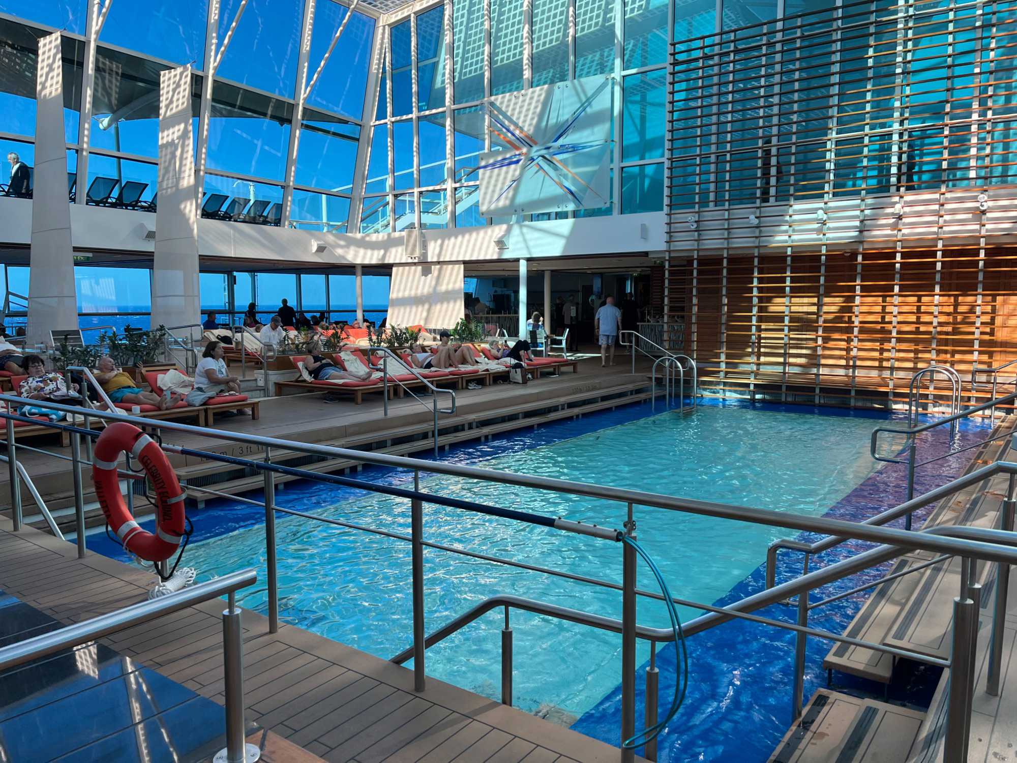 Nous prenons le temps de bien déjeuner, puis, on se lance à la découverte plus approfondie de l’Equinox. Nous n’avons pas encore pris nos repères, et on se dit souvent: “De quel côté est l’Ocean View Café, il me semble que c’est à gauche, au 12e ou au 14e?” Disons qu’on fait quelques pas d’extra, ce qui n’est pas mauvais pour le tour de taille qui en prend pour son rhume.