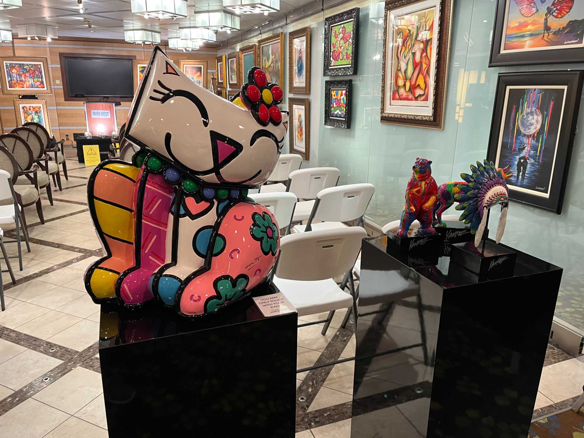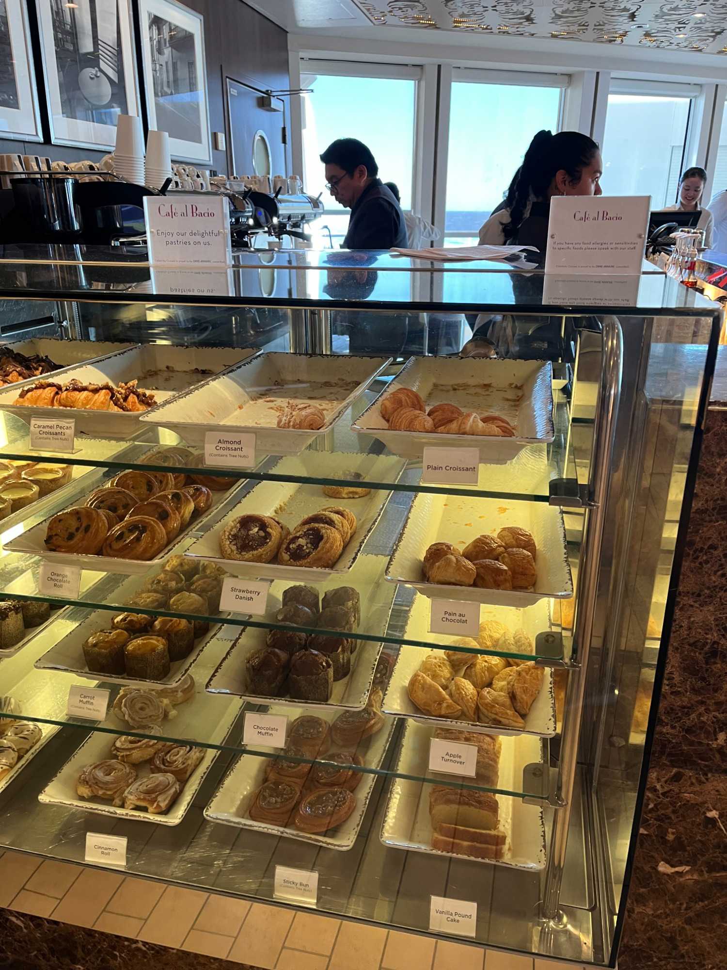 Pont 5: le théâtre, les boutiques, la galerie d’art, le café al Bacio (un must pour le capuccino du matin), les restaurants de spécialités dont le Sushi on Five, le Tuscan, le fameux Petit Chef repas-spectacle, le Murano, réputé pour sa cuisine traditionnelle française (nous aurons le plaisir d’y manger)