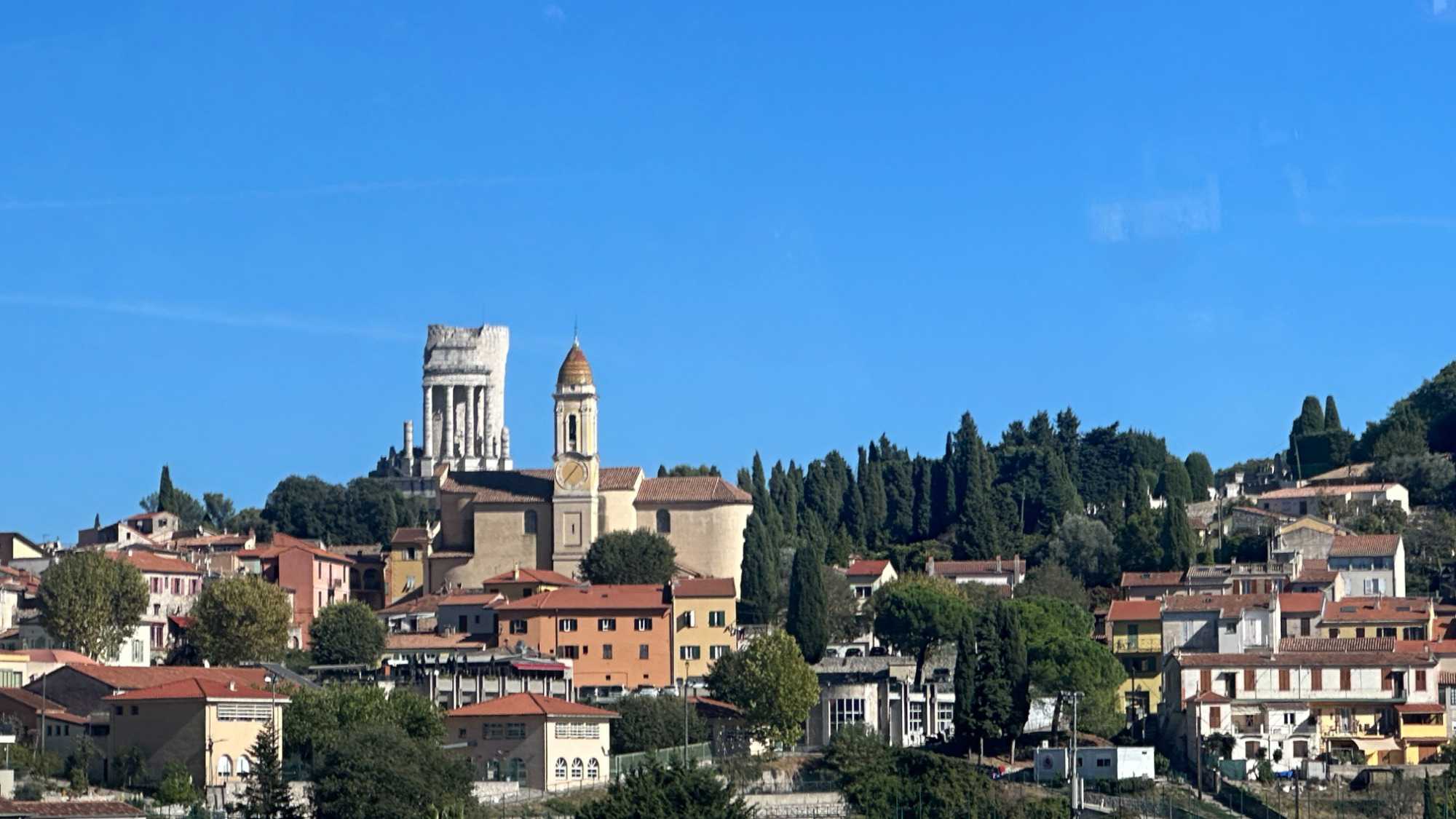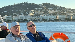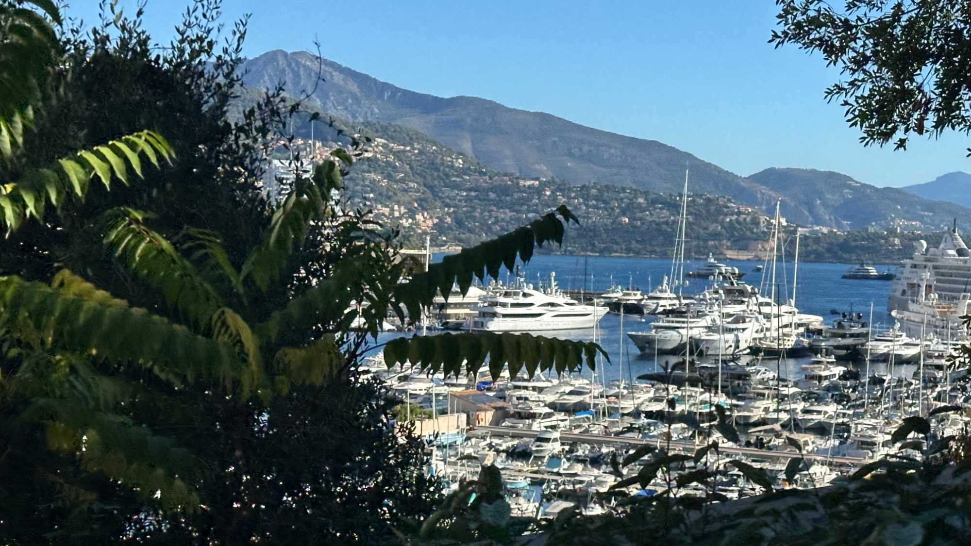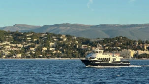En redescendant sur la moyenne corniche, depuis notre autocar, nous profitons d'une vue incroyable sur votre navire ancré dans la baie de Cannes.