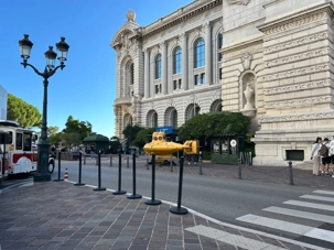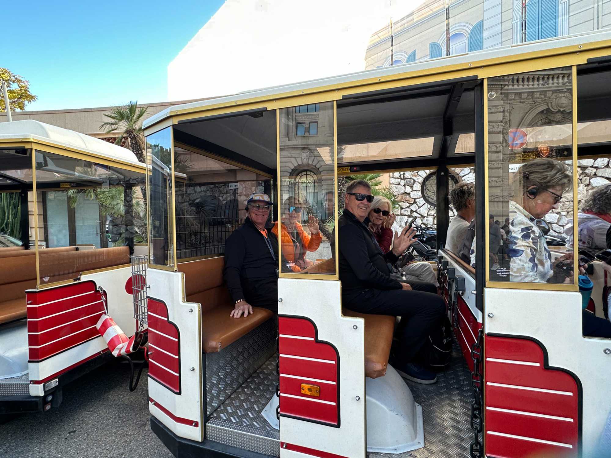 C’est aussi l’endroit au monde où l’on retrouve le plus grand nombre de voitures de luxe par kilomètres carrés! À Monaco présentement, tous les équipements servant à réaliser le Grand Prix de Formule 1 sont entreposés le long de l’autoroute que nous empruntons. Camille nous explique d’où partent les voitures de courses et notre autobus suit une bonne partie du parcours en question. Nous franchissons la ligne de départ en train touristique, pour enfiler quelques rues étroites et un des tunnels empruntés par les voitures de courses lors de l’évènement. C’est difficile d’imaginer des vitesses dépassant les 200 km/h dans ces rues si étroites. Rappelons qu’au grand prix dee 1922, les voitures roulaient à 80 km/h !