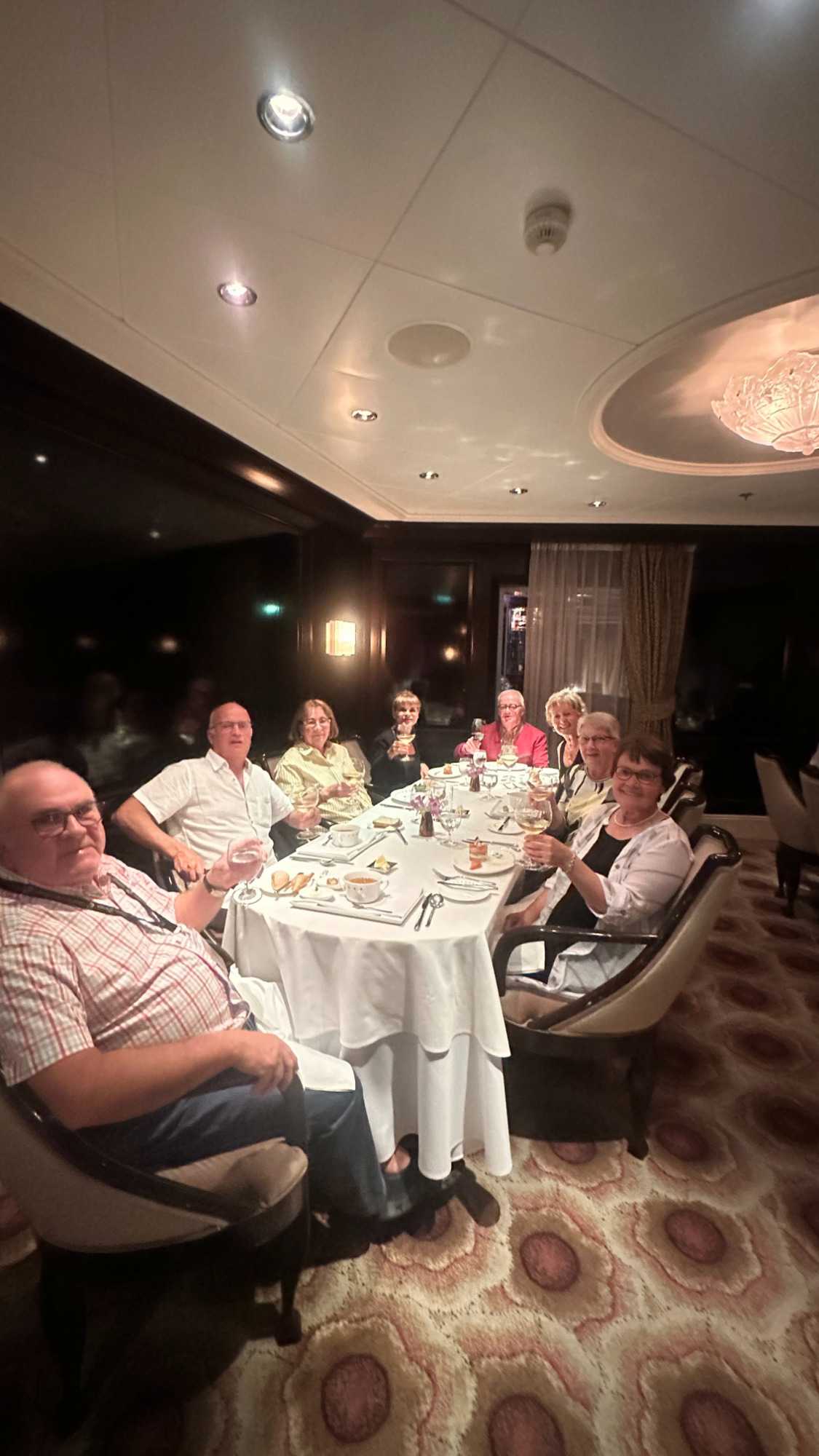 La journée est loin d’être terminée! 26 d’entre-nous avons rendez-vous au restaurant de spécialité française Murano. Mamamia! Quelles belles tables, quel accueil, quel bon repas nous avon eu! Le service 5 étoiles, attentionné, nous ont accueillis commes des reines et rois. Les serveurs qui découvrent les couverts tous en même temps pour créer un effet Wow. Mission accomplie, nous sommes sous le charme. Délicieux. Homard flambé, Rissotto aux truffes, Châteaubriand, poitrines de canard, etc., tout y était pour nous régaler !
