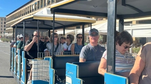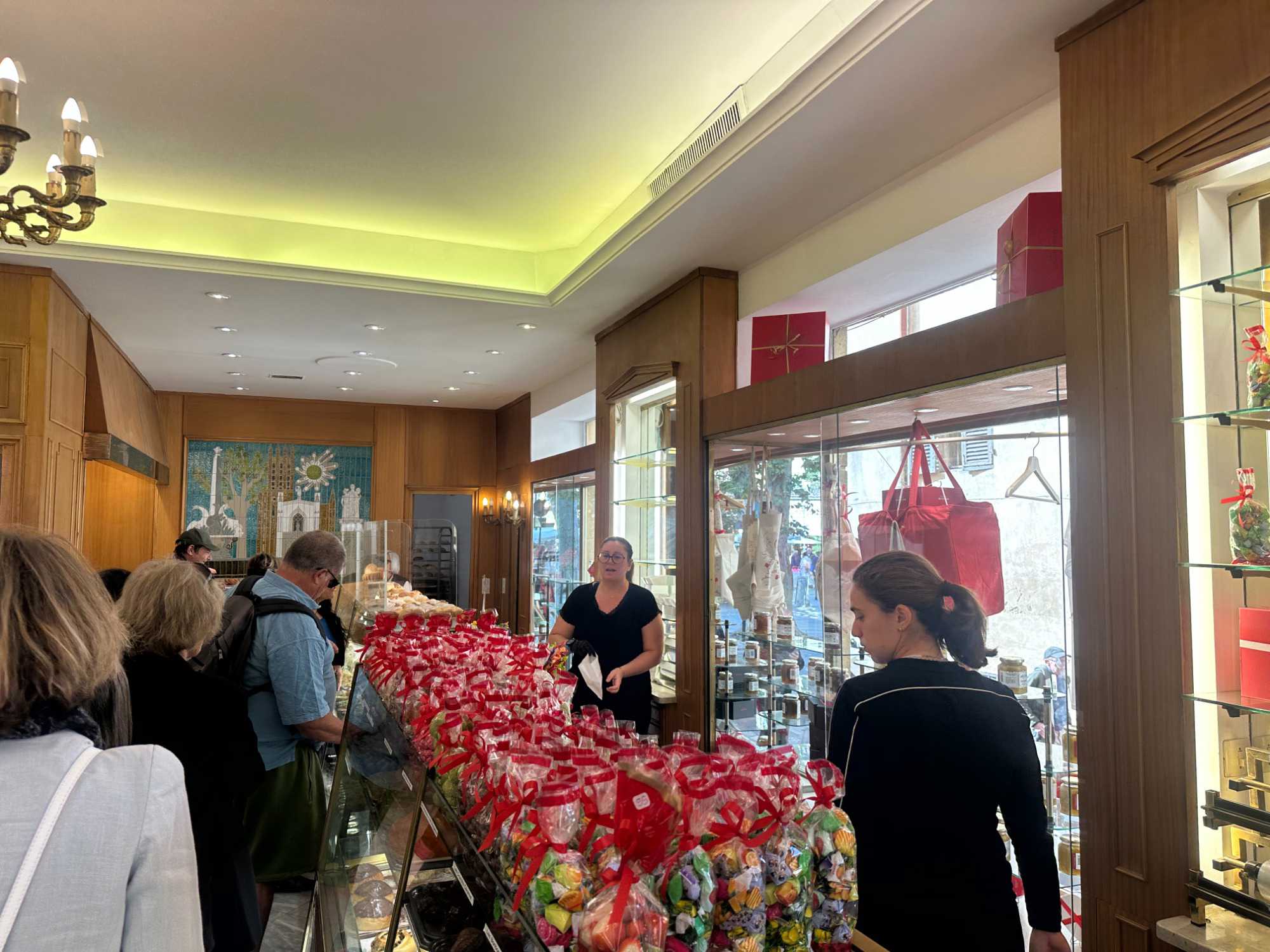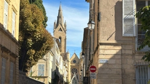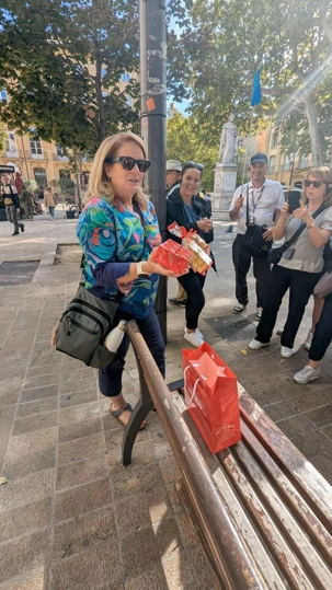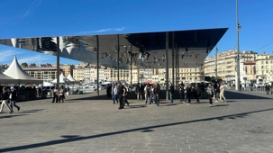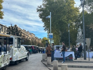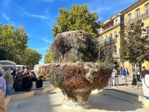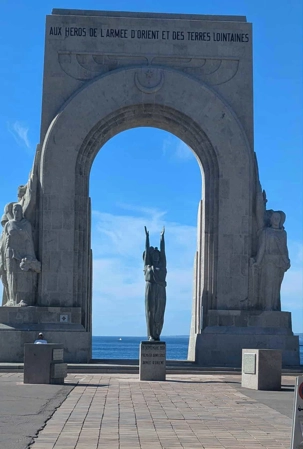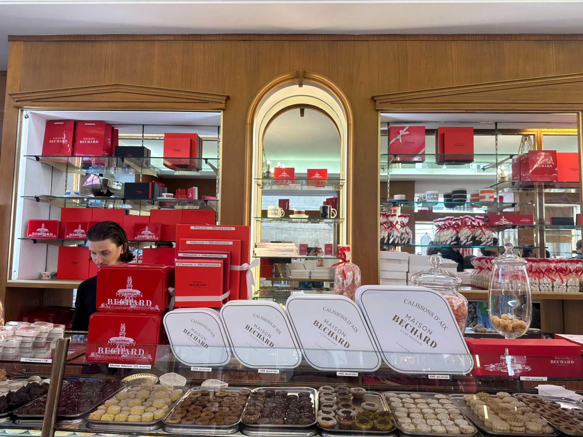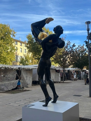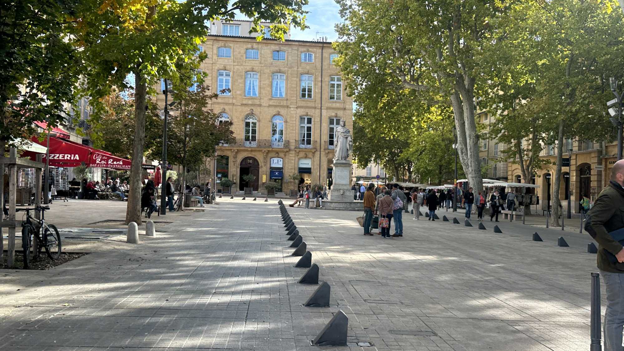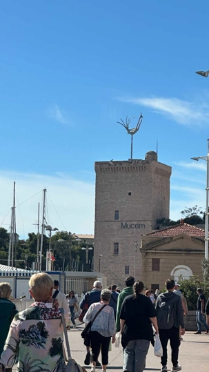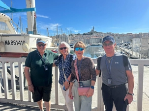 Aix-en-Provence, fut fondée en 122 av. J.-C. sous le nom de Sextiae par la garnison romaine de Sextius Caius Calvinus. Aix devient la capitale du comté de Provence. Très petite et compacte, elle nous présente hôtels et environnement d’influences des XVIIe et XVIIIe siècles. À Aix-en-Provence, c’est le cours Mirabeau bordé de platanes centenaires, sa monumentale fontaine et la pâtisserie et calissonnerie Béchard dont la renommée n’est plus à faire, qui nous a captivé. C’est en petit train touristique que nous sillonnons la ville aux 100 fontaines, à travers les rues étroites et disons-le, un peu raboteuses d’Aix, en observant les principaux monuments de la ville. Ce qui nous marque : presqu’au aucune voiture mais des mobilettes en quantité servent aux déplacements dans le quartier historique. Éric et moi ferons la belle surprise de faire une dégustation de calissons et de petits-fours de chez Béchard ! Wow ! miam, hum… c’est bon! Ça nous donne assez d’énergie pour arpenter les ruelles et l’immense marché en mode autonome. Après une belle heure de flanage agréable, c’est le regroupement au pied de la Statue du bon roi René et départ en direction de “la porte du monde”, Marseille.