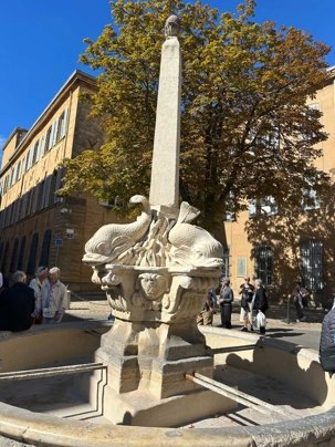 Astride notre guide locale, une hollandaise éprise d’amour pour un provençal est heureuse d’être avec des canadiens, d’autant que sa fille migrera à Toronto le mois prochain. Avec Jean-Pierre, notre chauffeur attentionné, nous partons en direction d’Aix-en-Provence, ville toute dédiée à Cézanne, culturelle à souhait, estudantine (40000 étudiants dans les deux universités qu’elle compte).