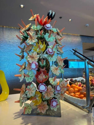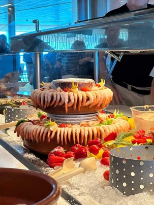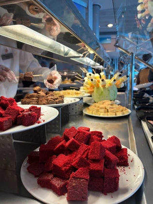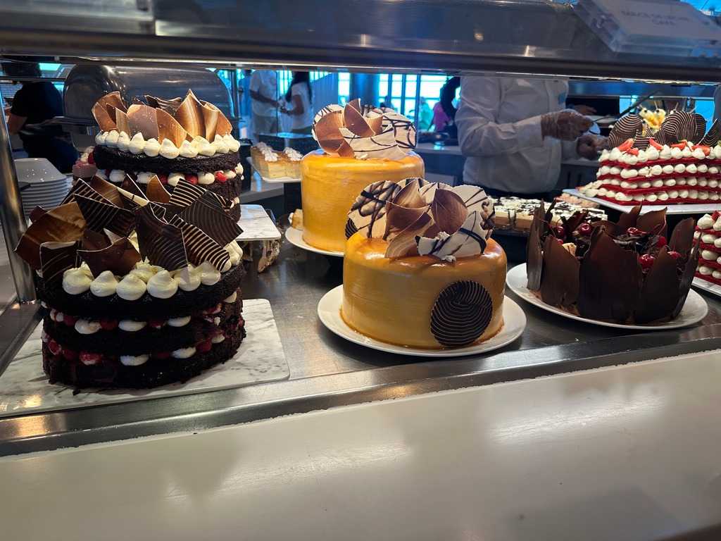 Mais voyez en images ce à quoi ressemblaient les gâteaux du buffet Extravanganza, côté du OceanView Café du 14e pont. Hum... comment résister à ces tentations ? Pas facile, pas facile.