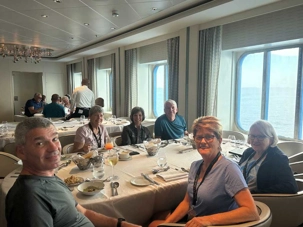 Eric a préparé une rencontre d’information pour que le débarquement se déroule facilement et sans souci pour chacun. On rigole beaucoup et on est sérieux juste un peu ! C’est qu’Il y en a des taquins dans ce groupe ! Une quinzaine d’entre-nous prolongeons la rencontre autour d’une table de la salle-à-manger, histoire de passer encore un peu de temps ensemble car on sent bien que la fin approche.