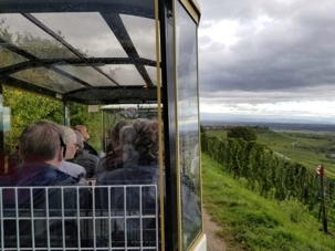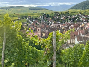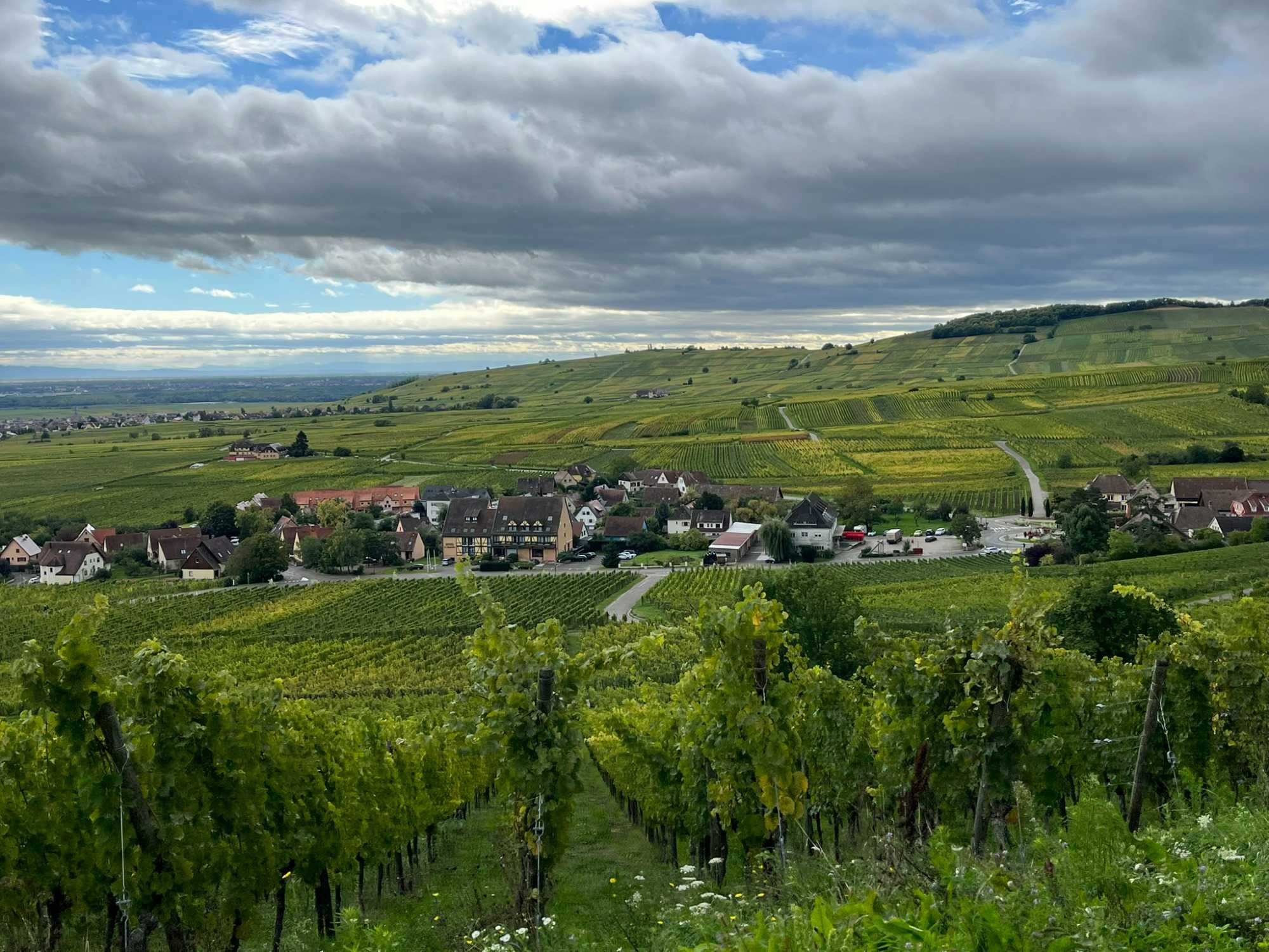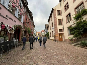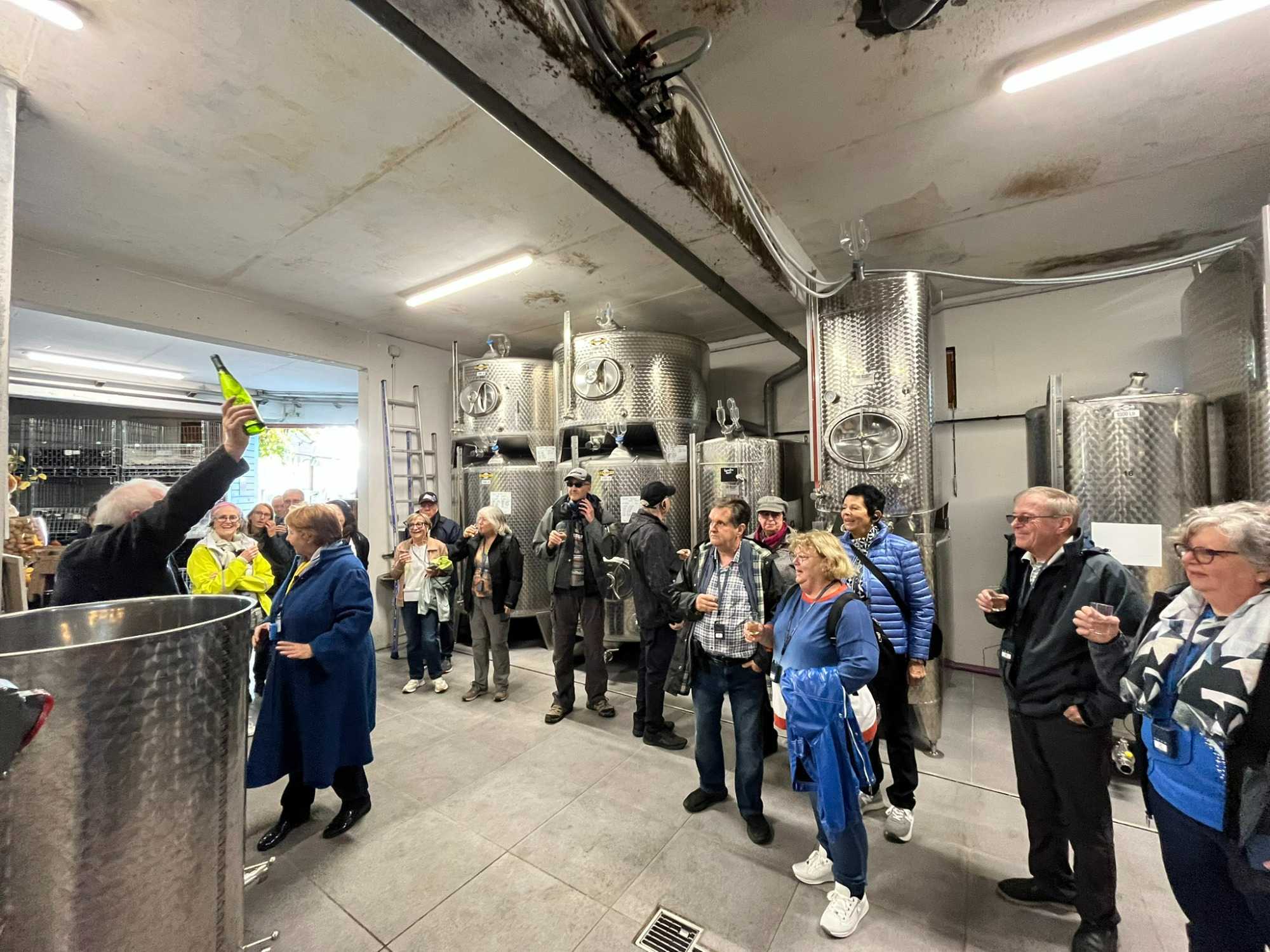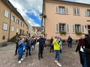 Dès notre arrivée, nous avons découvert un véritable musée à ciel ouvert, protégé par ses anciennes fortifications que seules les vignes semblent assiéger désormais. Le secteur piétonnier de la vieille ville ajoute à son charme et nous permet de circuler paisiblement sous la bonne conduite de Claude. Les maisons accolées, construites entre le 13e et le 18e siècle, forment un ensemble architectural remarquable. La tour du Dolder, haute de 25 mètres, servait autrefois de porte défensive, de clocher, de tour de guet et d’alarme face à la menace. Non loin, la tour des voleurs, anciennement une prison, abrite encore une chambre de tortures. Comme toujours, Claude partage avec enthousiasme ses connaissances sur l’histoire de la région. Et bien sûr, impossible de parcourir la route des vins sans une dégustation.
