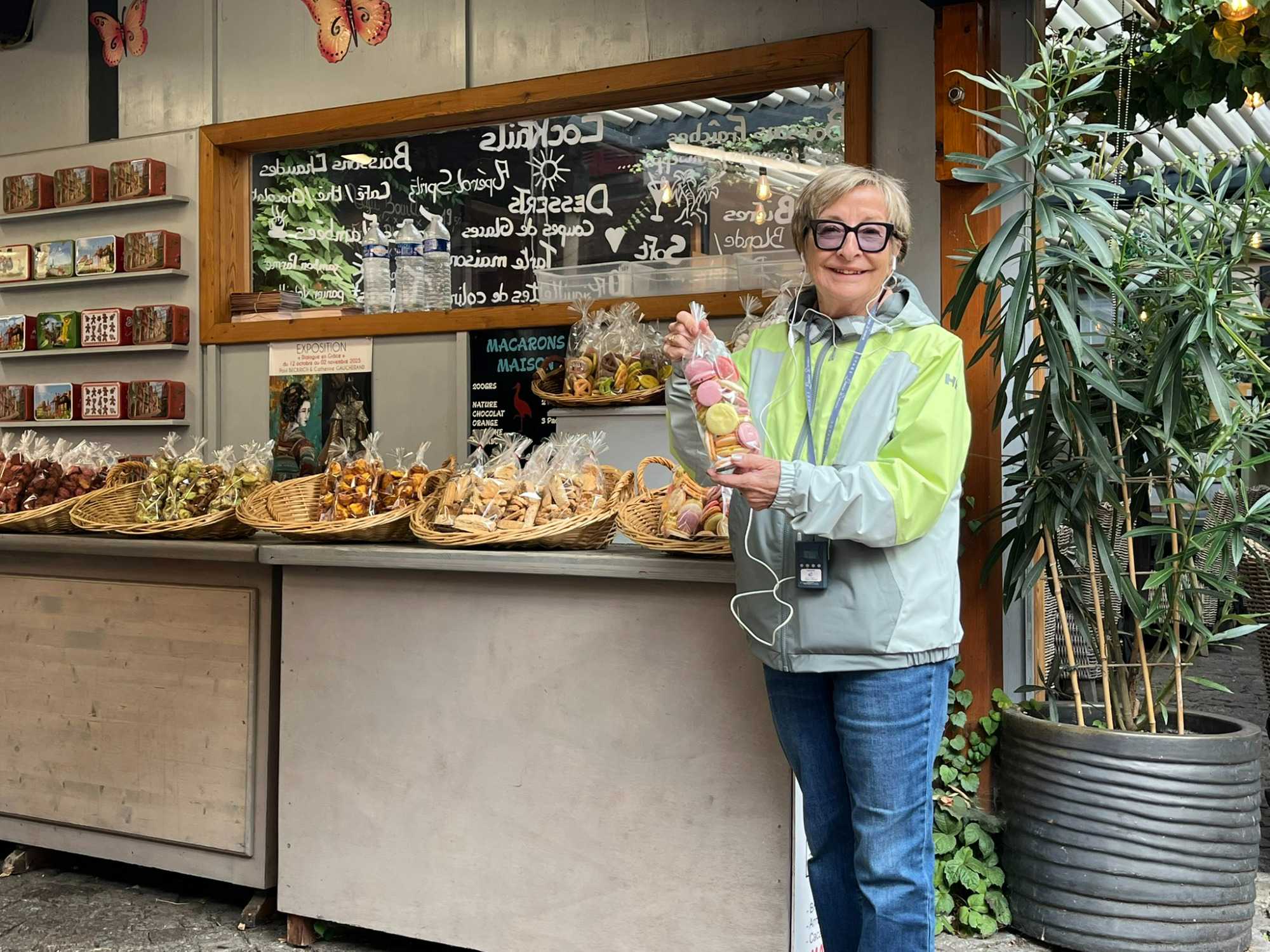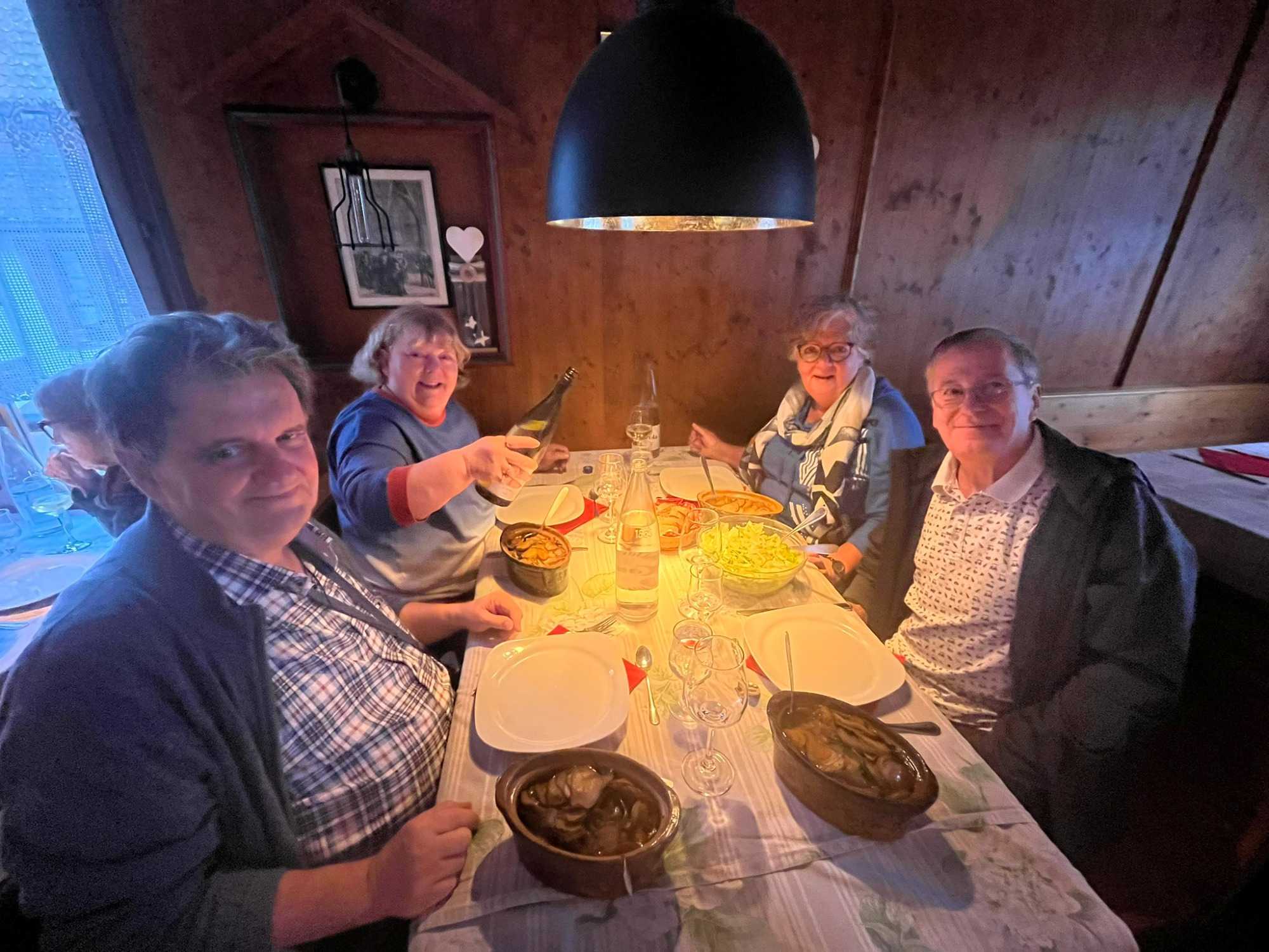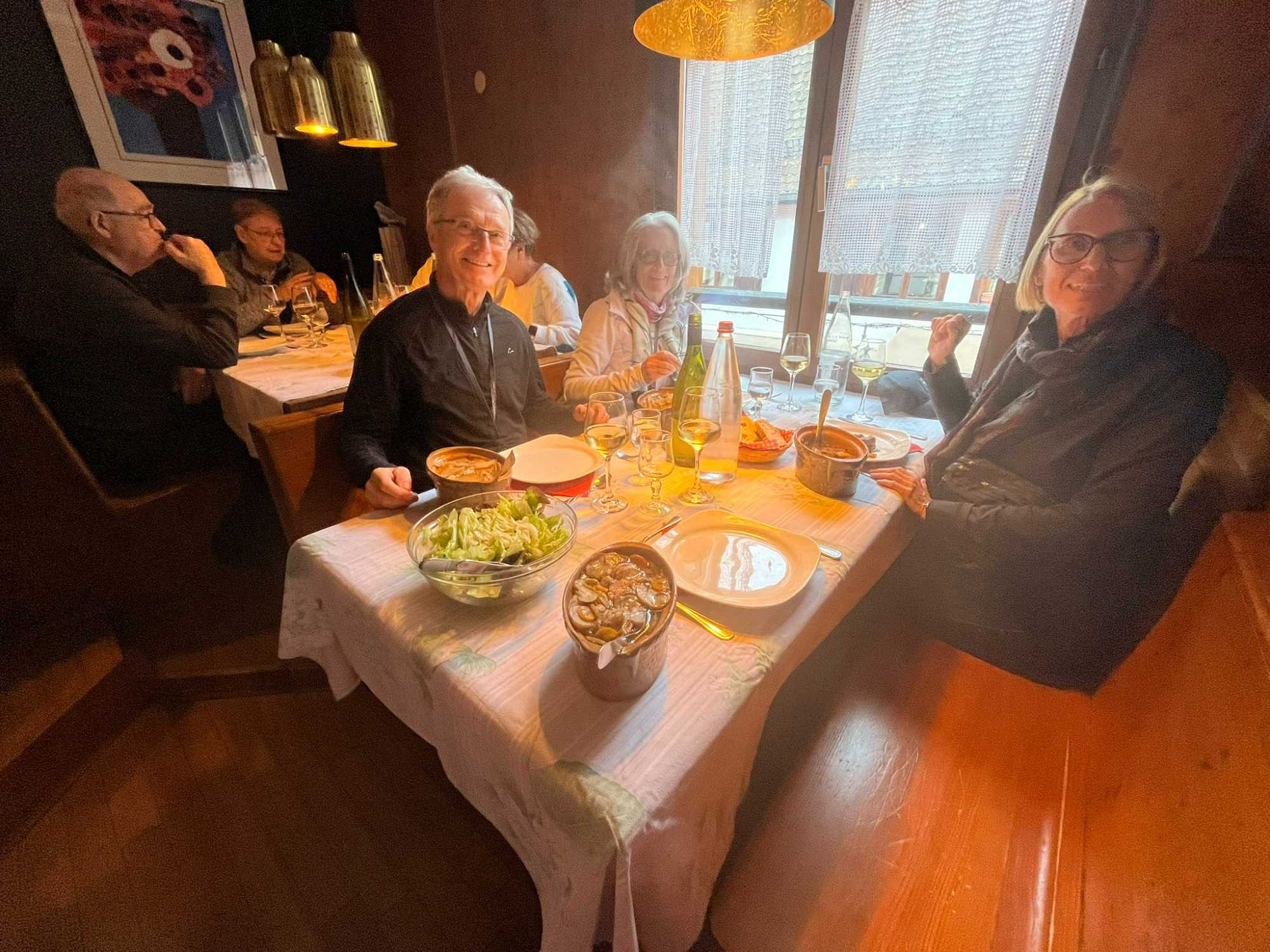 Dès notre arrivée, nous avons découvert un véritable musée à ciel ouvert, protégé par ses anciennes fortifications que seules les vignes semblent assiéger désormais. Le secteur piétonnier de la vieille ville ajoute à son charme et nous permet de circuler paisiblement sous la bonne conduite de Claude. Les maisons accolées, construites entre le 13e et le 18e siècle, forment un ensemble architectural remarquable. La tour du Dolder, haute de 25 mètres, servait autrefois de porte défensive, de clocher, de tour de guet et d’alarme face à la menace. Non loin, la tour des voleurs, anciennement une prison, abrite encore une chambre de tortures. Comme toujours, Claude partage avec enthousiasme ses connaissances sur l’histoire de la région. Et bien sûr, impossible de parcourir la route des vins sans une dégustation.