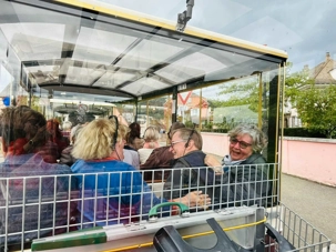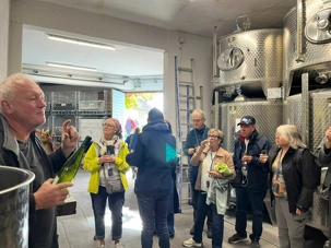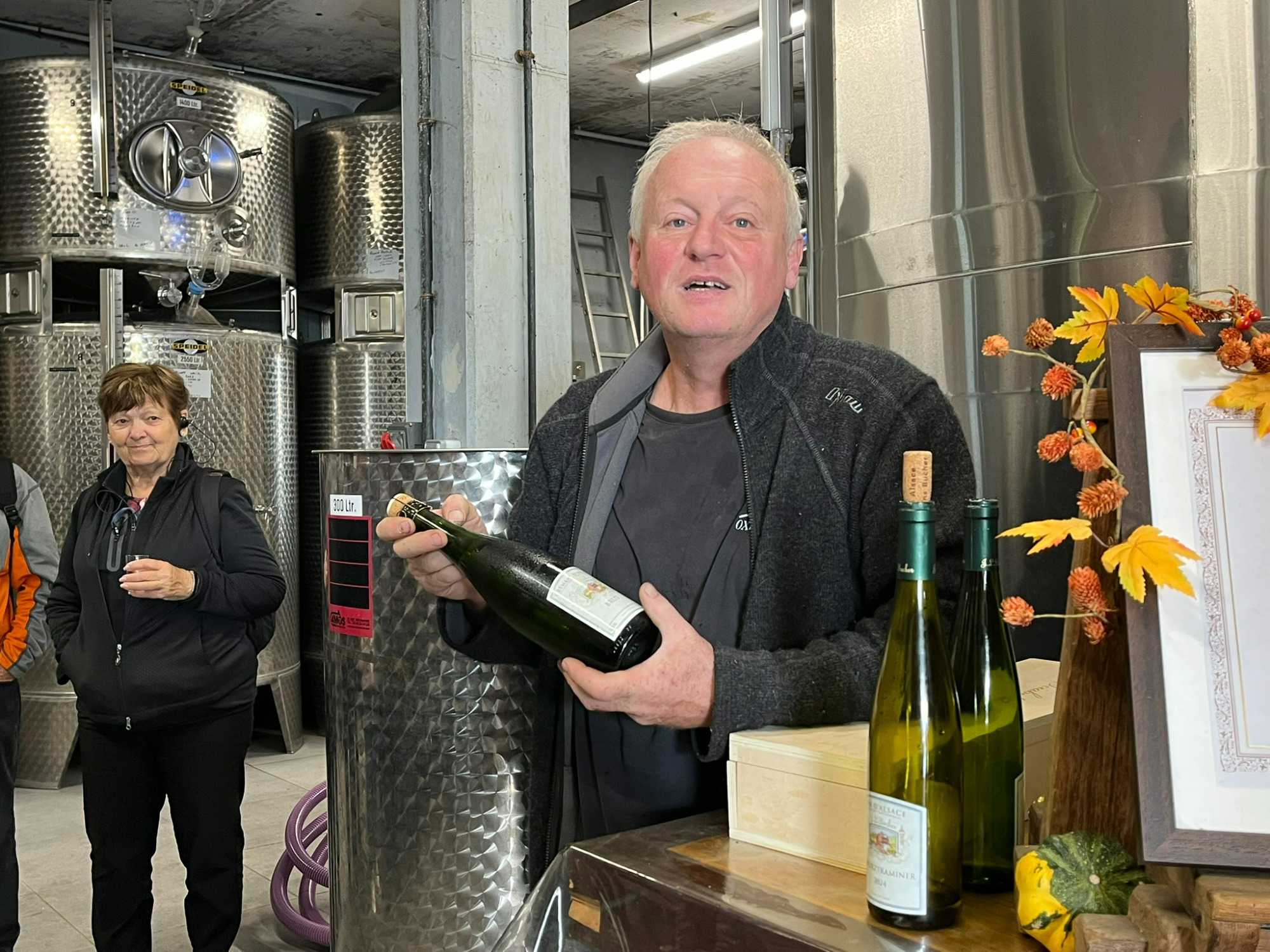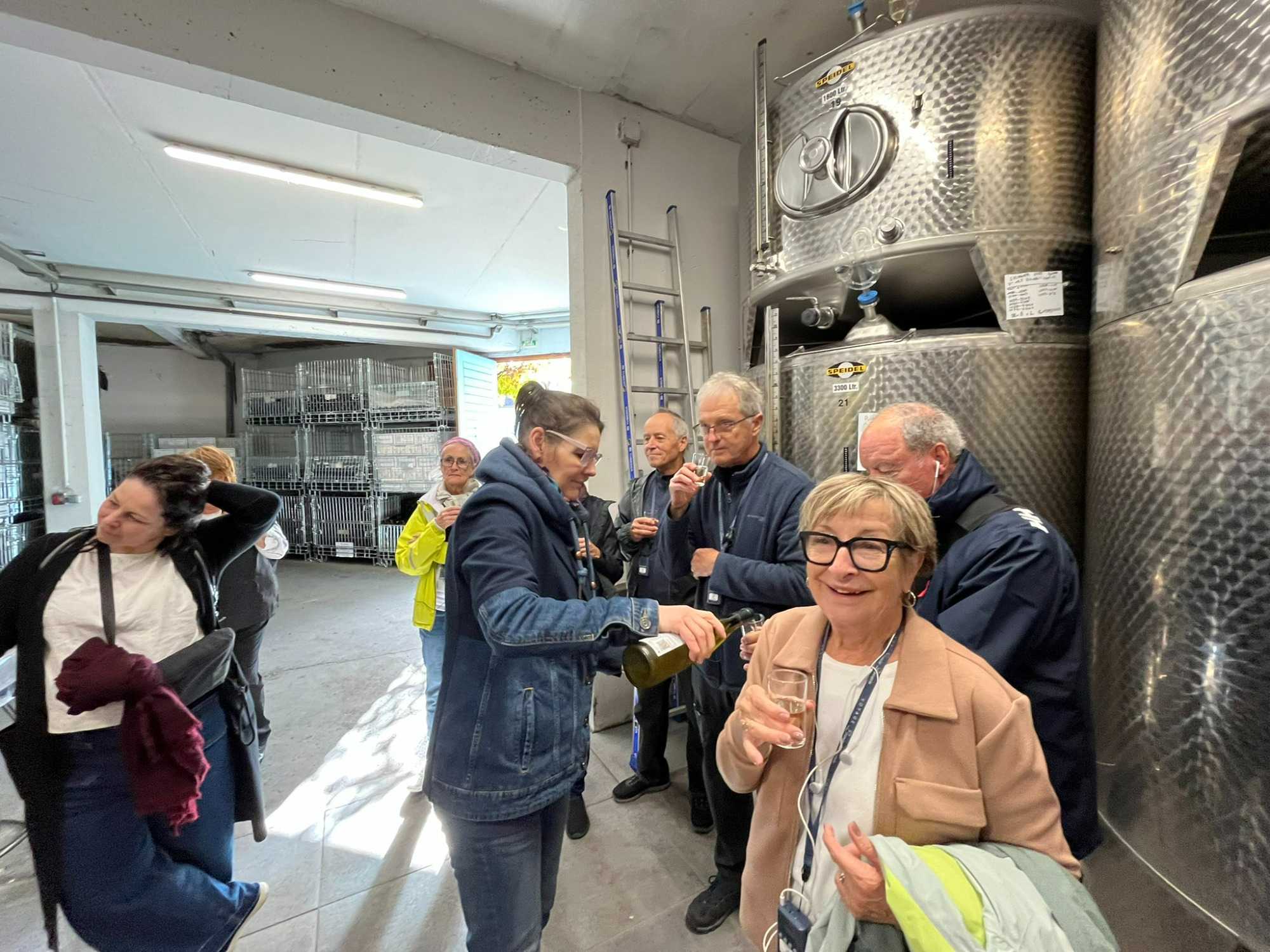 À la sortie, une autre surprise attendait nos voyageurs, car chacun est reparti avec une bouteille de crémant blanc, cadeau de Louise Drouin, que nous boirons à ta santé ma belle Louise ! L’autocar est ainsi surnommé « le cellier » par l’un de nos blagueurs du groupe.