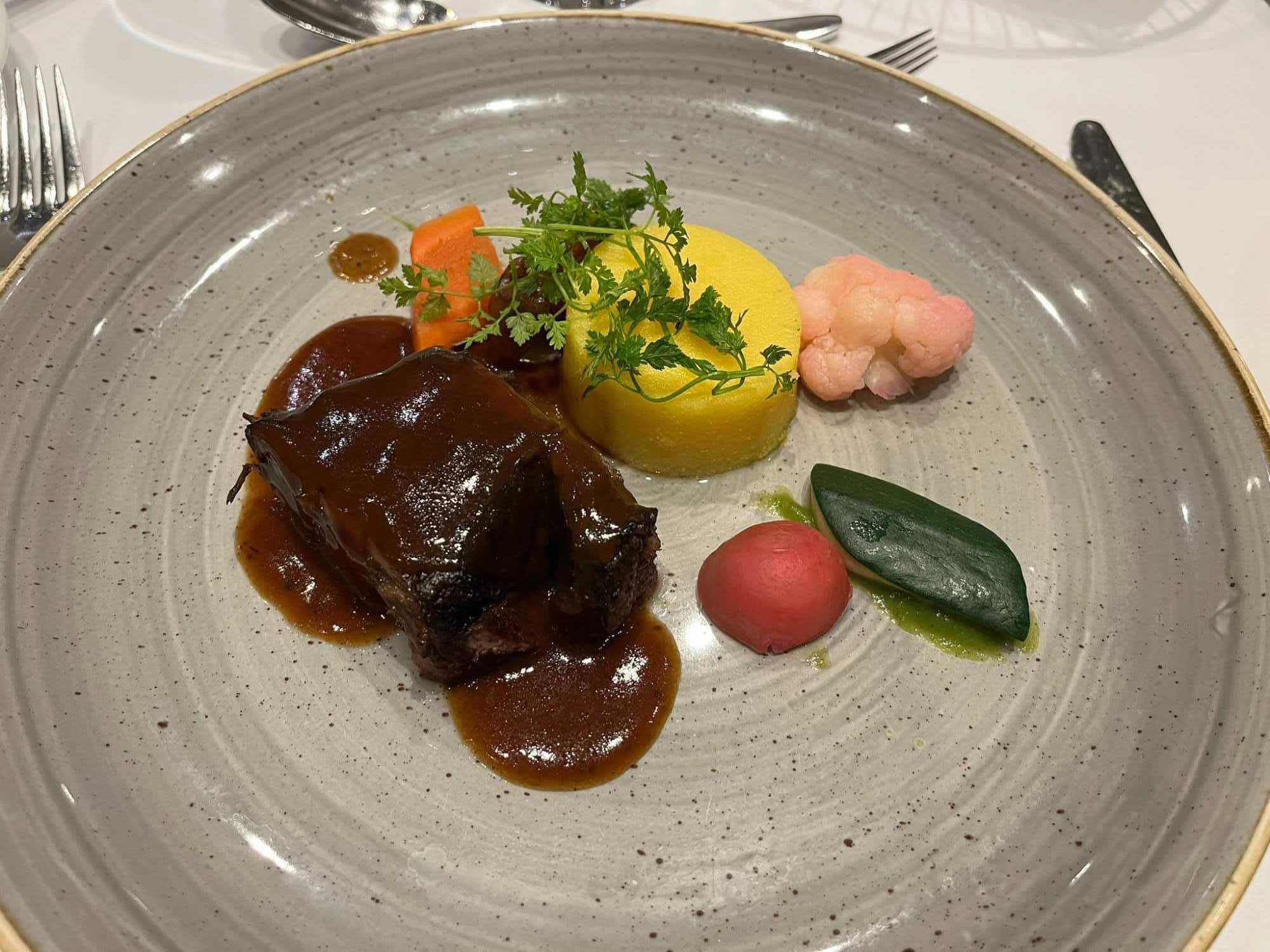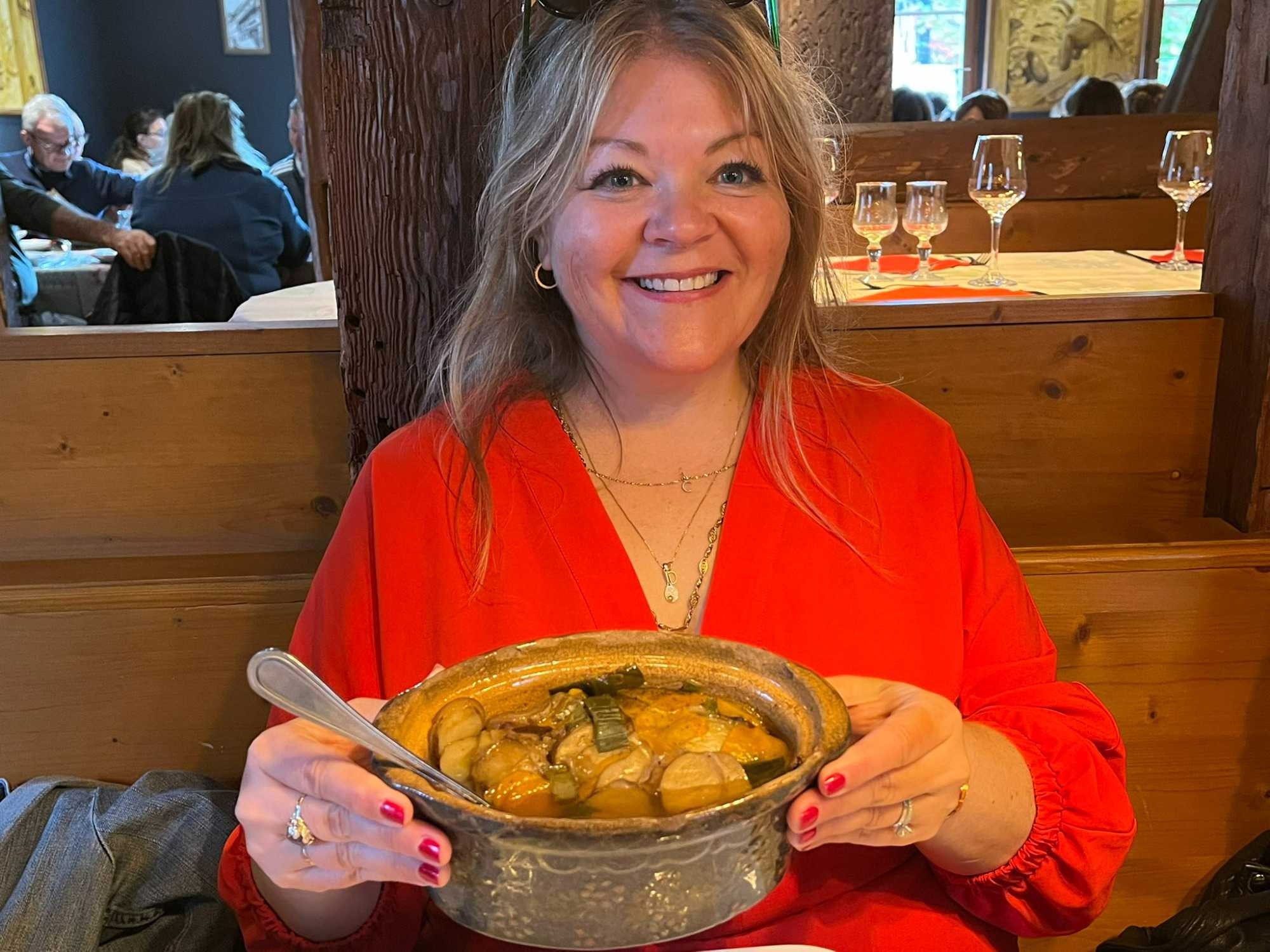 À l’heure du lunch, nous nous installons à la brasserie Le Relais de Riquewihr pour savourer une spécialité alsacienne : le Baeckeoffe. Ce plat mijoté à base de bœuf, d’agneau, de porc et de légumes est lentement mijoté dans du vin blanc. « Baeck » signifie boulanger et « offa », four — un clin d’œil au temps où ce mets était cuit chez le boulanger du village alors que les femmes s’afféraient à faire la lessive. Un repas réconfortant, savoureux, mais combien généreux. Ces Alsaciens ont décidément bon appétit !