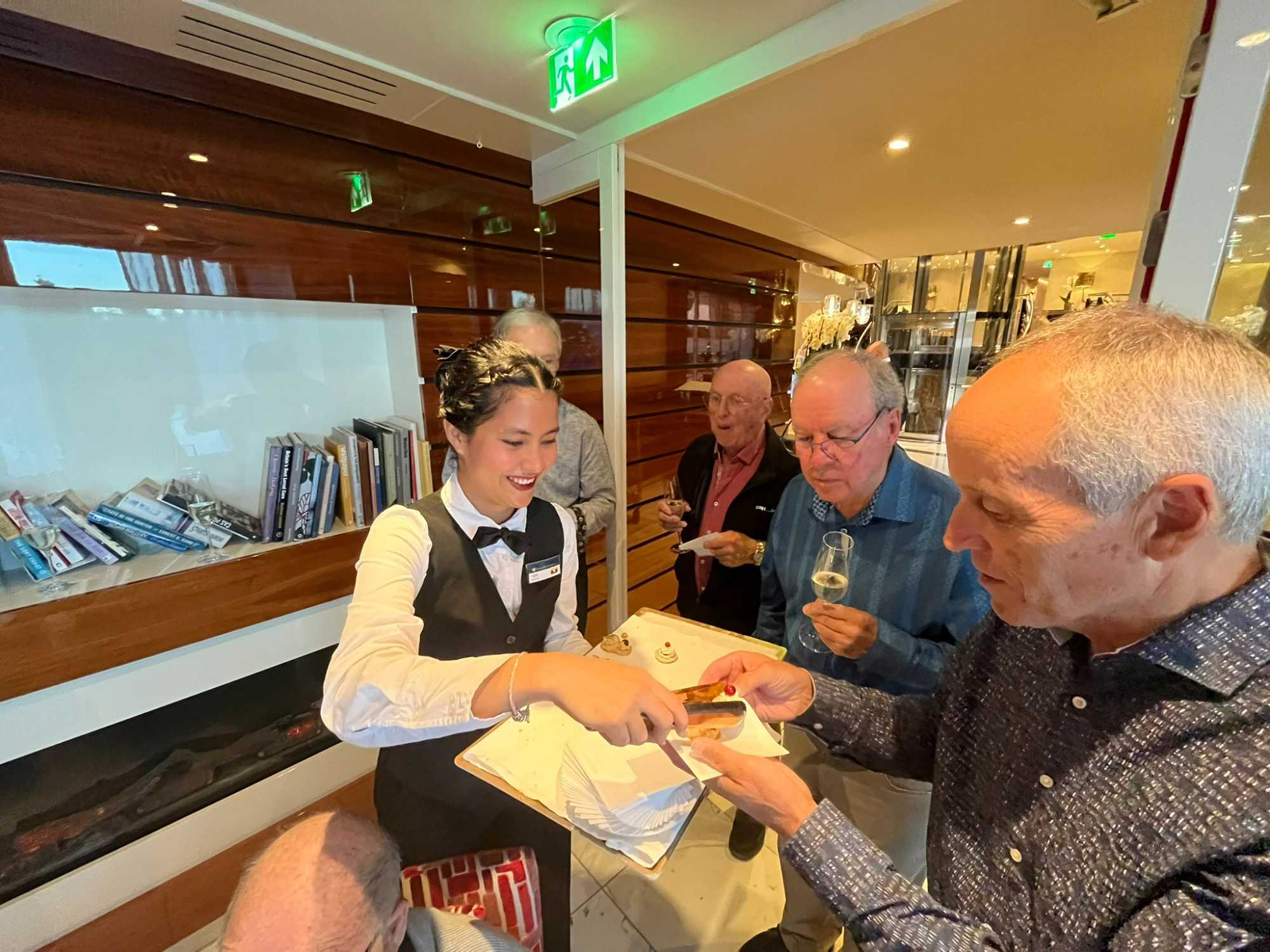 À l’arrivée, nous remercions chaleureusement Claude et Jérémy pour ces derniers jours riches en découvertes, pour leur convivialité, leur compétence et leur bonne humeur communicative. Puis, dans une section réservée du port de Bâle, nous procédons à l’embarquement peu après 15 h. L’accueil, rehaussé d’un cocktail de bienvenue, est aussi attentionné que royal. Il faudra s’y habituer, car avec seulement 156 passagers et 51 membres d’équipage, le service à bord de l’AmaViola, notre navire cinq étoiles, promet d’être à la hauteur.