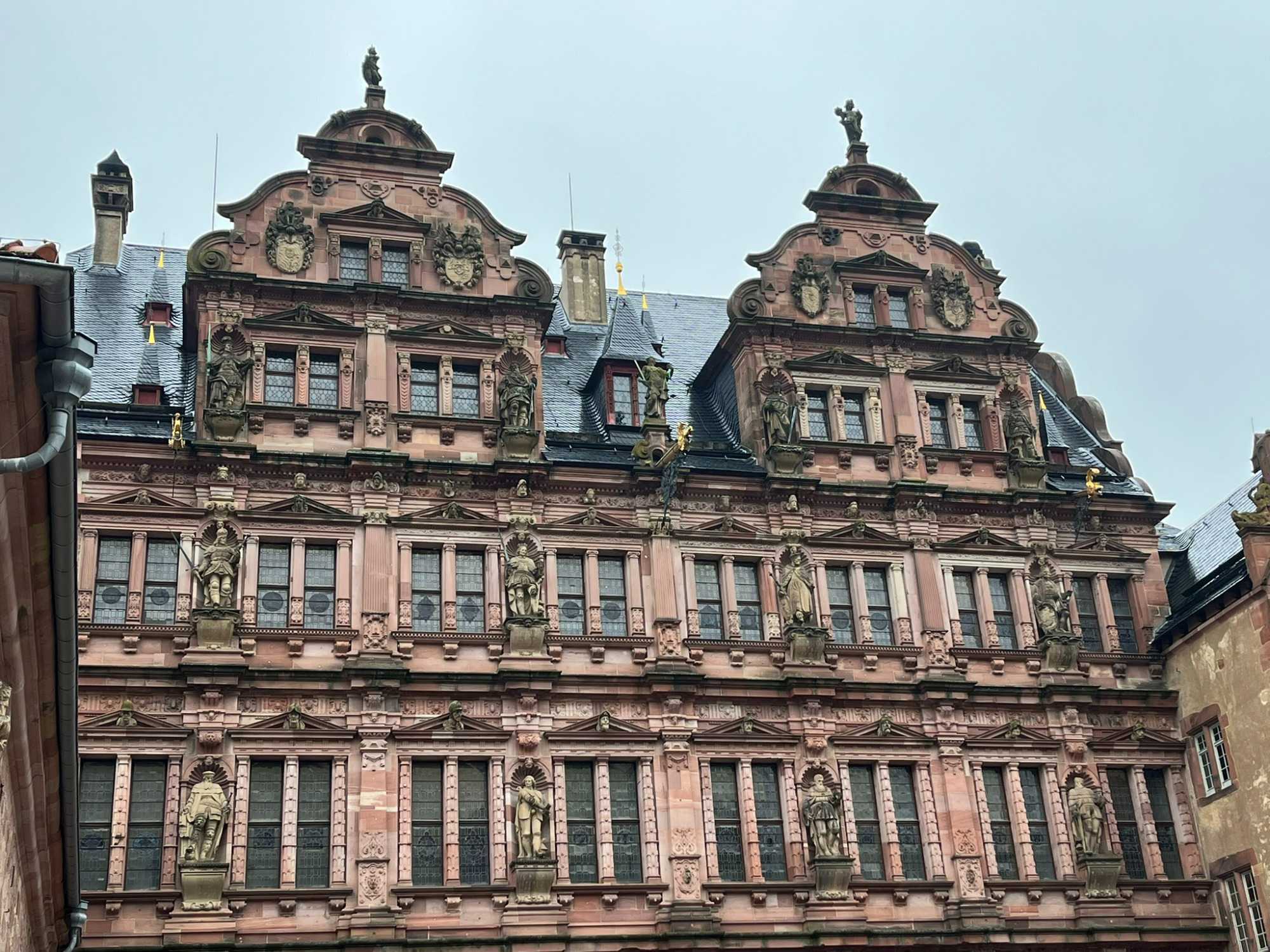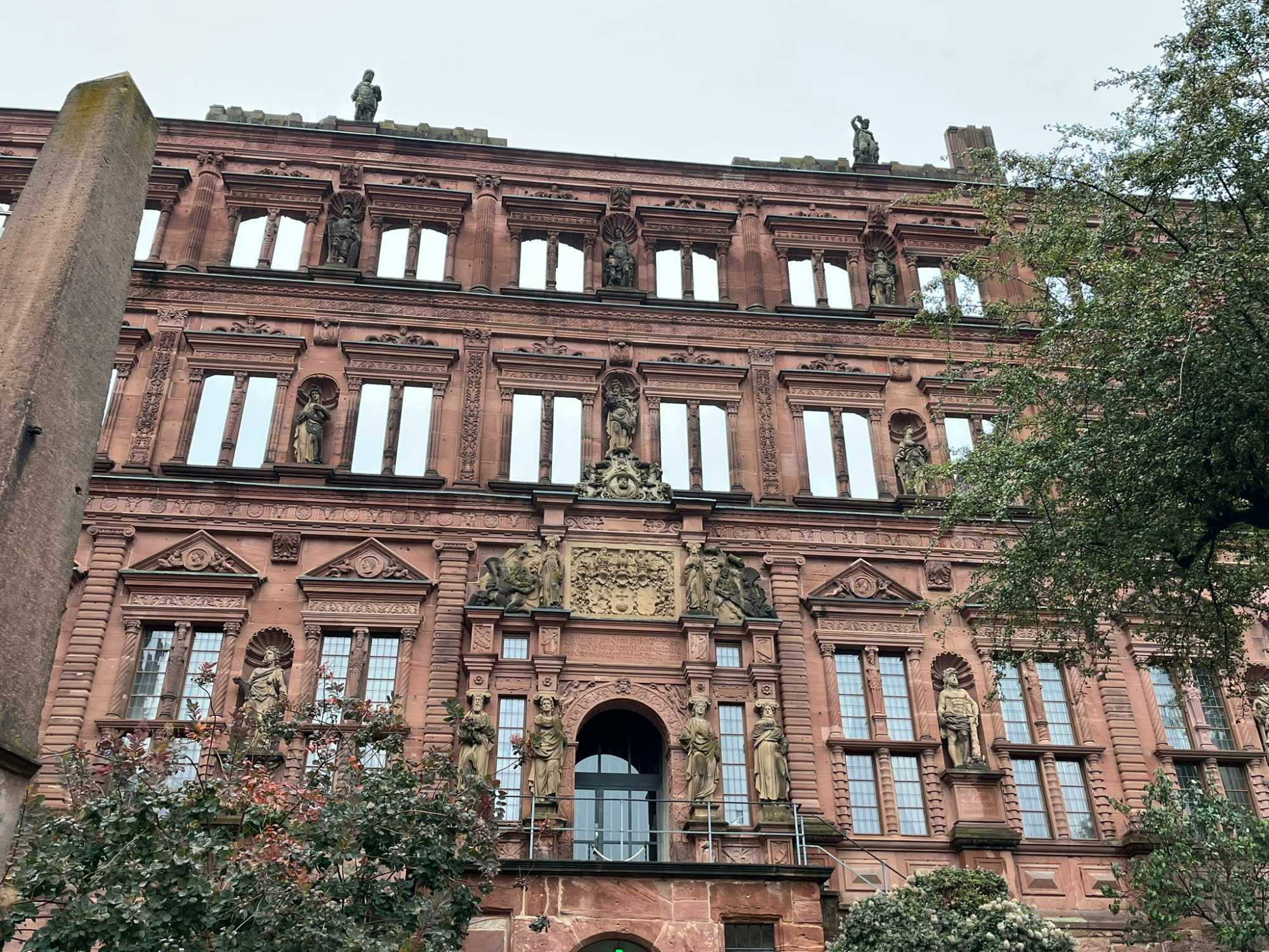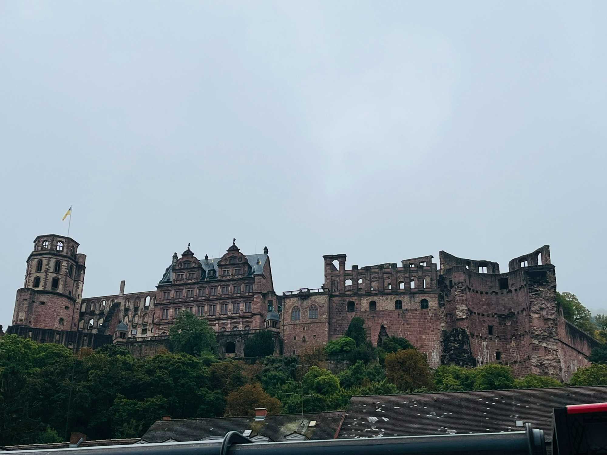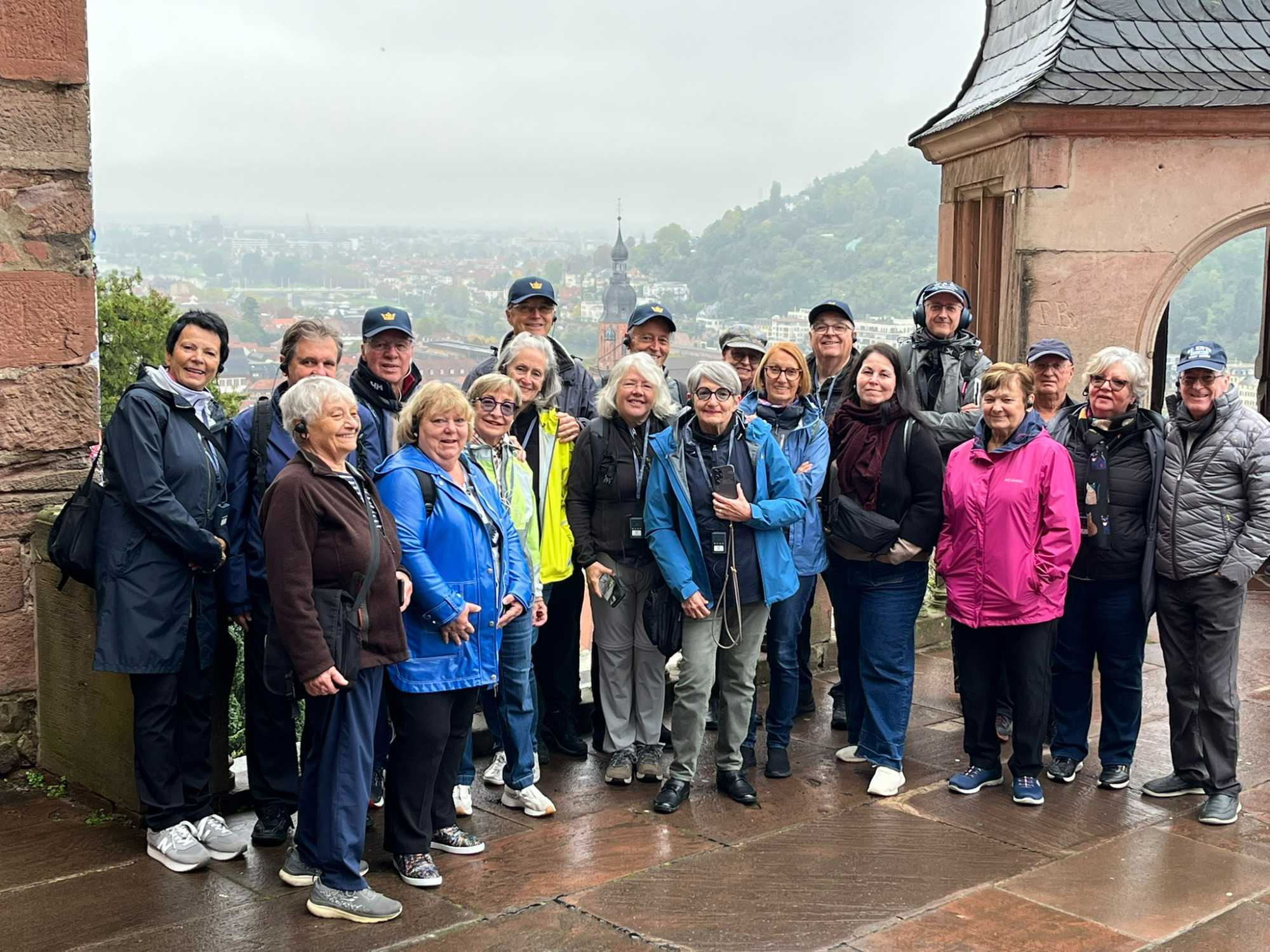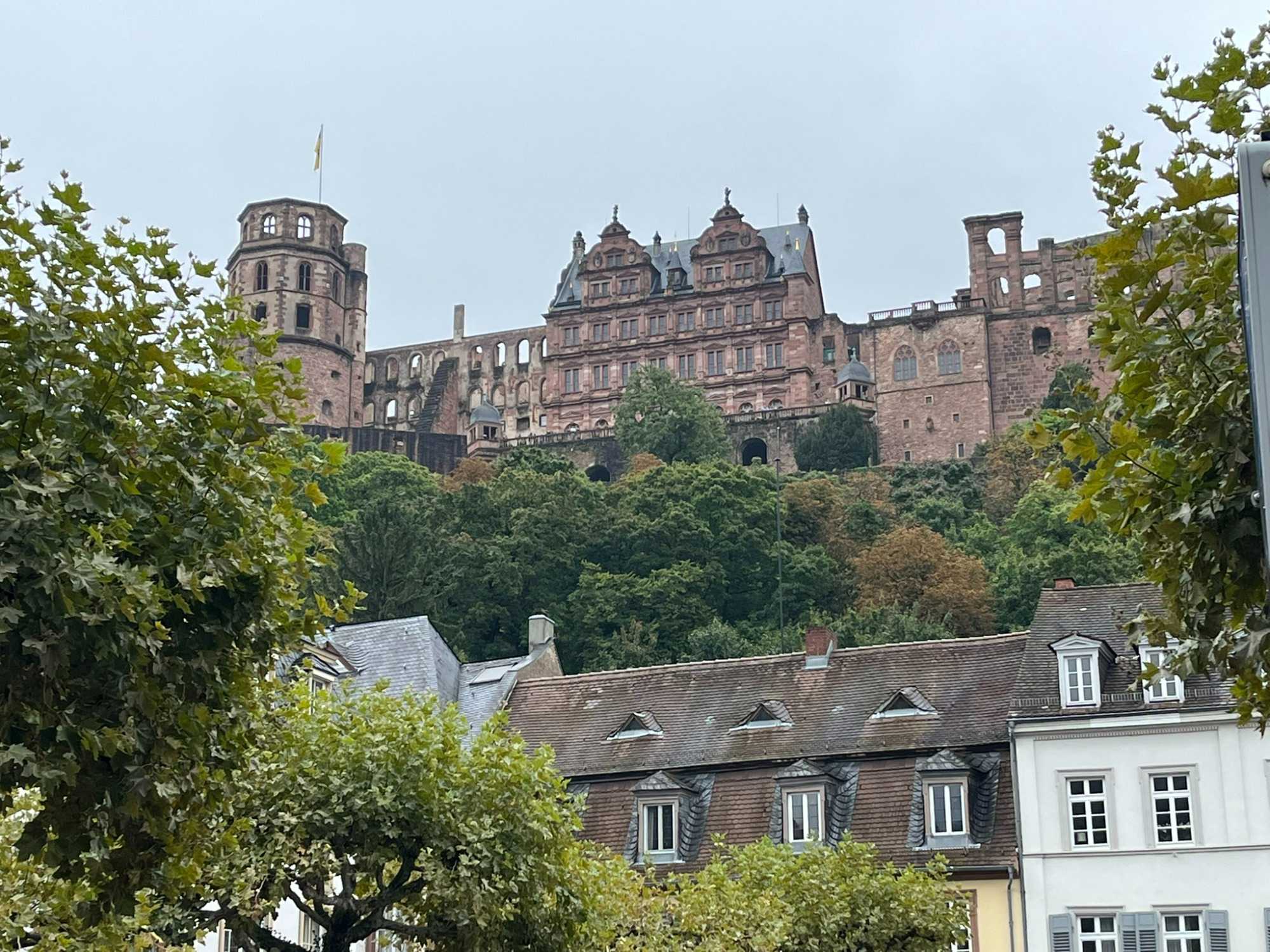 Notre première halte se fait au majestueux château de Heidelberg, avec Sylvia notre guide francophone attitrée pour une visite guidée. Perché au-dessus de la vallée du Neckar, le château séduit les visiteurs venus des quatre coins du monde. Il fut la résidence des comtes palatins et des électeurs de la maison de Wittelsbach, qui gouvernèrent le Palatinat rhénan pendant plus de 400 ans. À son apogée, le palais rivalisait avec les splendeurs des cours de Vienne et de Prague. On y comptait 24 chambres, un théâtre de 300 places où l’on jouait du Shakespeare, et des jardins considérés comme les plus beaux d’Europe au 17e siècle – à tel point qu’on les surnommait la huitième merveille du monde.
