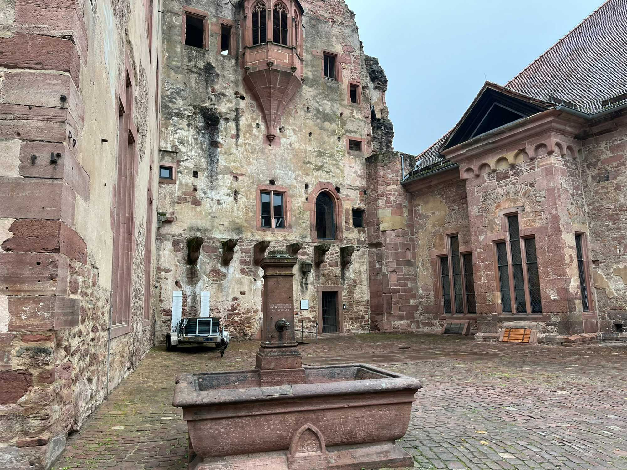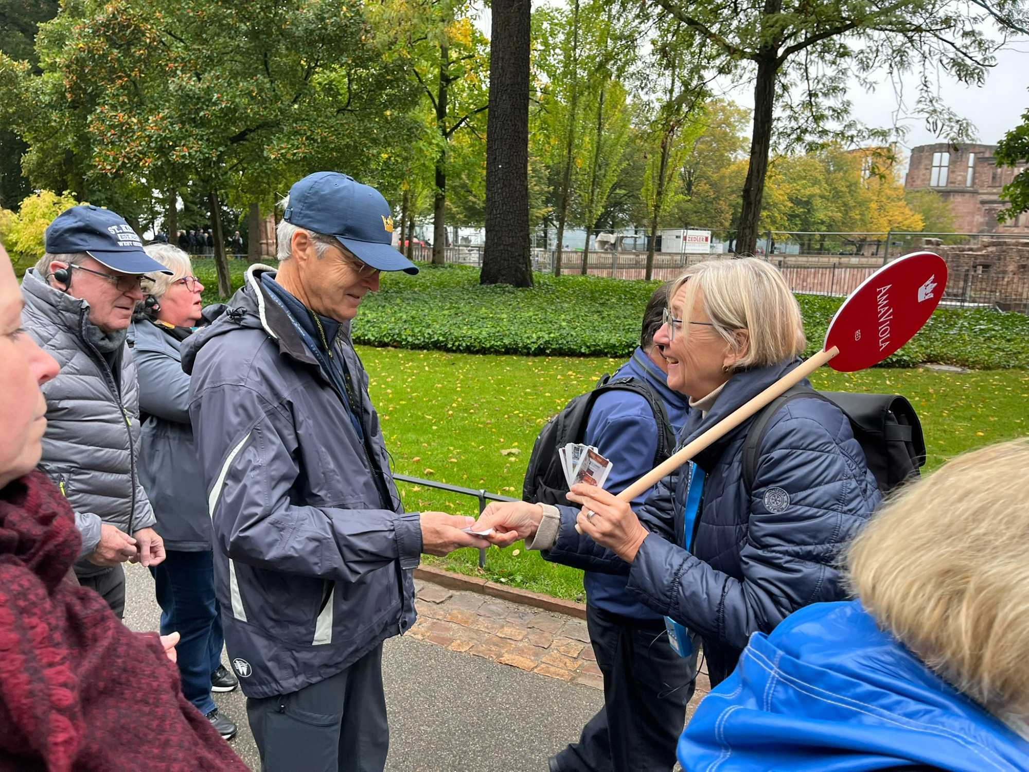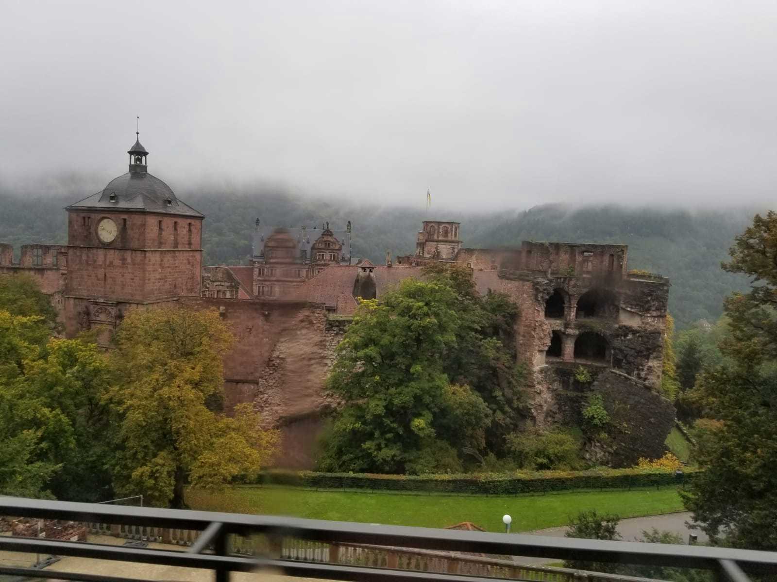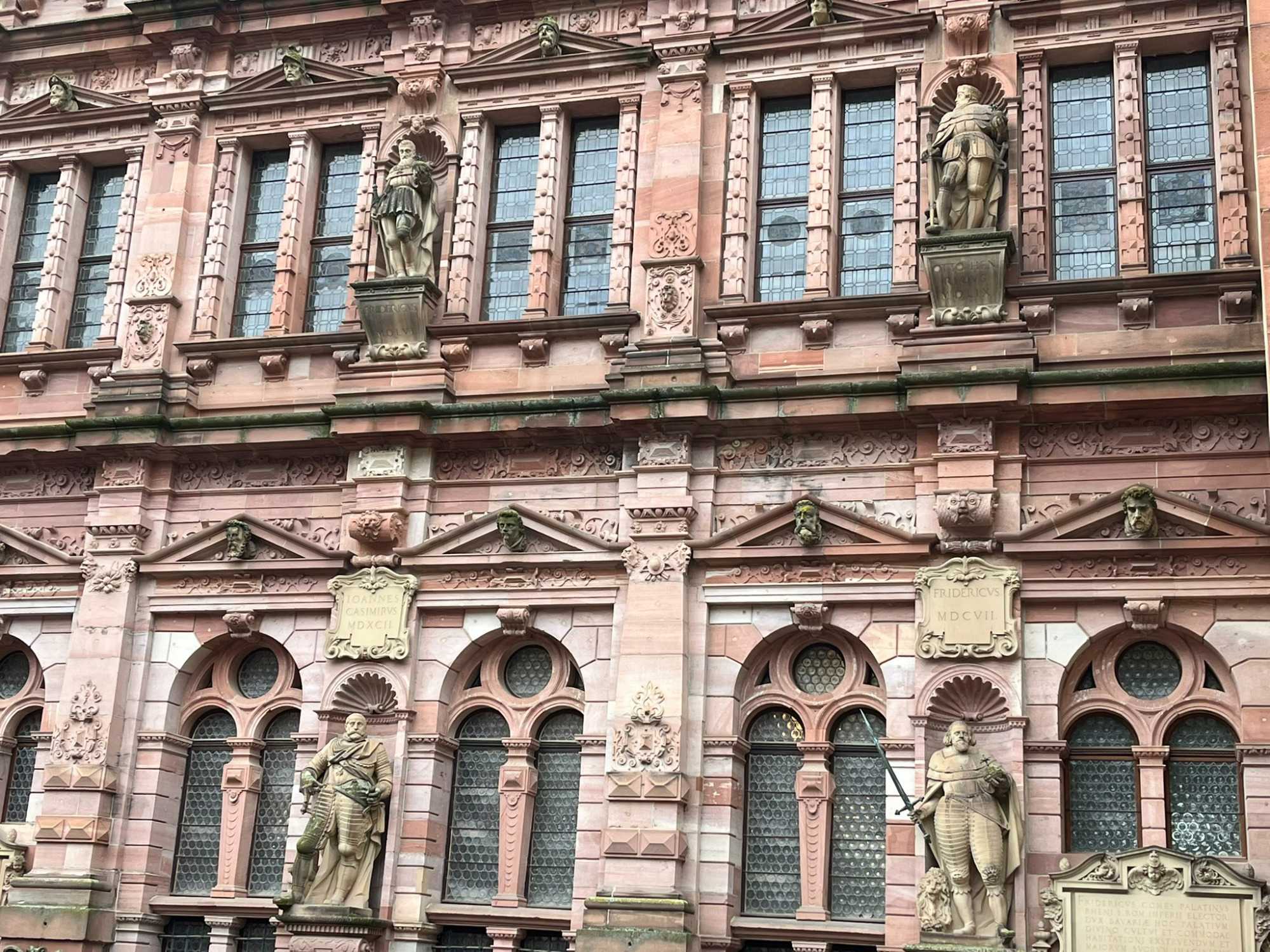 Notre première halte se fait au majestueux château de Heidelberg, avec Sylvia notre guide francophone attitrée pour une visite guidée. Perché au-dessus de la vallée du Neckar, le château séduit les visiteurs venus des quatre coins du monde. Il fut la résidence des comtes palatins et des électeurs de la maison de Wittelsbach, qui gouvernèrent le Palatinat rhénan pendant plus de 400 ans. À son apogée, le palais rivalisait avec les splendeurs des cours de Vienne et de Prague. On y comptait 24 chambres, un théâtre de 300 places où l’on jouait du Shakespeare, et des jardins considérés comme les plus beaux d’Europe au 17e siècle – à tel point qu’on les surnommait la huitième merveille du monde.