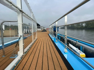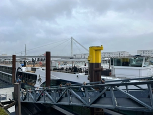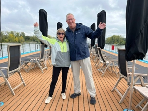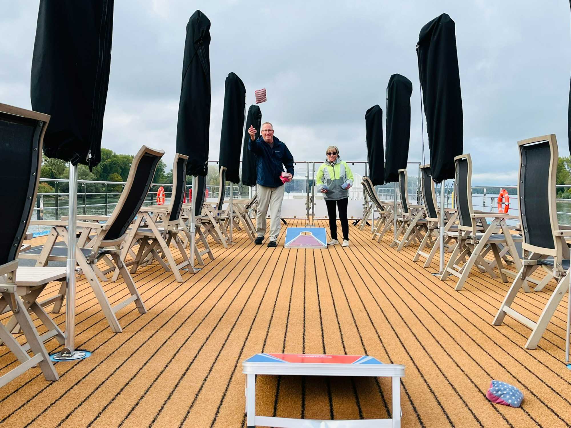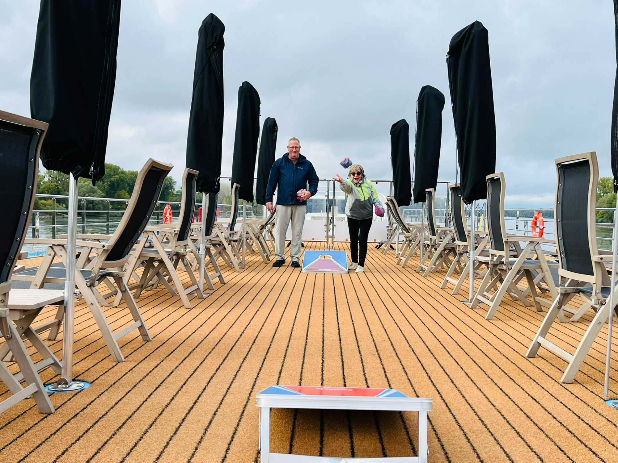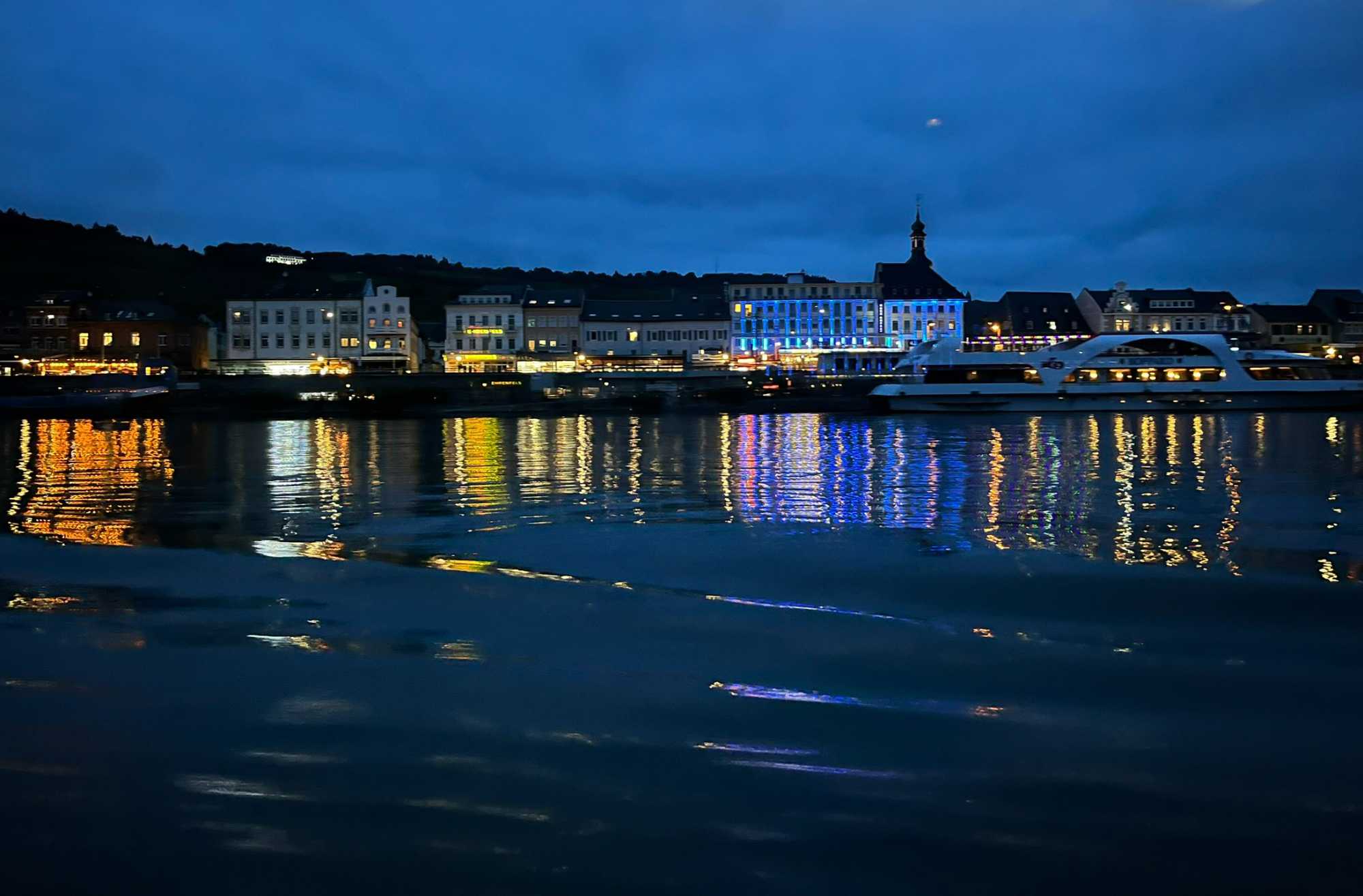 À l’heure du dîner, nous réembarquons à bord du navire, qui met le cap sur Rüdesheim, où nous passerons la nuit. La navigation en après-midi permet d’admirer le décor à la lumière du jour ce qui est toujours fort apprécié de tous en plus d’être les témoins d’un tournoi de poche opposant Grant du Texas à notre très dynamique Ginette lors duquel cette dernière l’a emporté 10 à 6 contre ce grand gaillard. Bravo Ginette !