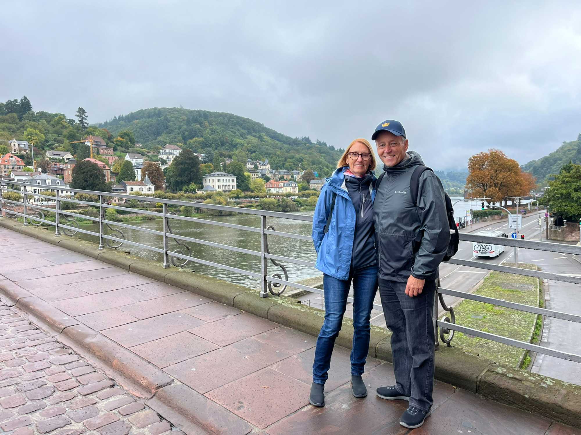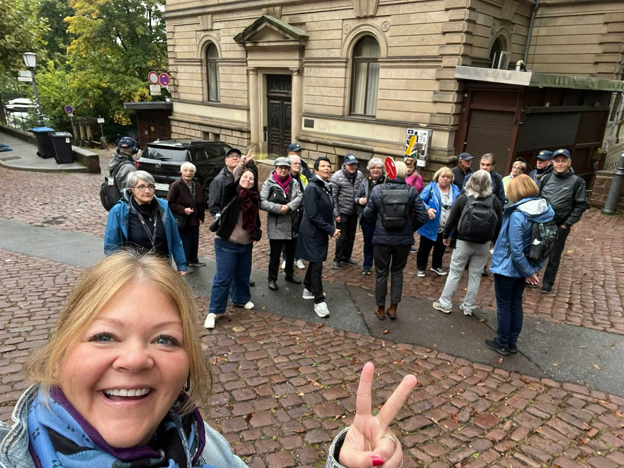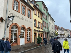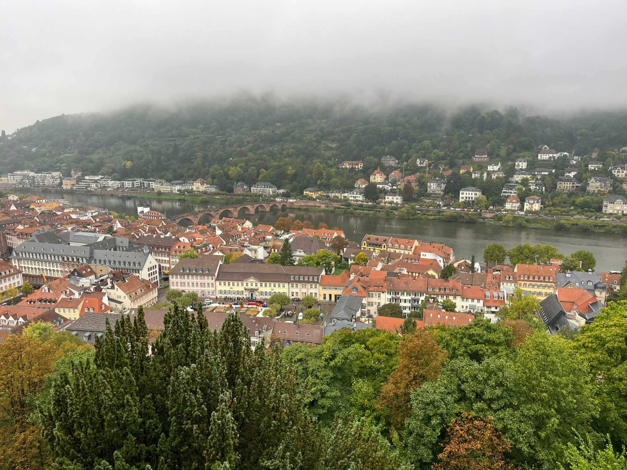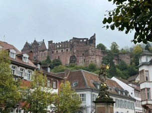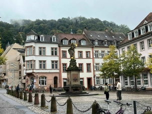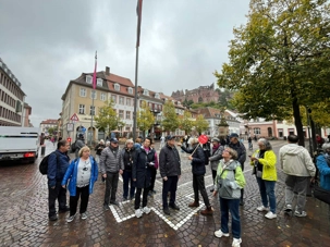 Après cette plongée dans l’histoire, nous poursuivons notre route avec Sylvia pour l’exploration de la vieille ville. Nichée entre les collines boisées et le fleuve, elle s'étend au pied de 17 km² de forêt, sillonnée par 600 km de sentiers et offre un équilibre parfait entre nature et histoire. Épargnée par les bombardements de la Seconde Guerre mondiale, Heidelberg a conservé son authenticité. La ville compte aujourd’hui 160 000 habitants, dont 40 000 étudiants provenant de plus de 160 pays. Son université, fondée en 1386, est la plus ancienne d’Allemagne.