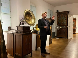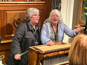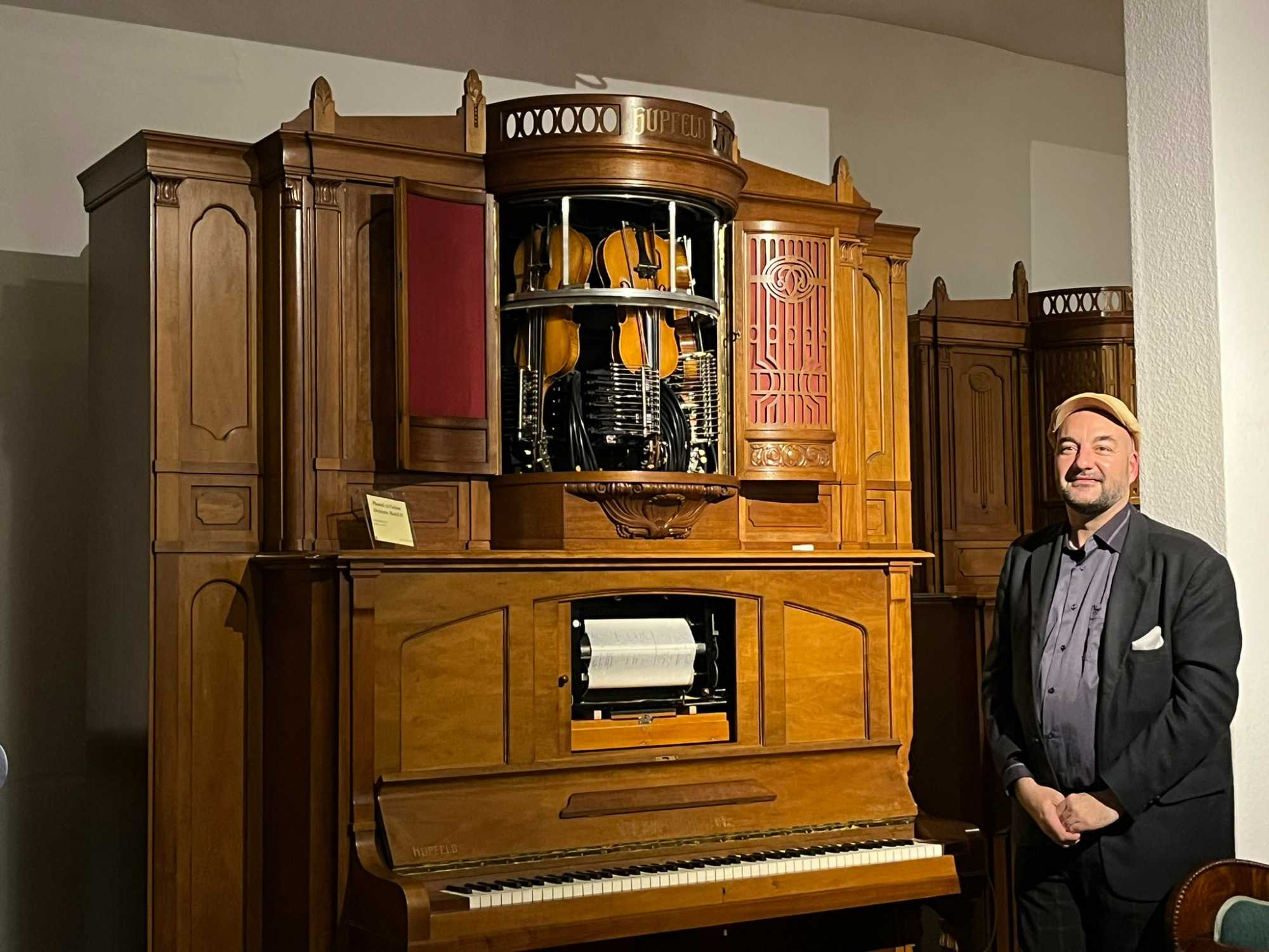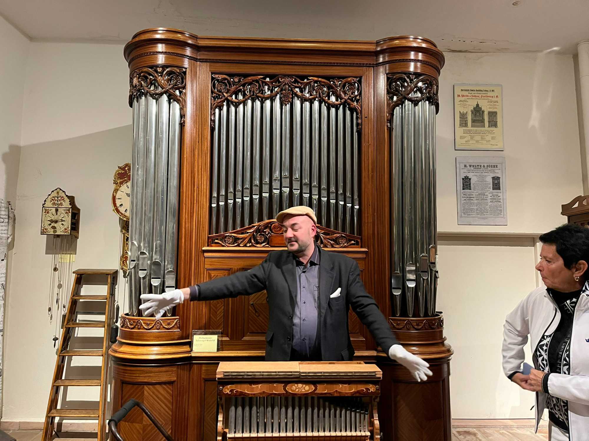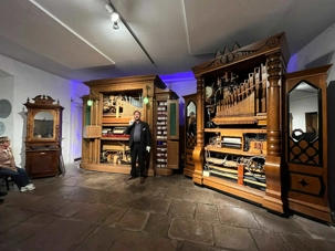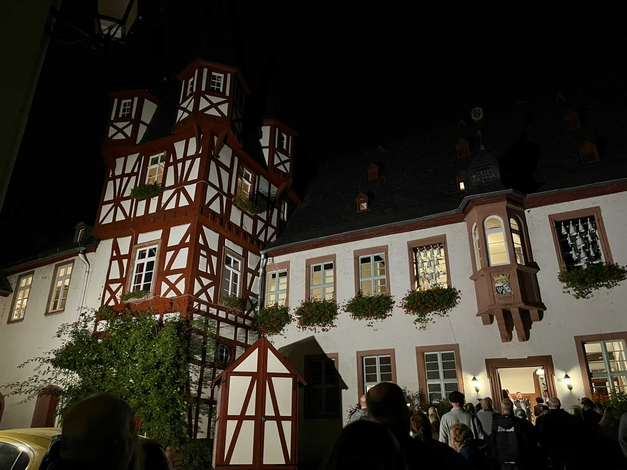 À destination, et à la suite d’un énième souper bien arrosé, nous montons à bord d’un petit train touristique qui nous conduit au Siegfried’s Mechanisches Musikkabinett, le tout premier musée allemand consacré aux instruments de musique mécaniques. Fidèles à nous-mêmes dans ces petits trains, nos wagons étaient les plus turbulents et ricaneurs. Logé dans le Brömserhof, une demeure du 15e siècle, il rassemble plus de 350 instruments automatiques : boîtes à musique, orchestrions, pianos mécaniques, gramophones et autres merveilles techniques. Un vrai bonheur des sens. Lucie et Sylvie ont actionné la manivelle d'un orchestrion et Christiane y est allée de quelques douces notes au piano. Nous avons également observé les outils servant à fabriquer cylindres d’orgue, rouleaux de notes et plaques musicales. Cette plongée sonore dans les savoir-faire d’autrefois fut un moment unique, apprécié de tous grâce à Sylvain, notre animateur dédié. On y découvre de véritables merveilles d’ingéniosité jusqu’aux boîtes musicales qui imitent à la perfection le chant de différentes espèces d’oiseaux. Patrice a terminé la visite en jouant l'air de Valderi Valdera alors que nous chantions tous en chœur. C'était beau à entendre. En sortie de visite, une autre surprise attendait le groupe: au nom de Louise Drouin, j'ai offert aux voyageurs une petite boîte à musique. Un geste fort apprécié qui permettra à chacun de conserver un souvenir mélodieux de cet endroit.