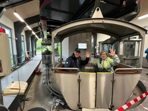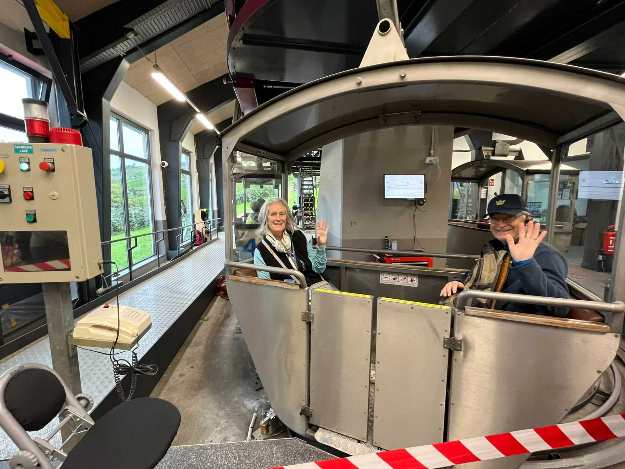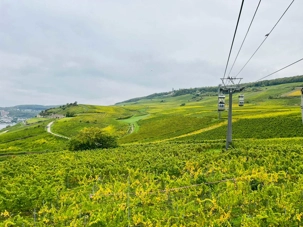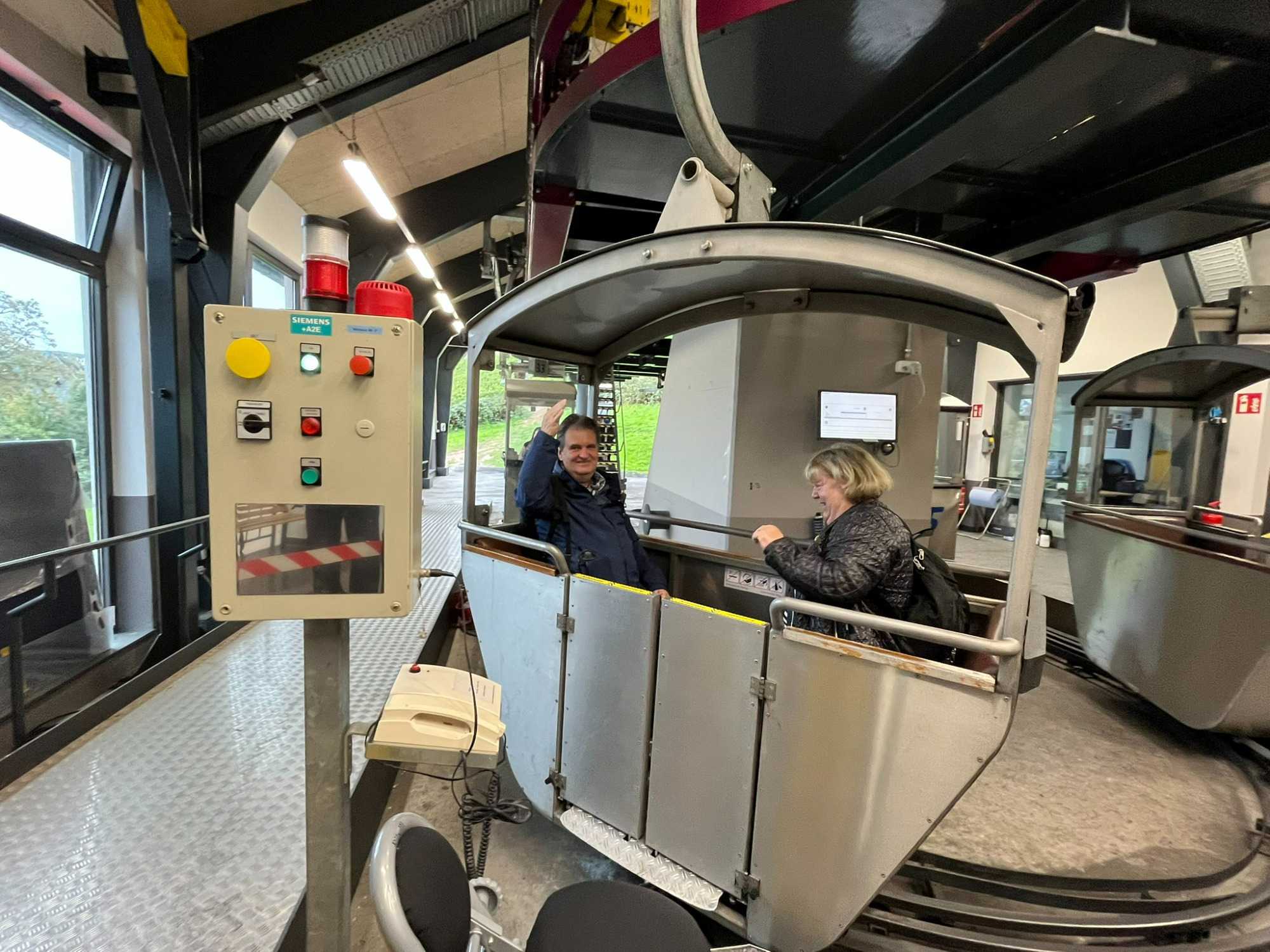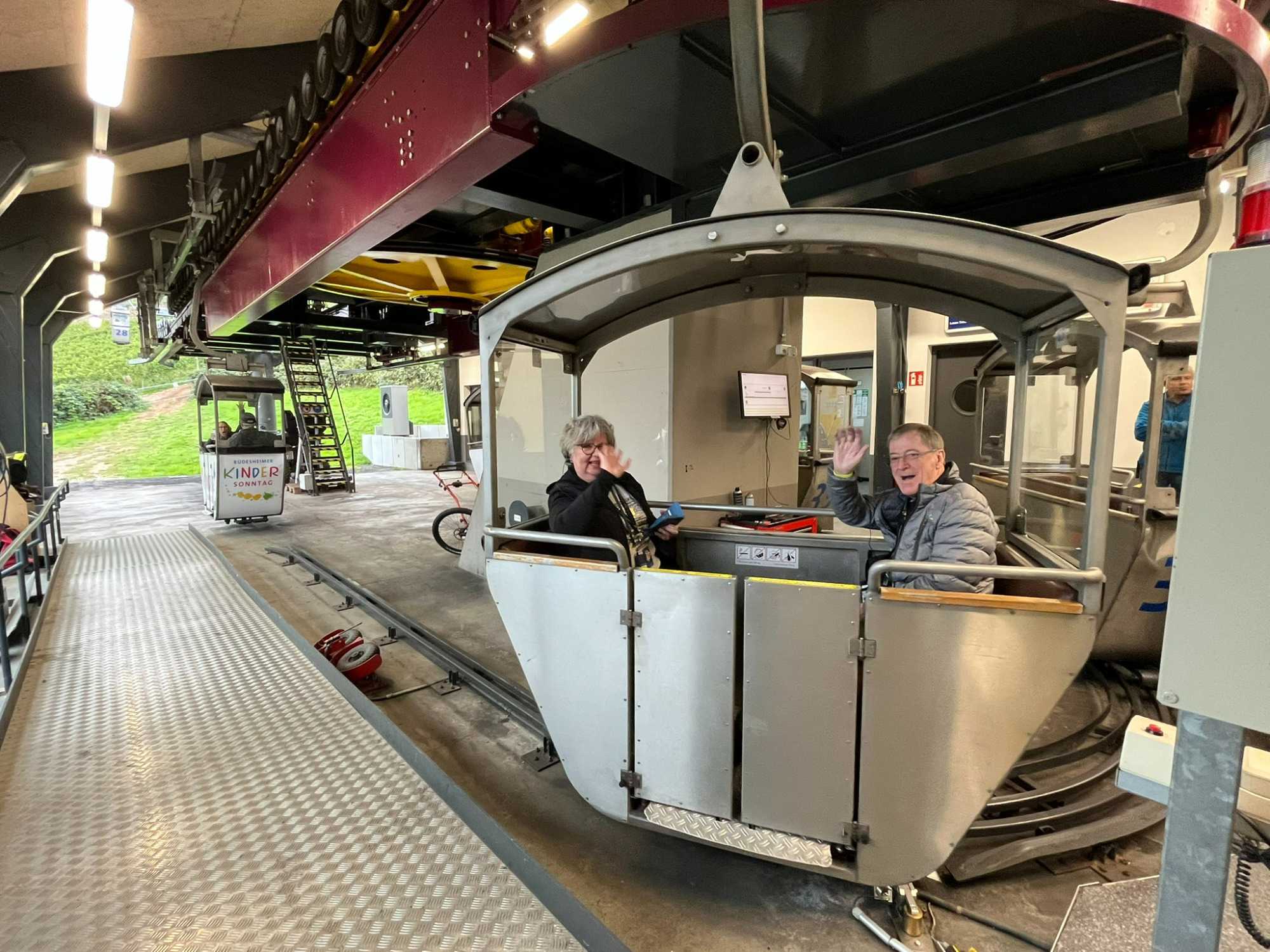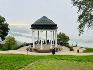 Cet avant-midi, nous avons la chance de poursuivre notre exploration de Rüdesheim d’une manière toute particulière, c’est-à-dire du haut des airs en compagnie de Marion, une Allemande d’origine qui a appris son français en Suisse. C’est à bord d’une gondole biplace que nous amorçons notre ascension d’une dizaine de minutes. Le téléphérique s’élève lentement au-dessus des vignobles en terrasses, offrant un panorama spectaculaire sur la vieille ville, le Rhin, ses îles et les collines environnantes. Au sommet, trône l’imposant Niederwalddenkmal.