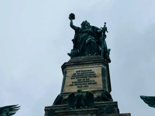 Ce monument de 38 mètres de haut, érigé entre 1871 et 1883, commémore la fondation de l’Empire allemand après la guerre franco-prussienne. Il symbolise l’unité du pays sous l’égide de l’empereur Guillaume Ier. Au sommet, la statue majestueuse de Germania, allégorie féminine de l’unité allemande, mesure à elle seule 12,5 mètres. Elle brandit l’épée impériale dans une main et la couronne de la victoire dans l’autre. Juste sous elle, un relief monumental met en scène 133 personnages grandeur nature – le plus grand relief en bronze du 19e siècle. Ce lieu est à la fois un site de mémoire nationale et un point de vue prisé, avec de nombreux sentiers menant aux villages voisins. La vue du belvédère est tout simplement saisissante, comme en témoignent nos photos.