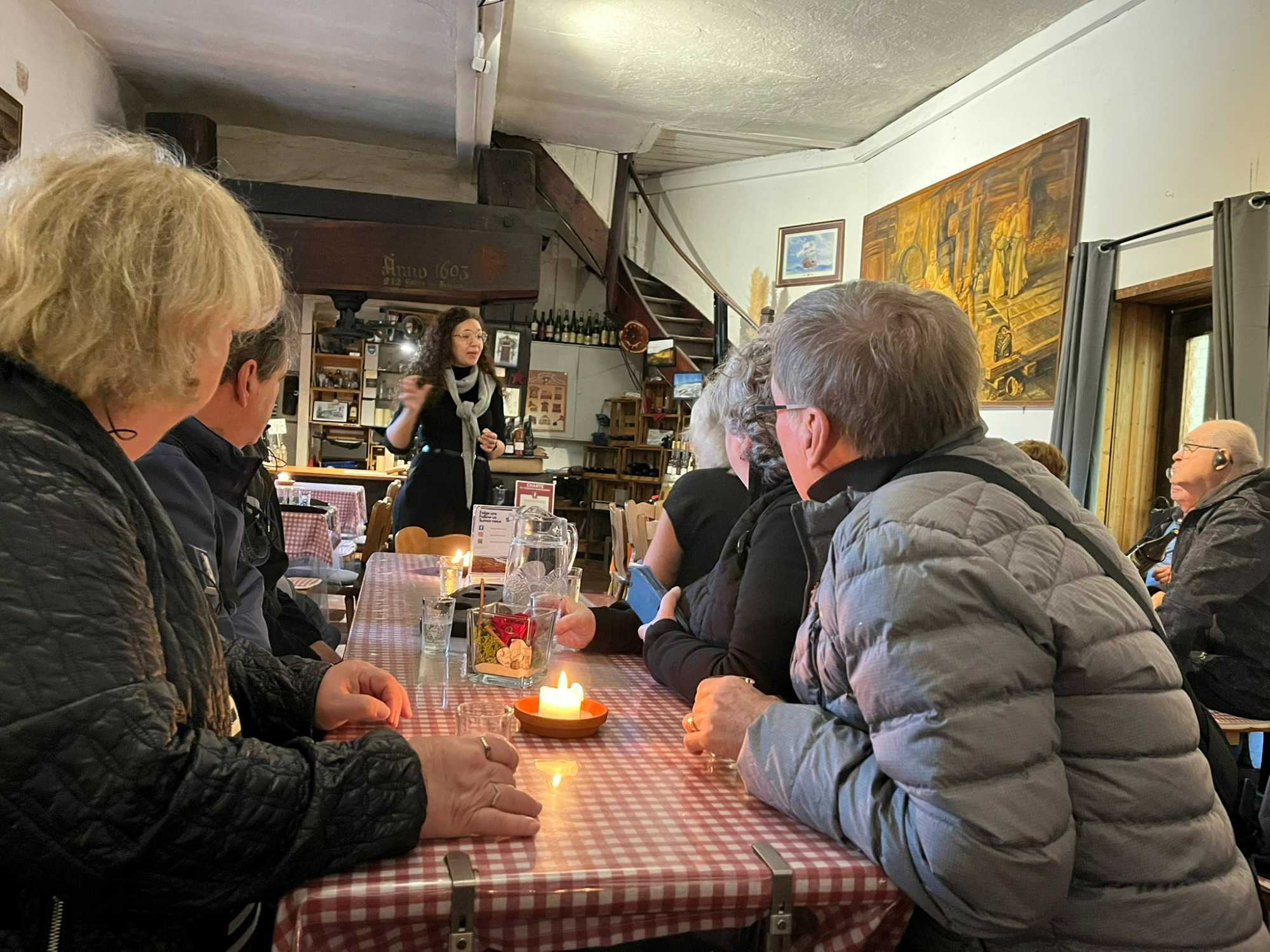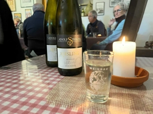En soirée, autour de nos tables respectives et un verre de Riesling à la main, nous discutons des beautés de la journée. Et remercions le ciel d’avoir eu la chance de les admirer.