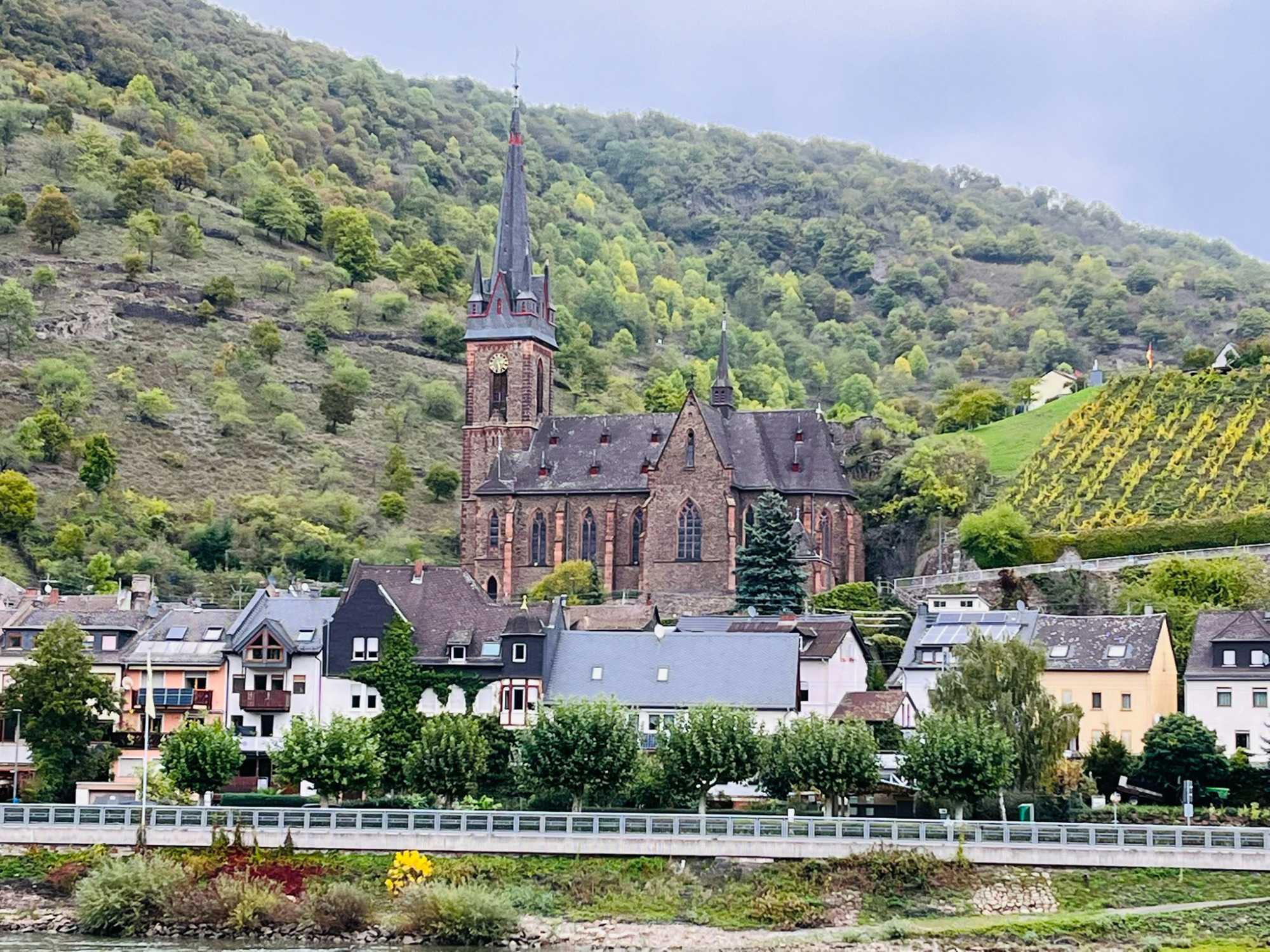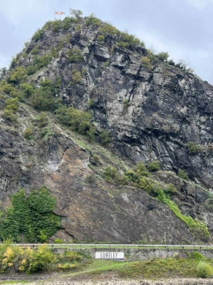 À chaque méandre, c’est un nouveau tableau. Je vous invite à regarder nos images, digne des séries de Downton Abbey ou La Chronique de Bridgerton. Nous adorons les moments de navigation ou nous pouvons profiter de la beauté des paysages qui nous entourent. Clochers pointus, vignes en terrasses, maisons à colombages et falaises se succèdent, au clapotis de l’eau, vraiment, tout y est! Arrive alors la Lorelei, majestueuse falaise de 132 mètres, qui marque l’endroit le plus étroit du Rhin. Son avancée dans le fleuve rétrécit sa largeur d’un quart, ce qui en fait un passage redouté, avec un fort courant et plusieurs accidents à son actif.Selon la légende, Lorelei est le nom d’une sirène aux cheveux d’or dont le chant aurait charmé et fait chavirer de nombreux marins. Sa statue veille désormais sur le site, mais pas de panique : notre capitaine et nos voyageurs ne se sont pas laissé envoûter !