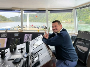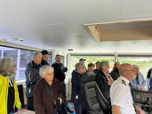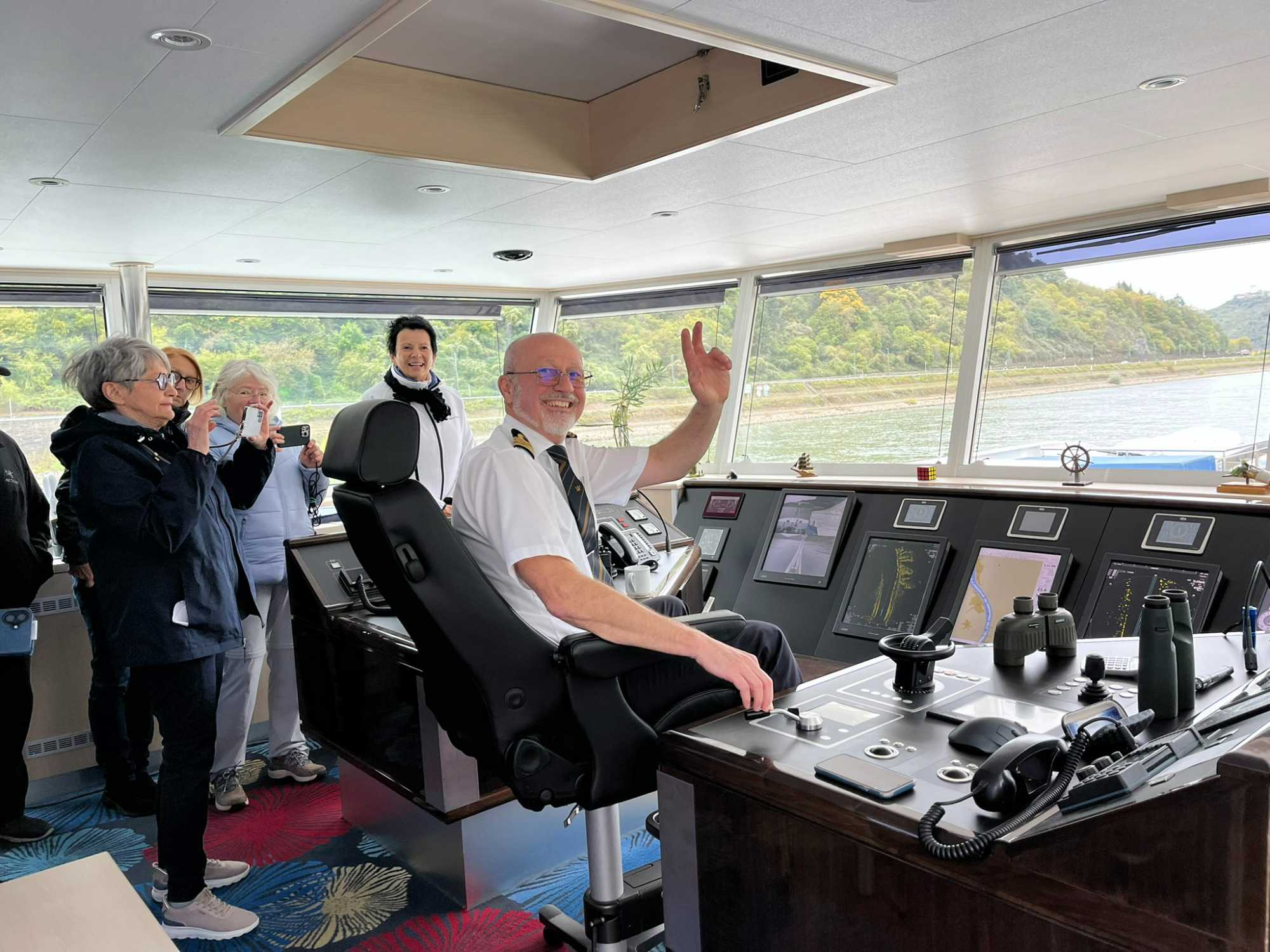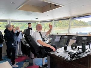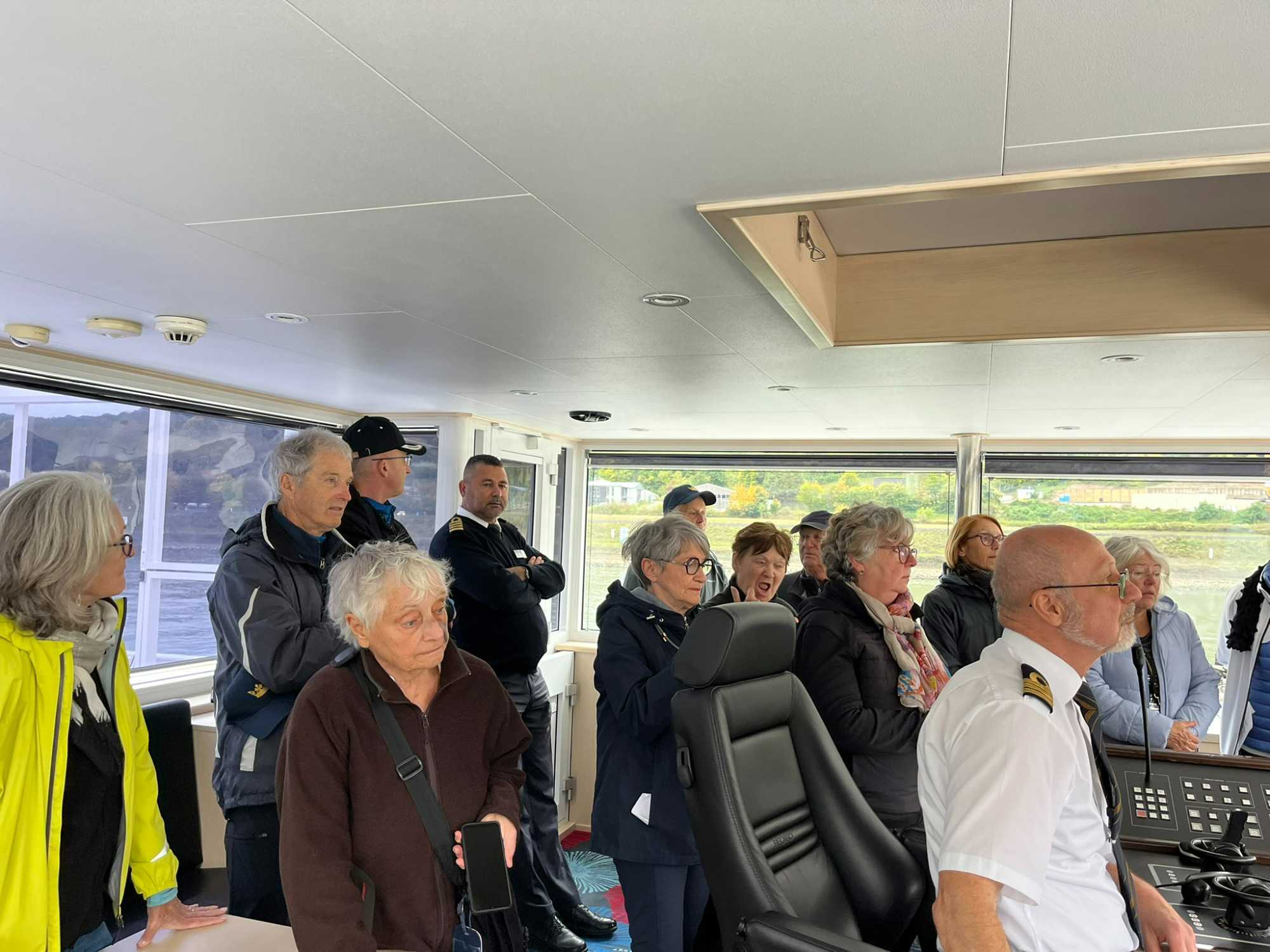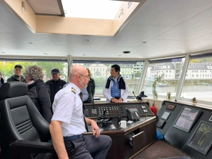 L’occasion était parfaite pour offrir à mes voyageurs une visite exclusive de la capitainerie. Andreas et Zoltan, sont nos deux capitaines hongrois, tandis que André, les assiste, lui qui poursuit actuellement son apprentissage du métier. Ils nous ont bien renseigné sur le mode de pilotage, et les outils de navigation. Ici, aucun système de pilote automatique, tout est dirigé par la main de l’homme.Ces quelques heures de navigation passent trop vite, mais resteront longuement gravé dans nos mémoires.