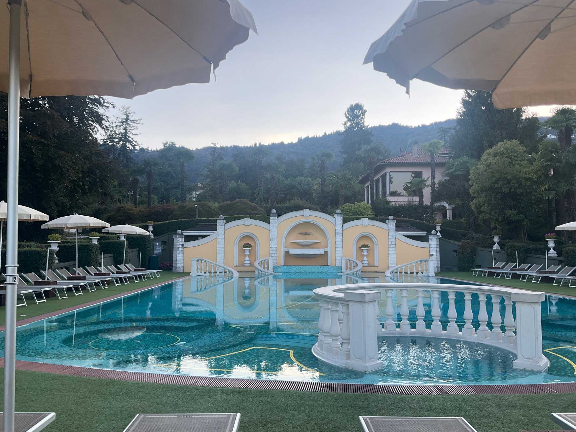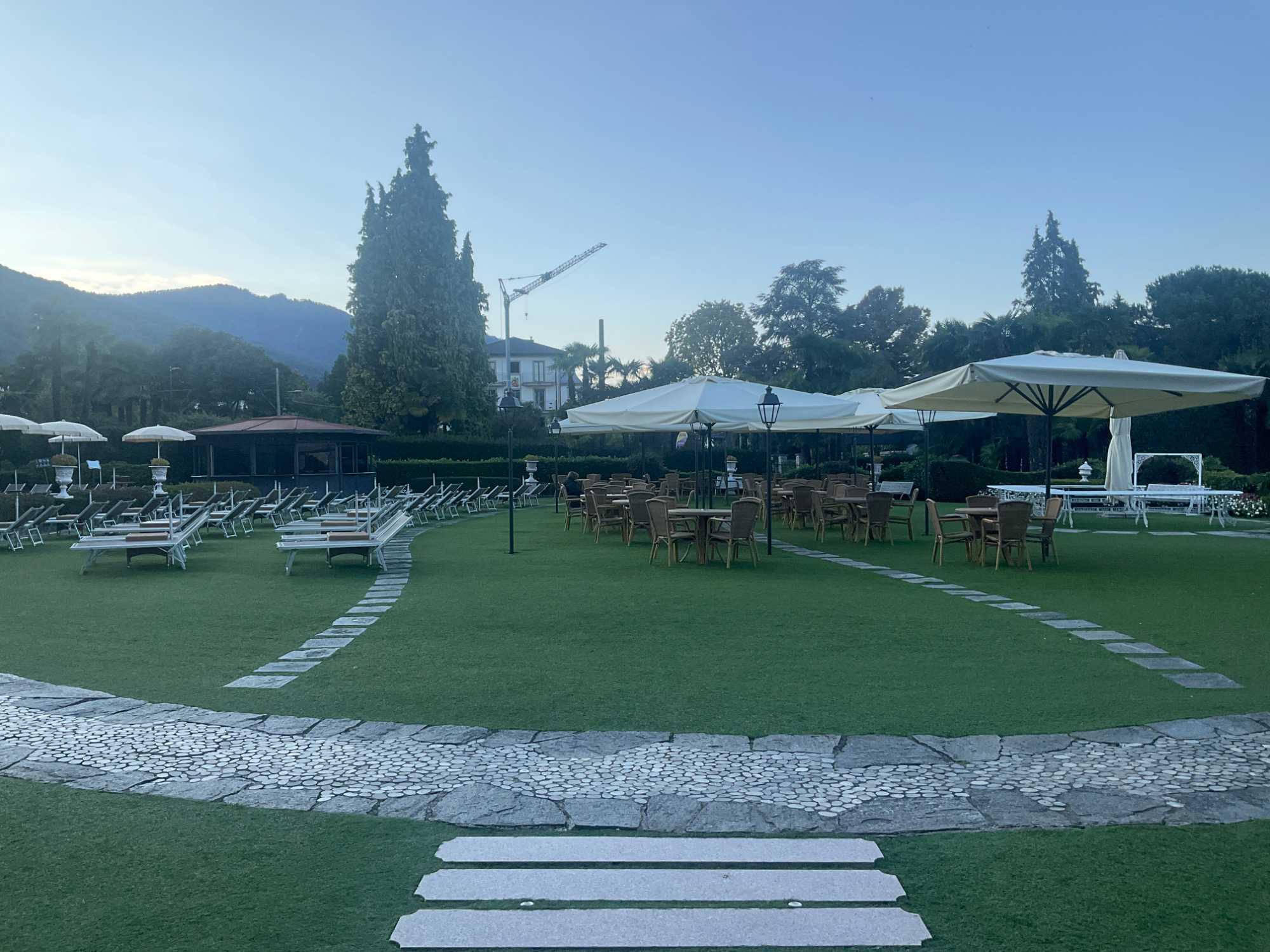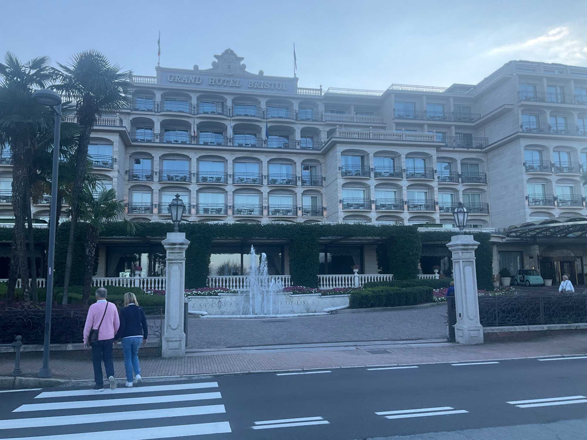 Nous sommes passés à la portion « détente » de notre circuit comme son nom l’indiquait dans la promotion de ce voyage. Le Grand Hôtel Bristol se veut une ancienne résidence, un bâtiment noble de la fin du XIX siècle située sur le bord du lac Majeur, chargée d’histoire. De façon aléatoire, certains de nos clients occupent une chambre avec vue sur le lac et profitent de cette vue imprenable sur le lac Majeur et ses bateaux à voile, alors que d’autres séjournent dans une chambre avec vue jardin, pour s’immerger dans la nature. Comme on arrive tôt, on a le temps de faire une petite balade sur le sentier « méditatif » aménagé le long du lac ou profiter des services à proximité.