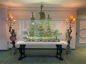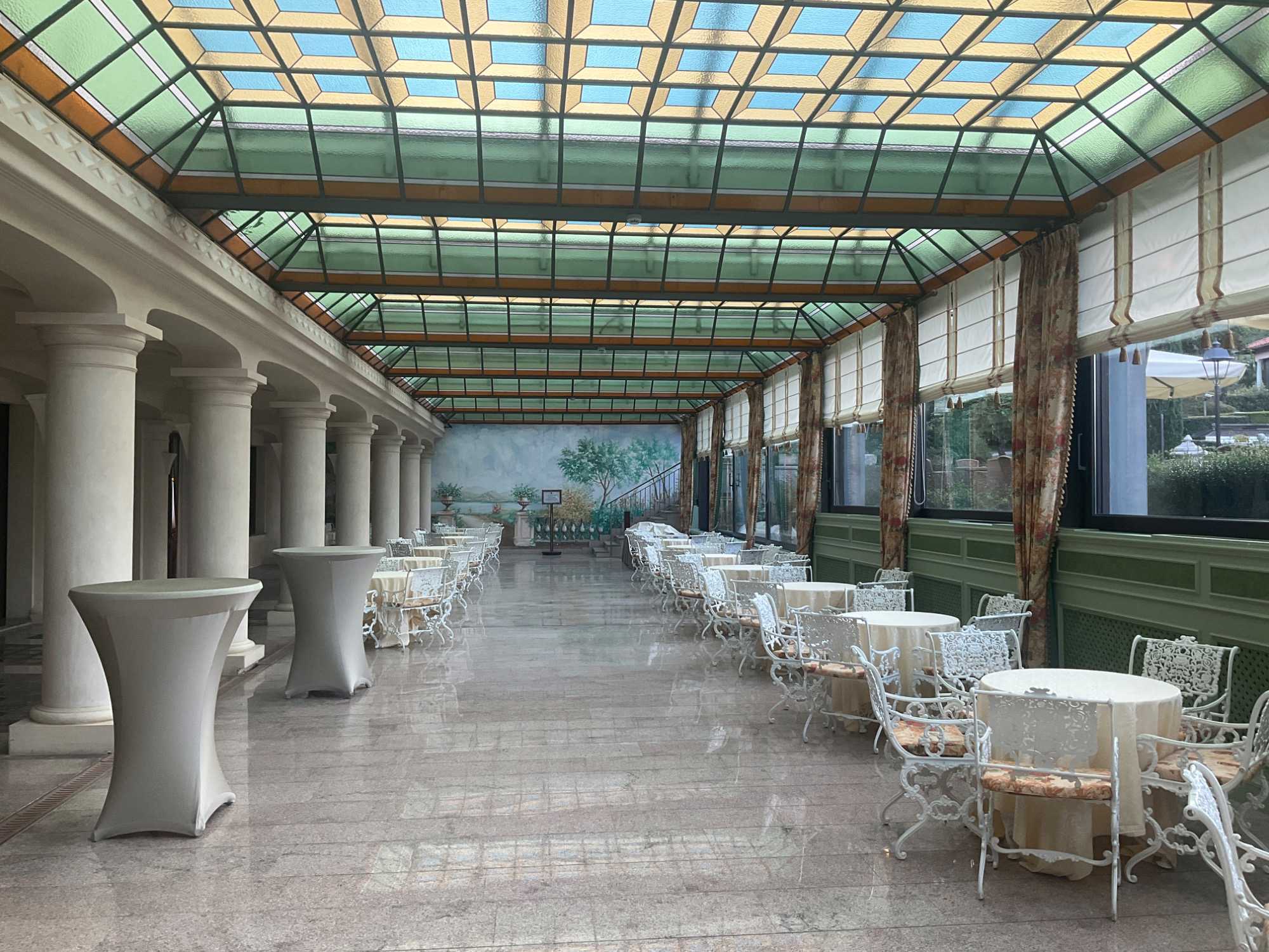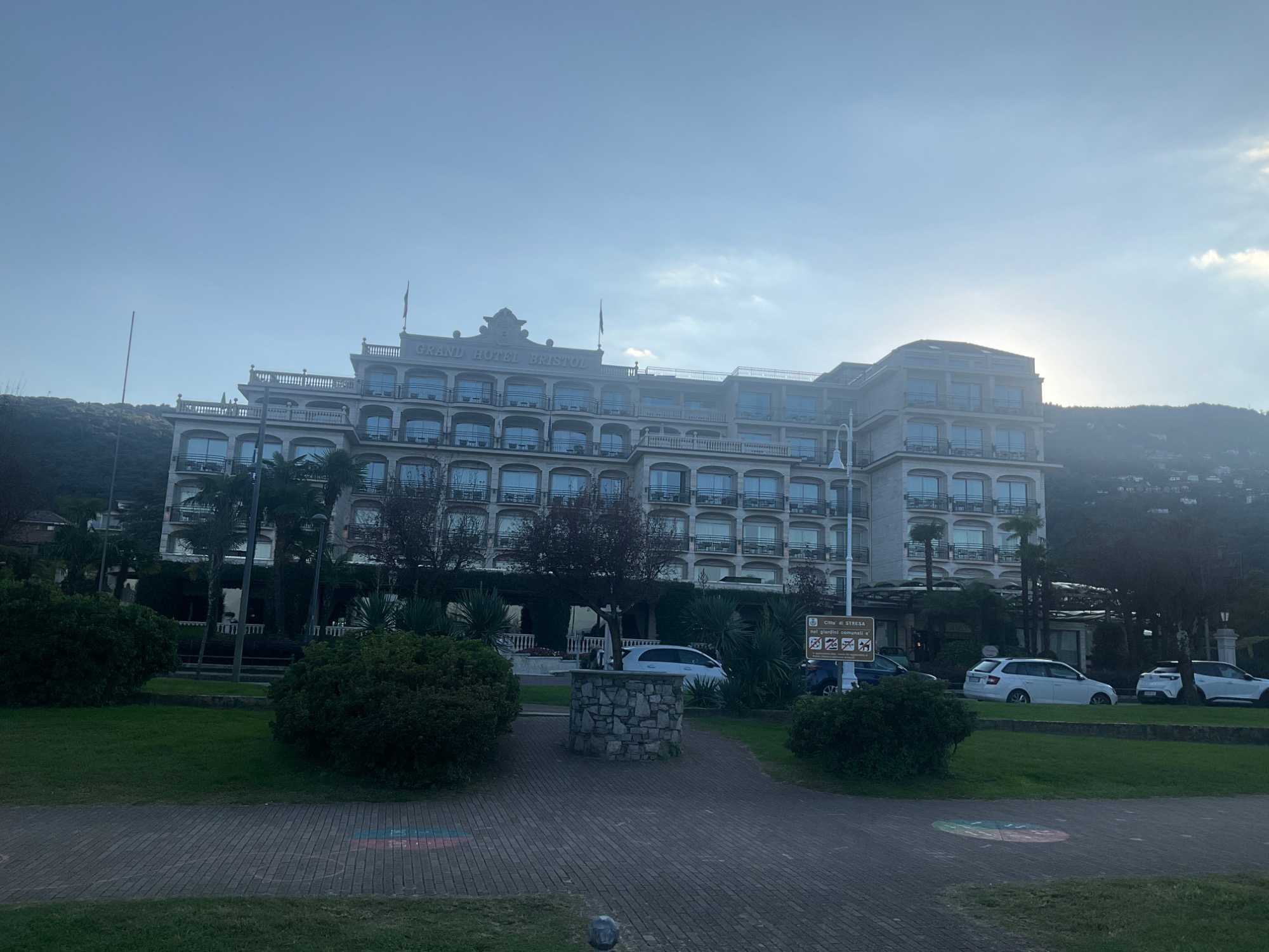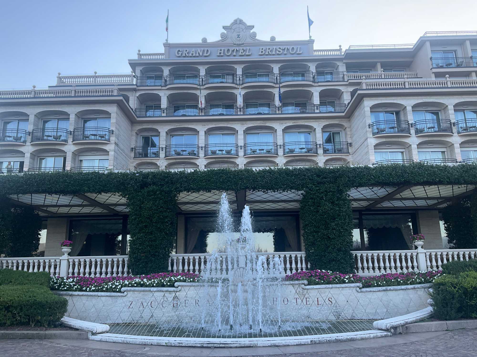 Nous sommes passés à la portion « détente » de notre circuit comme son nom l’indiquait dans la promotion de ce voyage. Le Grand Hôtel Bristol se veut une ancienne résidence, un bâtiment noble de la fin du XIX siècle située sur le bord du lac Majeur, chargée d’histoire. De façon aléatoire, certains de nos clients occupent une chambre avec vue sur le lac et profitent de cette vue imprenable sur le lac Majeur et ses bateaux à voile, alors que d’autres séjournent dans une chambre avec vue jardin, pour s’immerger dans la nature. Comme on arrive tôt, on a le temps de faire une petite balade sur le sentier « méditatif » aménagé le long du lac ou profiter des services à proximité.