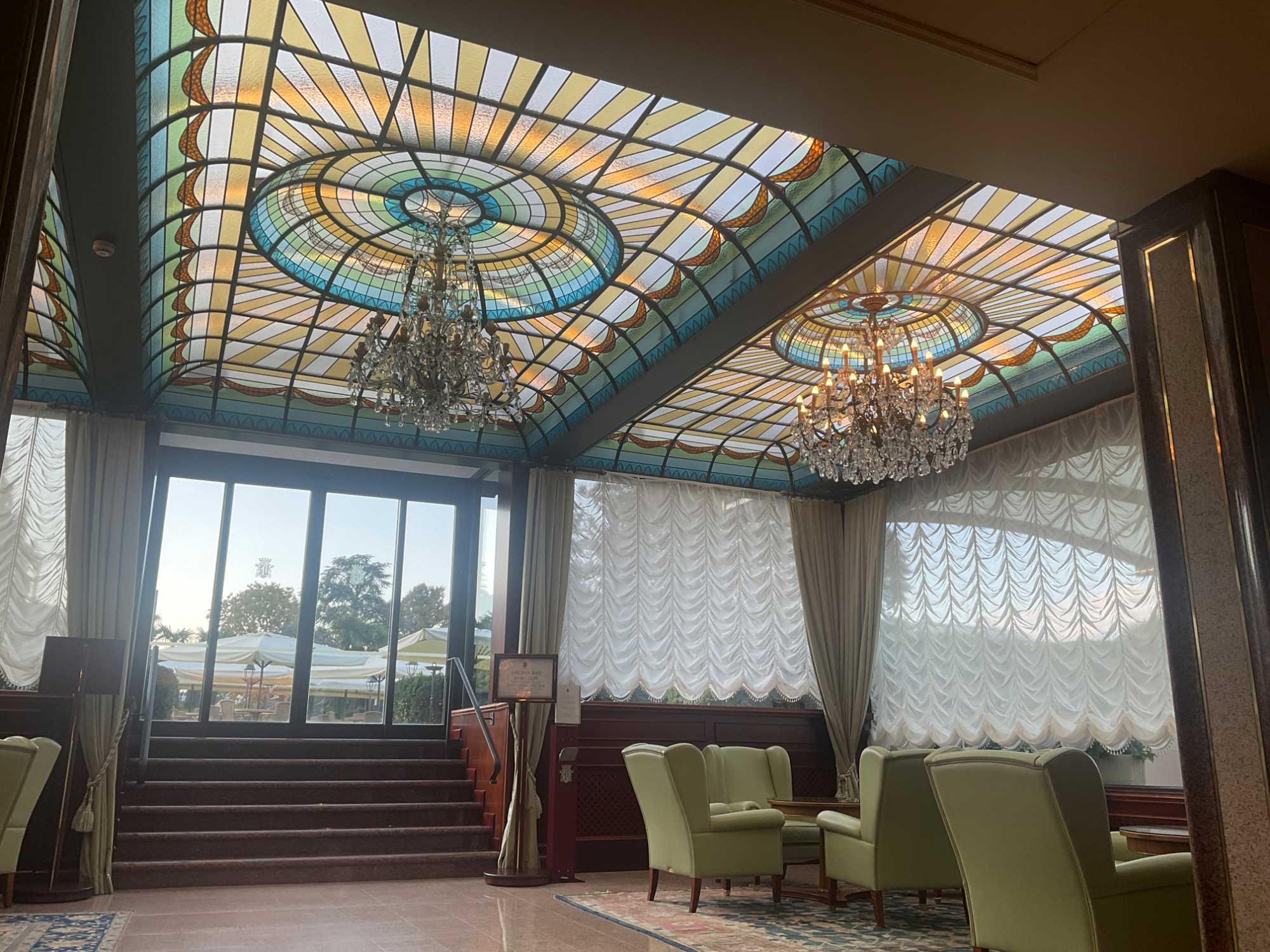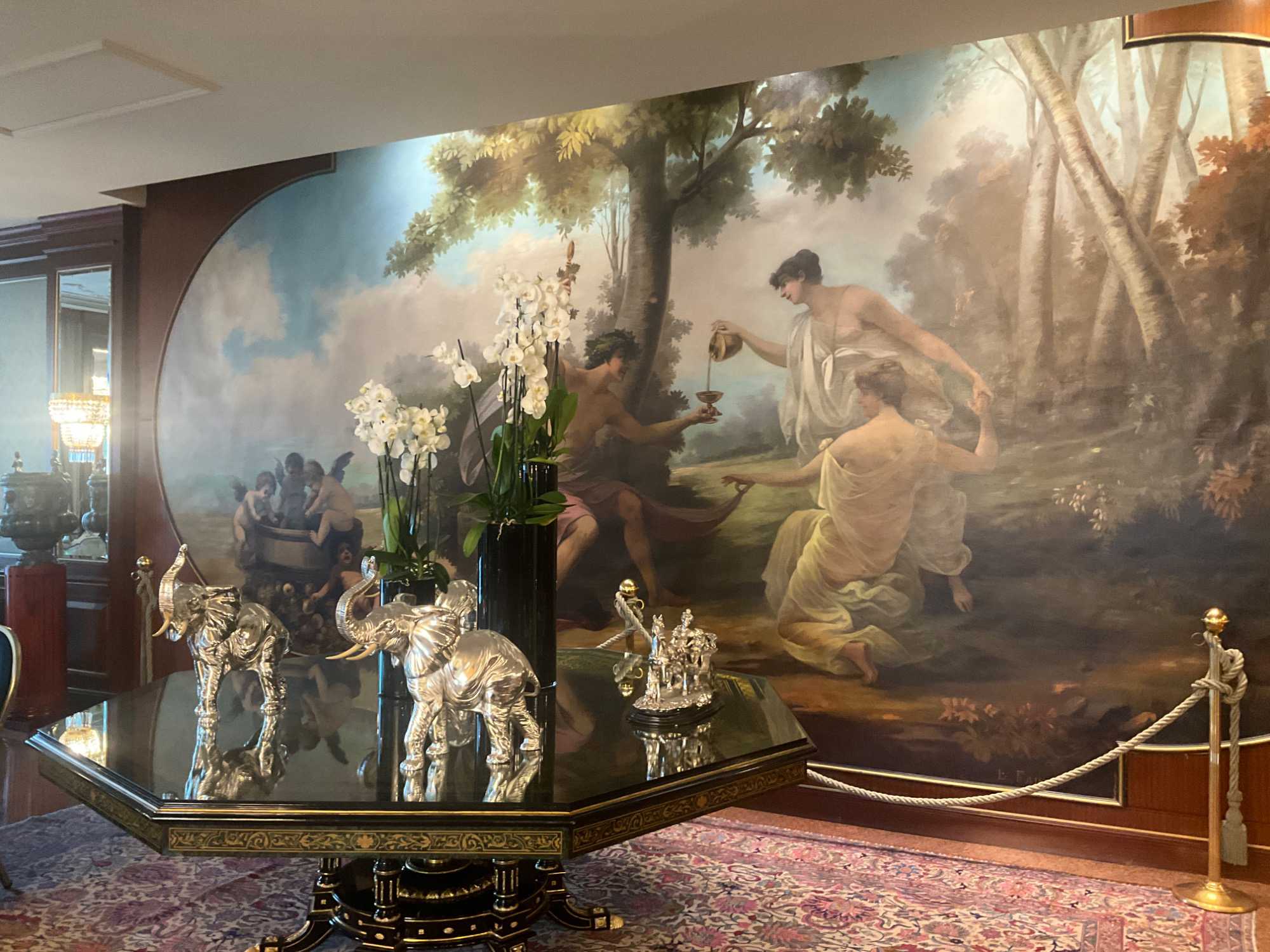 Nous, de façon plus pratique, au cours des cinq prochains jours, on profitera de notre « camp de base » (hihi). On va sans doute apprécier la grande piscine intérieure et pour les plus courageux, il y aurait la piscine extérieure dans le jardin mais même ici c’est un peu frais, le spa et les services à proximité. Juste de faire le tour de l’hôtel sera une activité en soi. Et si demain matin une brume flotte au-dessus des eaux, on aura droit à un décor « romantique » de souvenirs de la Belle Époque (de la fin du XIX e siècle au début de la Première Guerre mondiale en 1914).