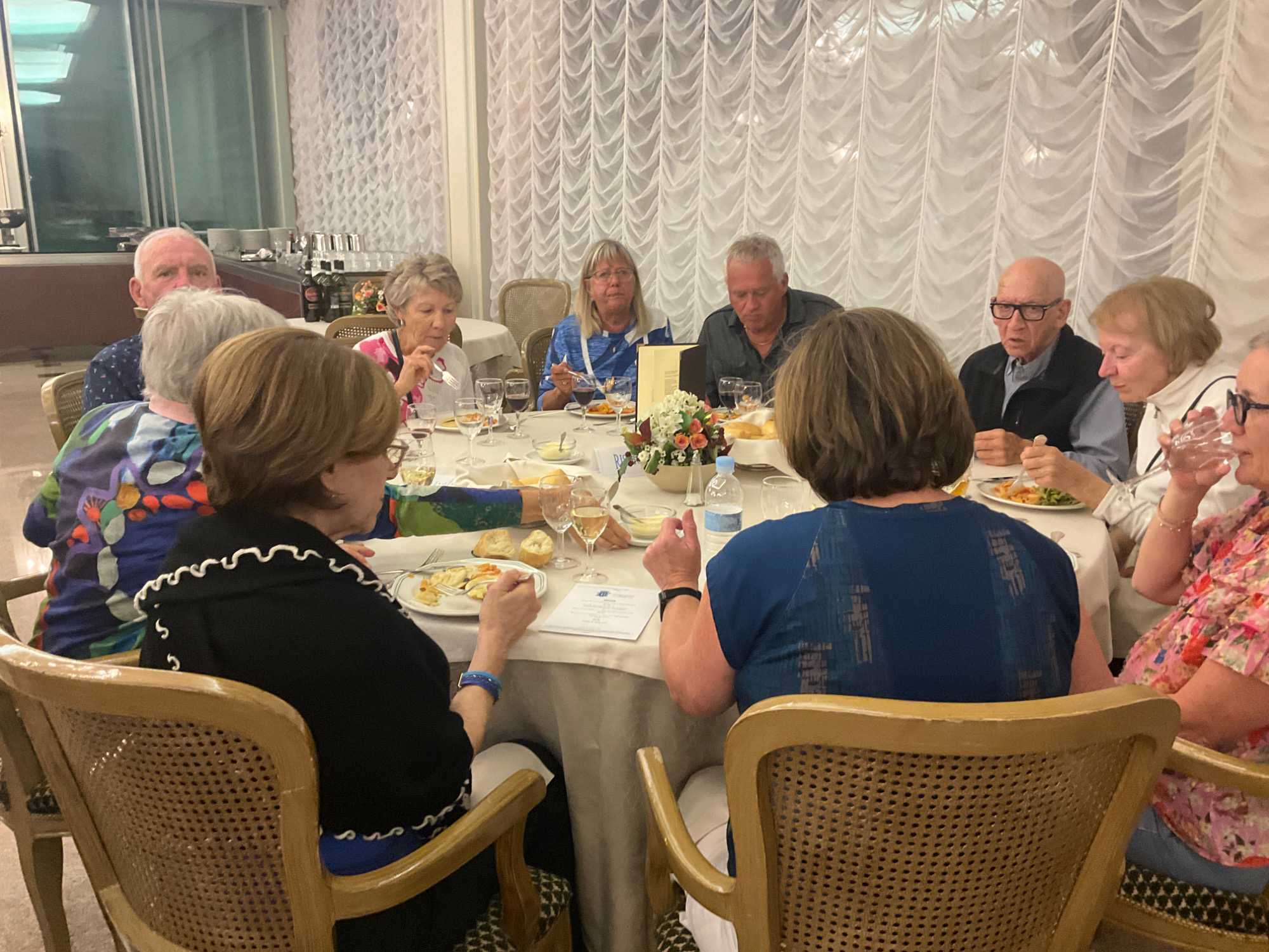 Ce n’est pas la faim qui nous châtouille l’estomac mais notre péché de gourmandise qui nous invite dans une immense salle à manger pour notre souper. Notre menu? Croyez-le ou non: Cuisse de veau, sauce monferrina, suivi d’un tortelli mascarpone et noix au beurre et poireaux croustillants accompagnés de penne aux tomates cerises et crevettes. Et puisqu’il fallait bien passer au mets principal, le rôti de boeuf dans sa sauce aux trois poivres complétait presque le menu mais, j’allais oublié la salade de fruits frais pour alléger les mets précédents. Et croyez-le ou nous, nos voyageurs sont allés se coucher juste après mais souvenez-vous que nos explorateurs avaient pratiquement passez une nuit blanche dans l’avion et ici nous avons un décalage horaire de six heures.