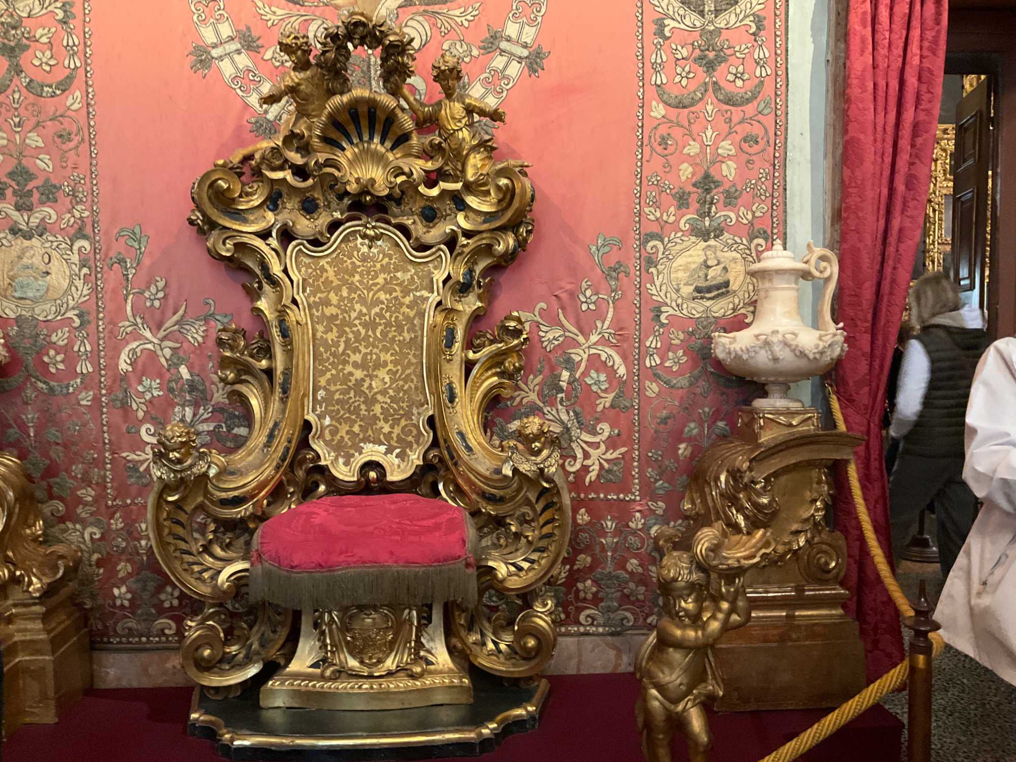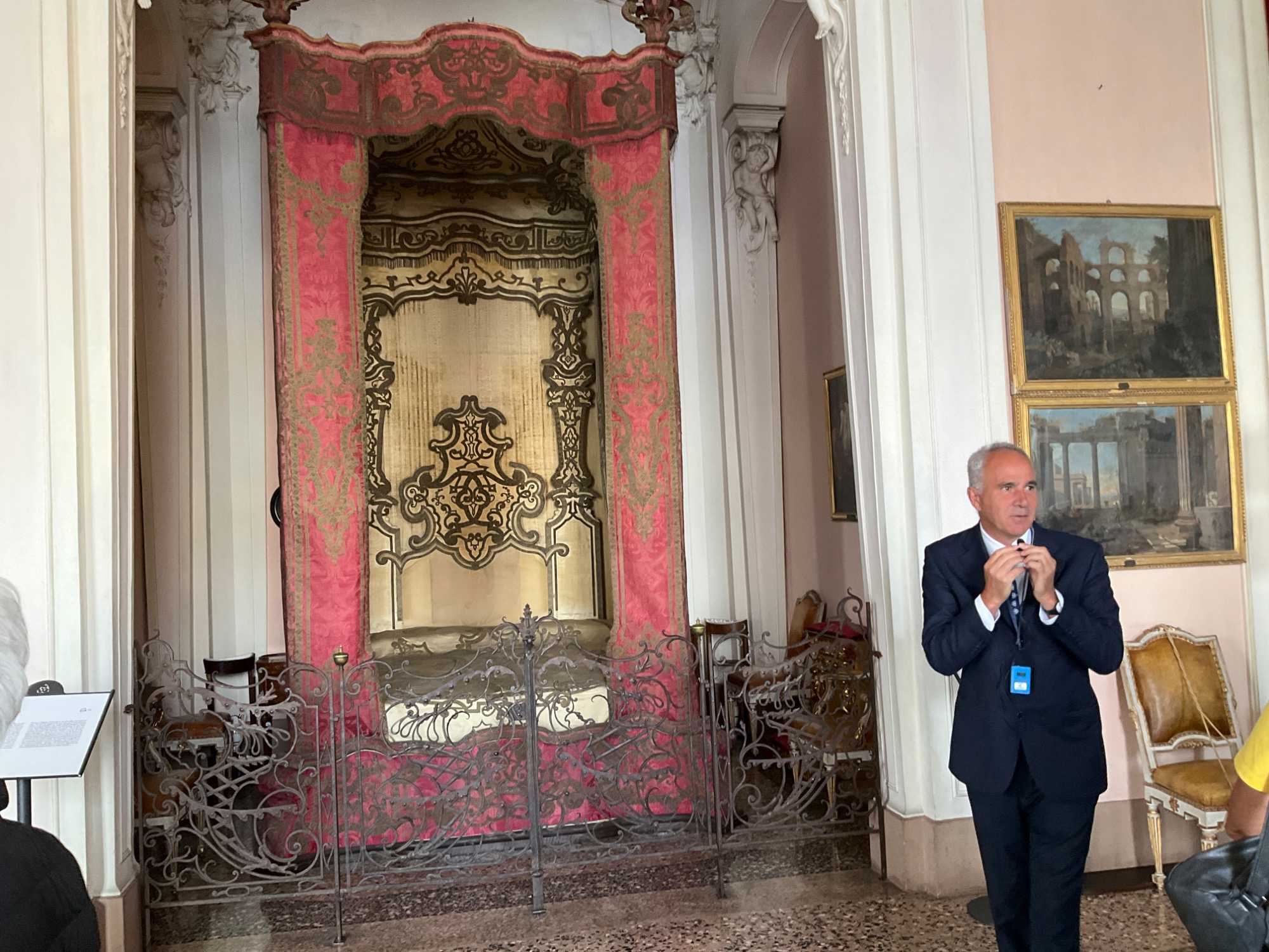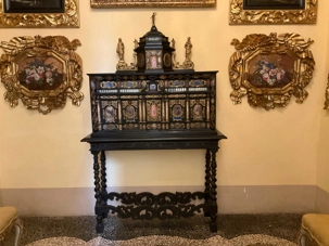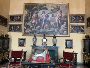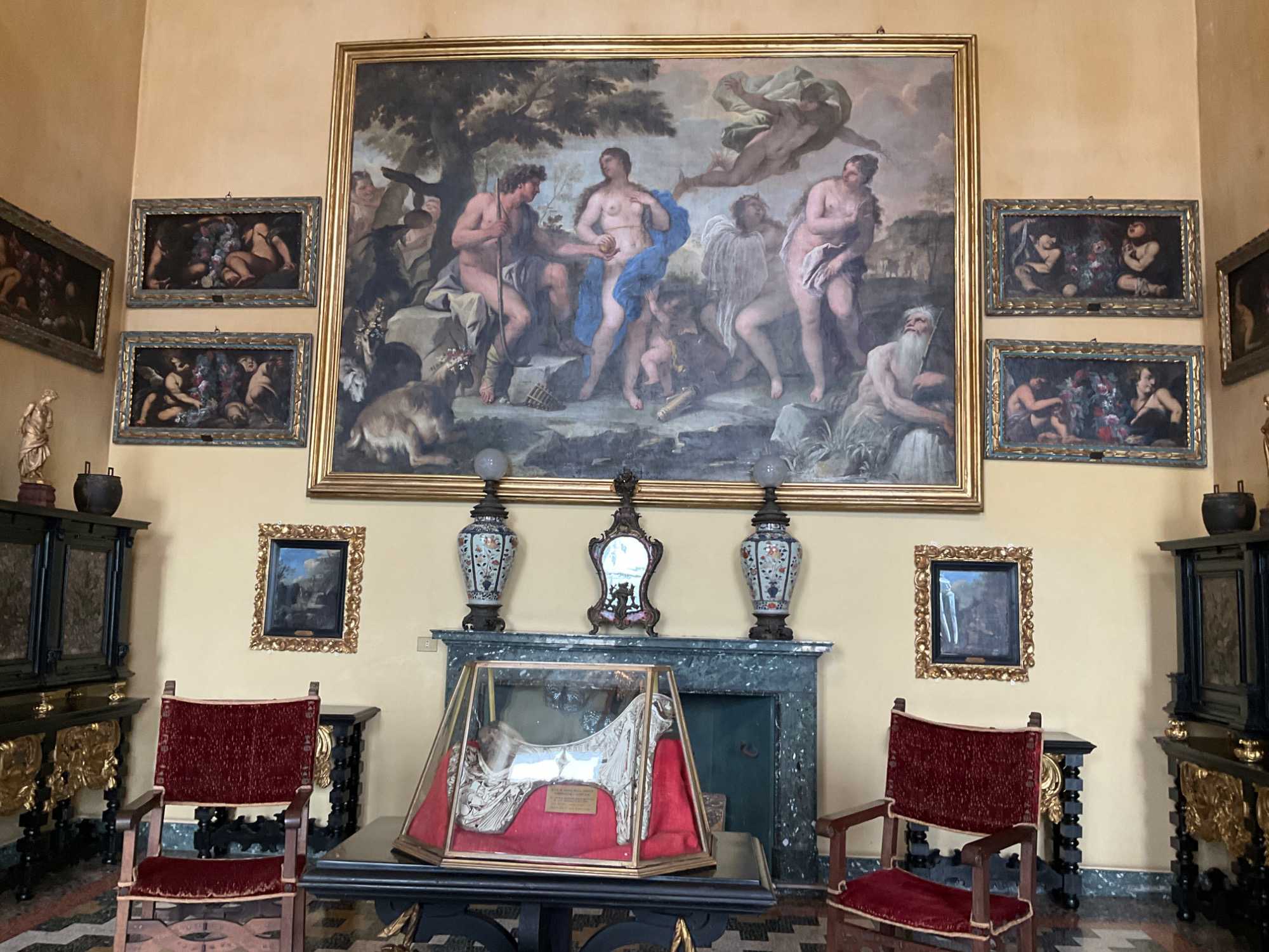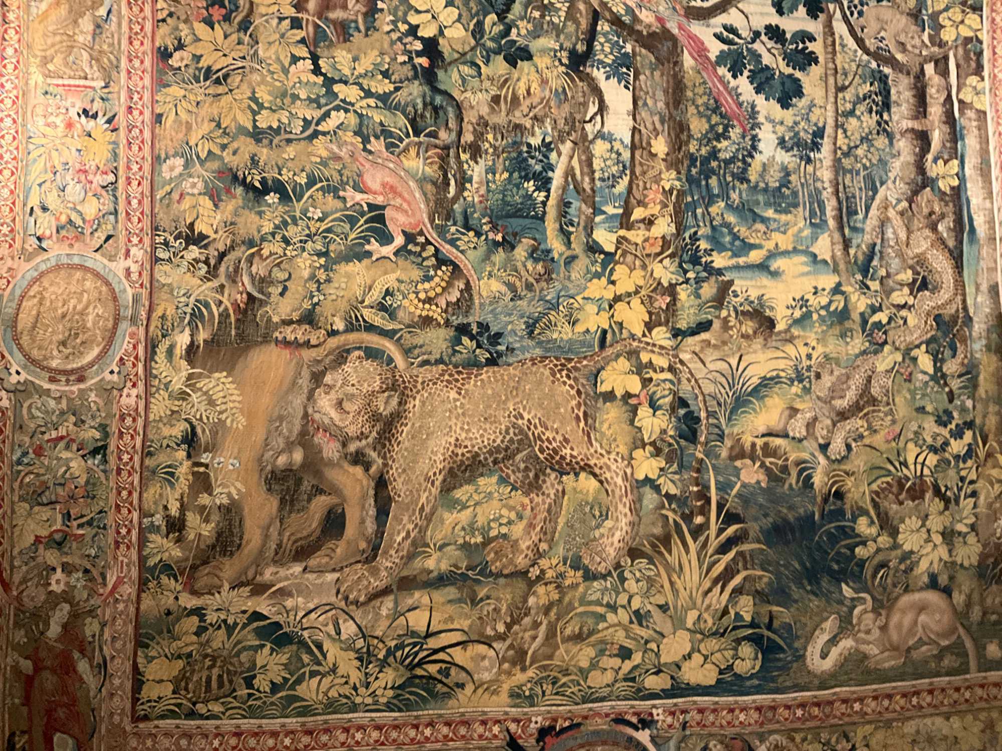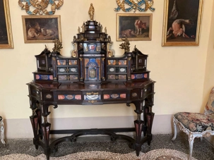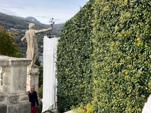 Au cours des siècles suivants, la famille Borromeo, noble il va sans dire, en fit un centre mondain de première importance. En fait, le palais Borromée (XVIIe siècle) occupe toute l’île qui renferme un musée où l’on a pu y voir les armoiries de Saint-Chales Boromée ….d’où un secteur de Drummondville tire son nom. De magnifiques jardins ajoutent au palais un cadre ravissant et paisible. L’un des principaux événements historiques qui se déroulèrent à Isola Bella, fut le passage de Napoléon Bonaparte en août 1797, et la rencontre entre Benito Mussolini, Pierre Laval et Ramsay MacDonald (un ancêtre de la chaîne de ‘’fast food’’ américaine ?Hihi!) du 11 au 14 avril 1935 lors de la conférence de Stresa, et les discussions eurent lieu dans le palais Borromée. Aujourd’hui, le palais s’adapte au 21e siècle et est devenu le siège du Festival de musique de Stresa cette splendide architecture baroque italienne accueille encore la famille Borromée durant l’été. Lady Di et le prince Charles à l’époque y avaient fait une visite. Nous avons été fascinés par les meubles de bois sculptés, les mosaiques minuscules et plus particulièrement par les tapisseries gigantesques.