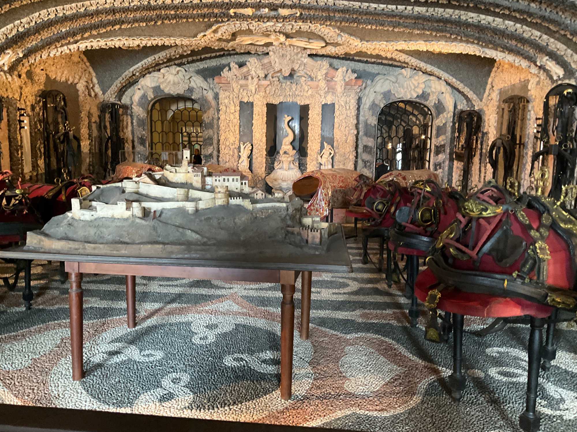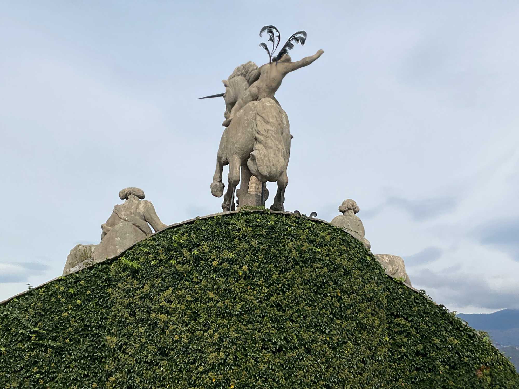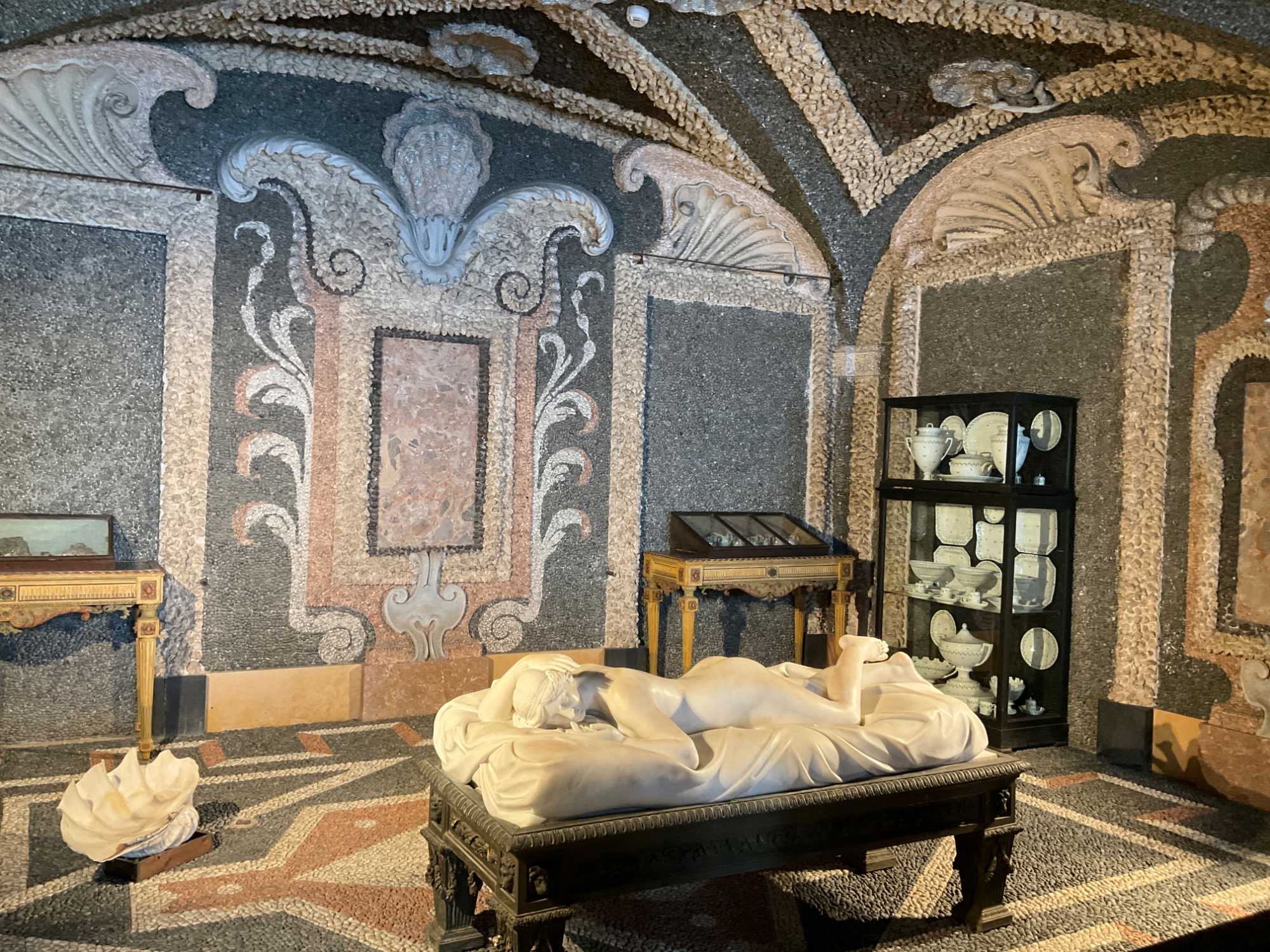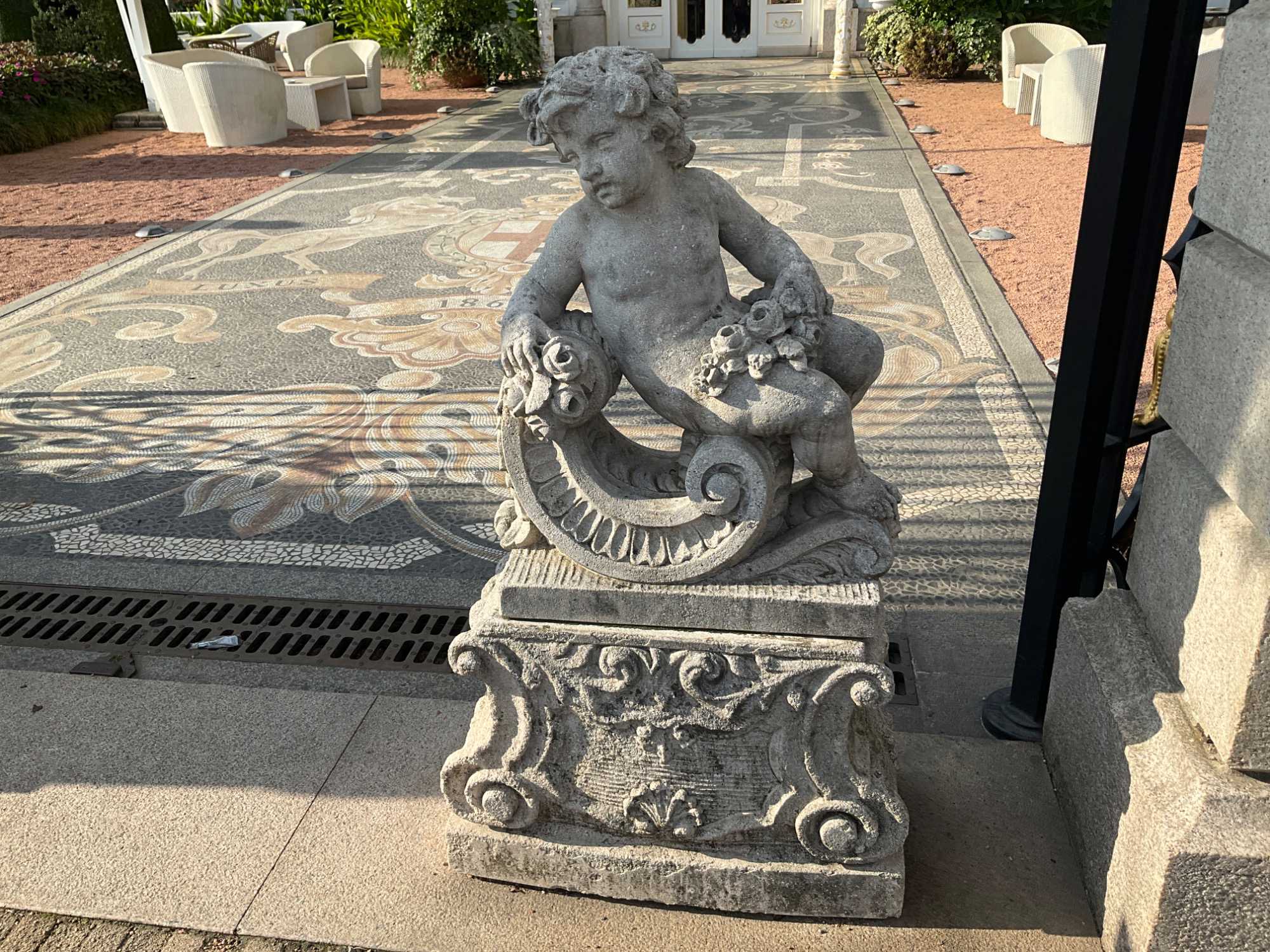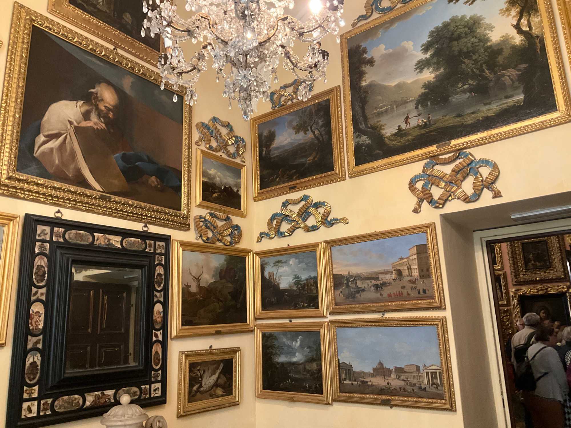 Au cours des siècles suivants, la famille Borromeo, noble il va sans dire, en fit un centre mondain de première importance. En fait, le palais Borromée (XVIIe siècle) occupe toute l’île qui renferme un musée où l’on a pu y voir les armoiries de Saint-Chales Boromée ….d’où un secteur de Drummondville tire son nom. De magnifiques jardins ajoutent au palais un cadre ravissant et paisible. L’un des principaux événements historiques qui se déroulèrent à Isola Bella, fut le passage de Napoléon Bonaparte en août 1797, et la rencontre entre Benito Mussolini, Pierre Laval et Ramsay MacDonald (un ancêtre de la chaîne de ‘’fast food’’ américaine ?Hihi!) du 11 au 14 avril 1935 lors de la conférence de Stresa, et les discussions eurent lieu dans le palais Borromée. Aujourd’hui, le palais s’adapte au 21e siècle et est devenu le siège du Festival de musique de Stresa cette splendide architecture baroque italienne accueille encore la famille Borromée durant l’été. Lady Di et le prince Charles à l’époque y avaient fait une visite. Nous avons été fascinés par les meubles de bois sculptés, les mosaiques minuscules et plus particulièrement par les tapisseries gigantesques.