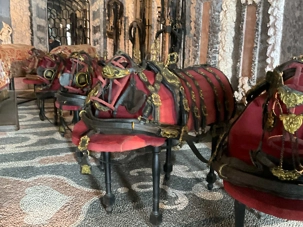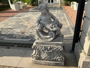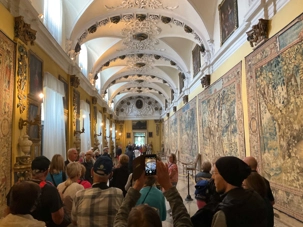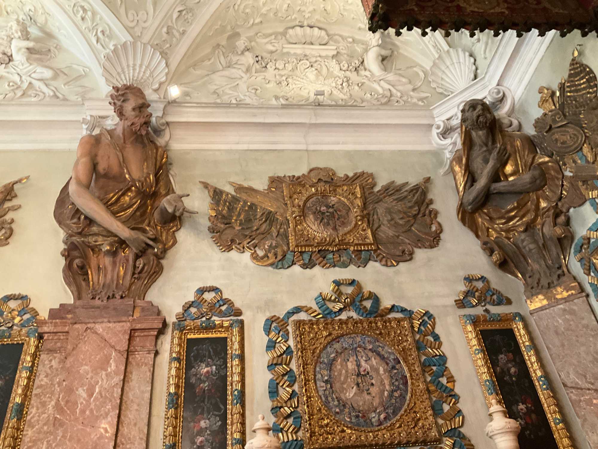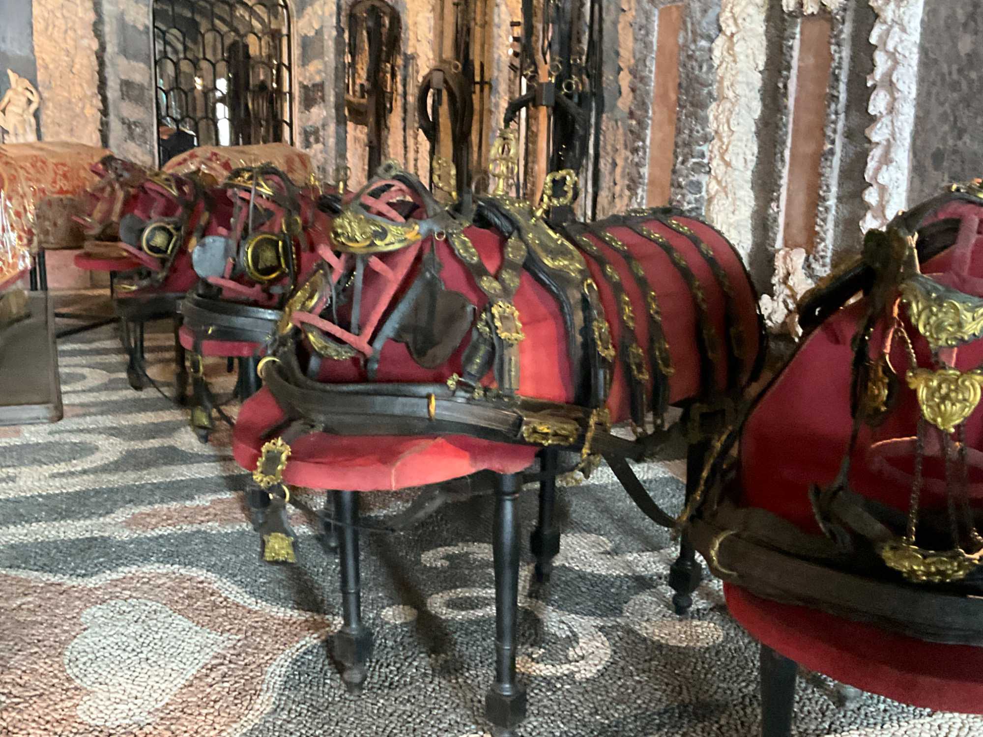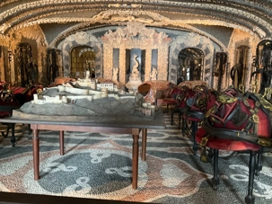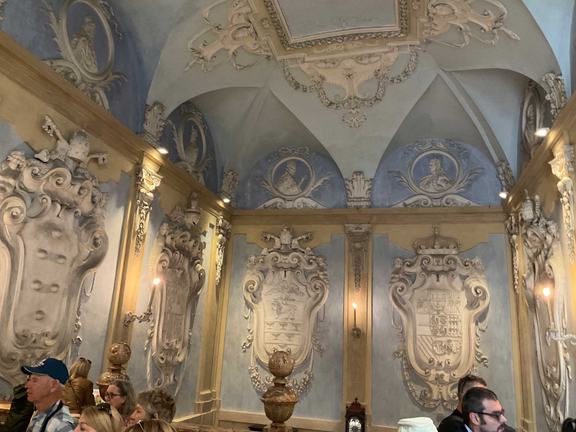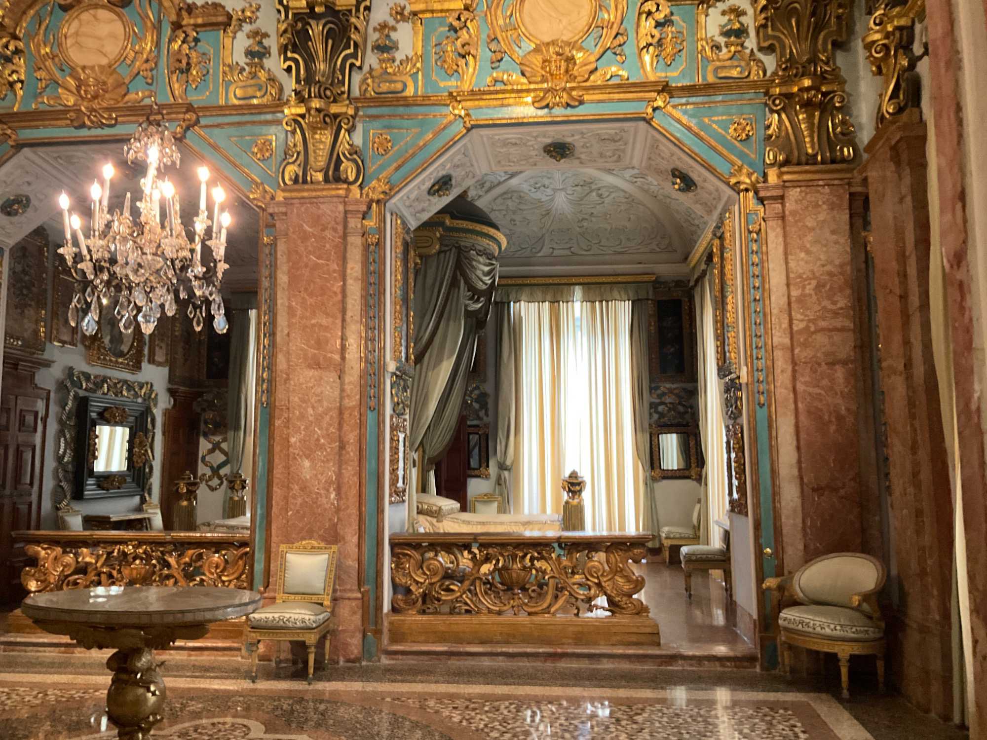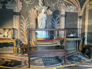 Au cours des siècles suivants, la famille Borromeo, noble il va sans dire, en fit un centre mondain de première importance. En fait, le palais Borromée (XVIIe siècle) occupe toute l’île qui renferme un musée où l’on a pu y voir les armoiries de Saint-Chales Boromée ….d’où un secteur de Drummondville tire son nom. De magnifiques jardins ajoutent au palais un cadre ravissant et paisible. L’un des principaux événements historiques qui se déroulèrent à Isola Bella, fut le passage de Napoléon Bonaparte en août 1797, et la rencontre entre Benito Mussolini, Pierre Laval et Ramsay MacDonald (un ancêtre de la chaîne de ‘’fast food’’ américaine ?Hihi!) du 11 au 14 avril 1935 lors de la conférence de Stresa, et les discussions eurent lieu dans le palais Borromée. Aujourd’hui, le palais s’adapte au 21e siècle et est devenu le siège du Festival de musique de Stresa cette splendide architecture baroque italienne accueille encore la famille Borromée durant l’été. Lady Di et le prince Charles à l’époque y avaient fait une visite. Nous avons été fascinés par les meubles de bois sculptés, les mosaiques minuscules et plus particulièrement par les tapisseries gigantesques.