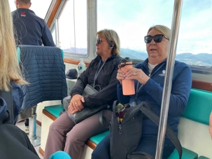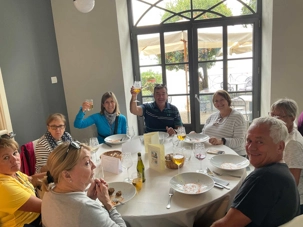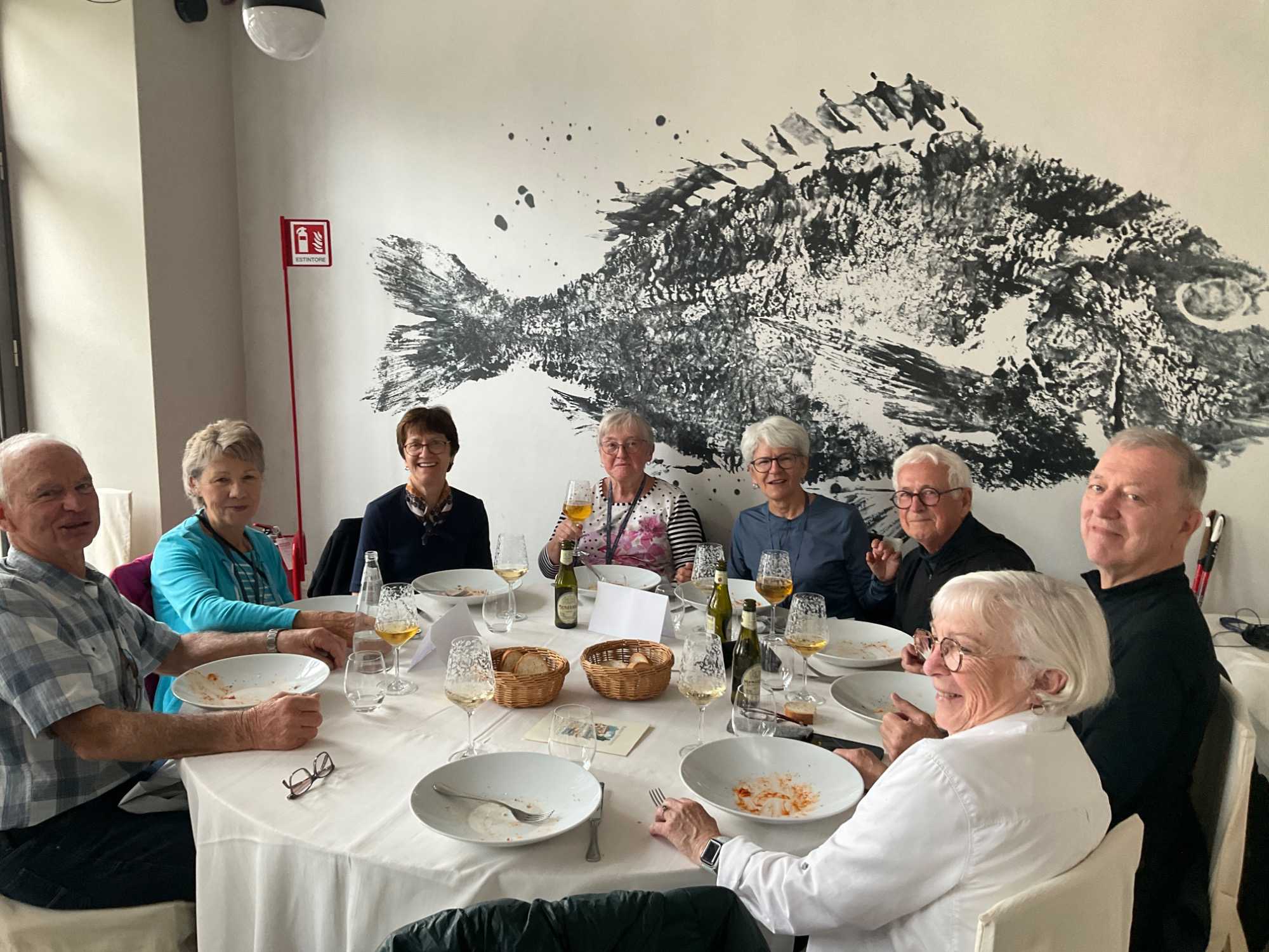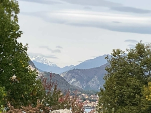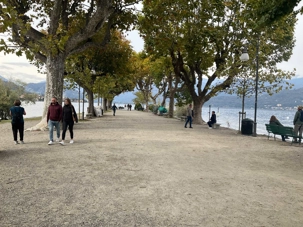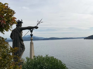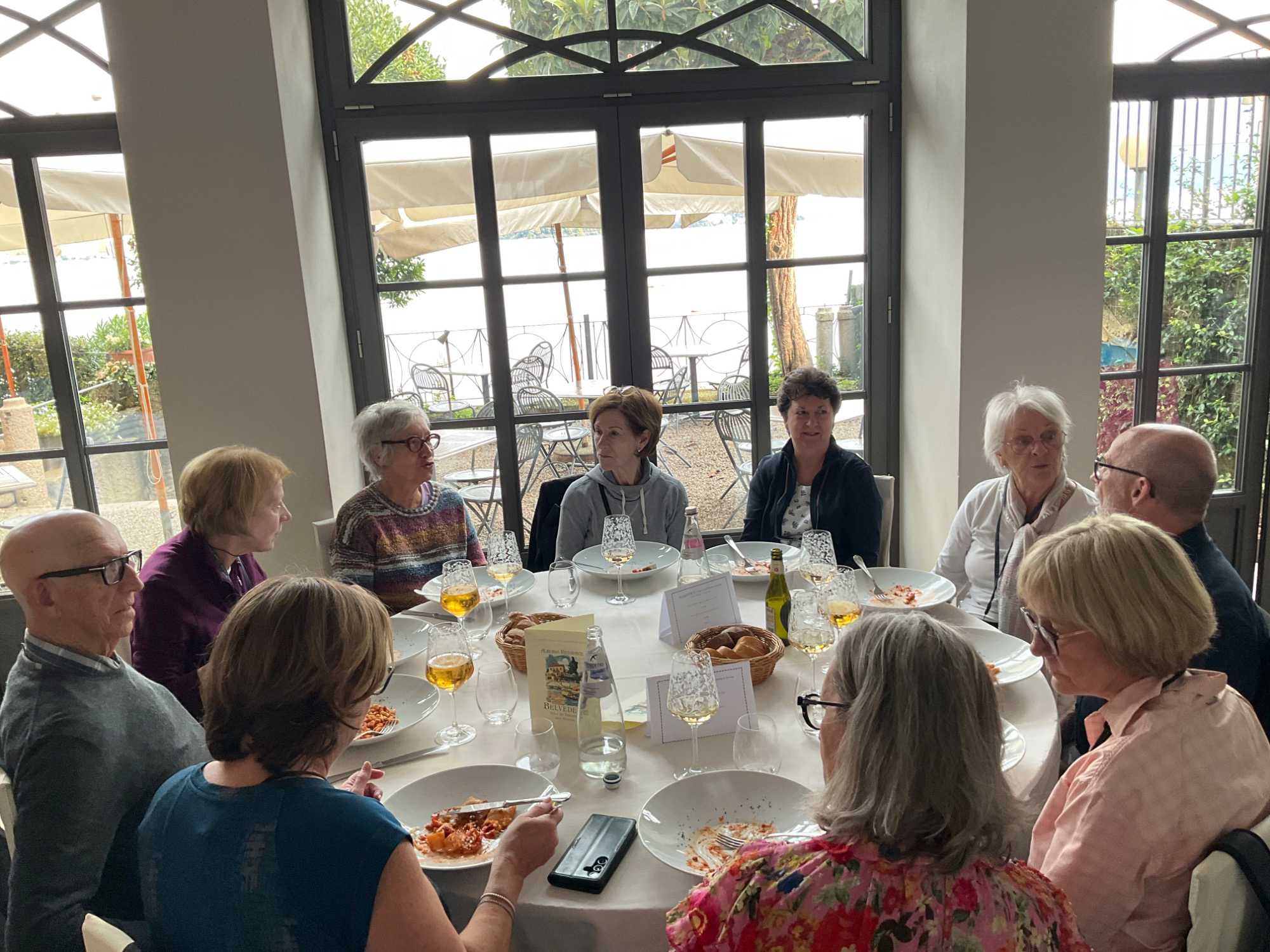 Nous, on a profité de ce bel endroit pour casser la croûte au restaurant Belvedere où notre vin nous était servi dans de magnifiques verres pour accompagner un succulent poisson. La vue sur le lac charmait nos voyageurs.