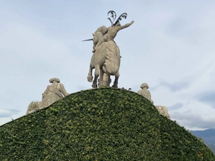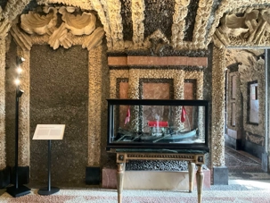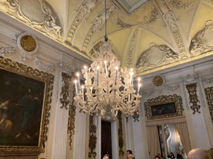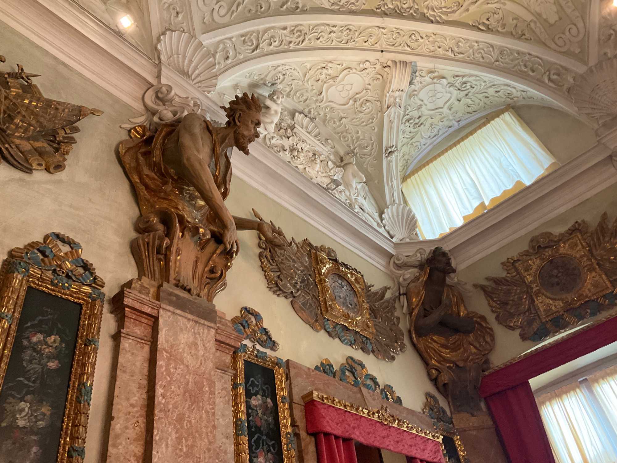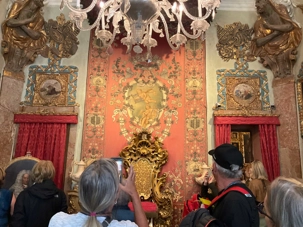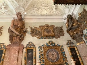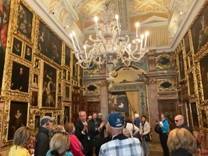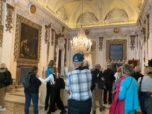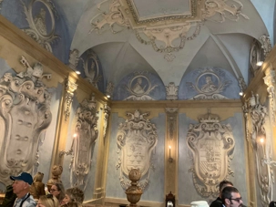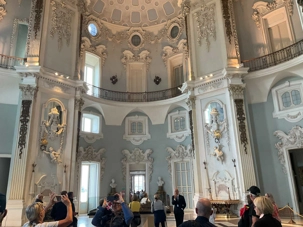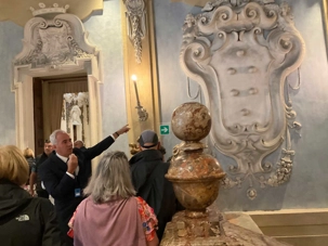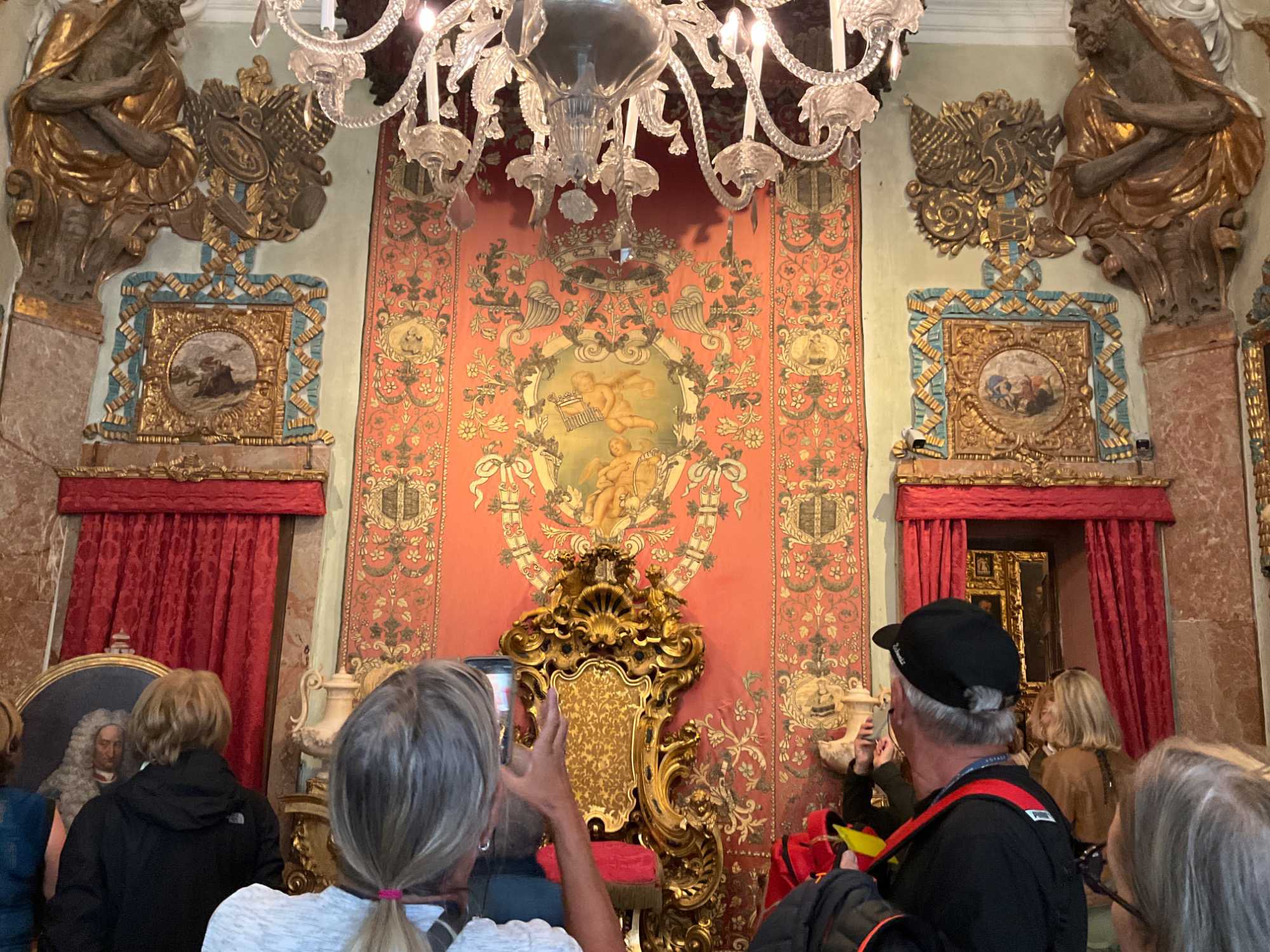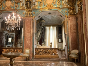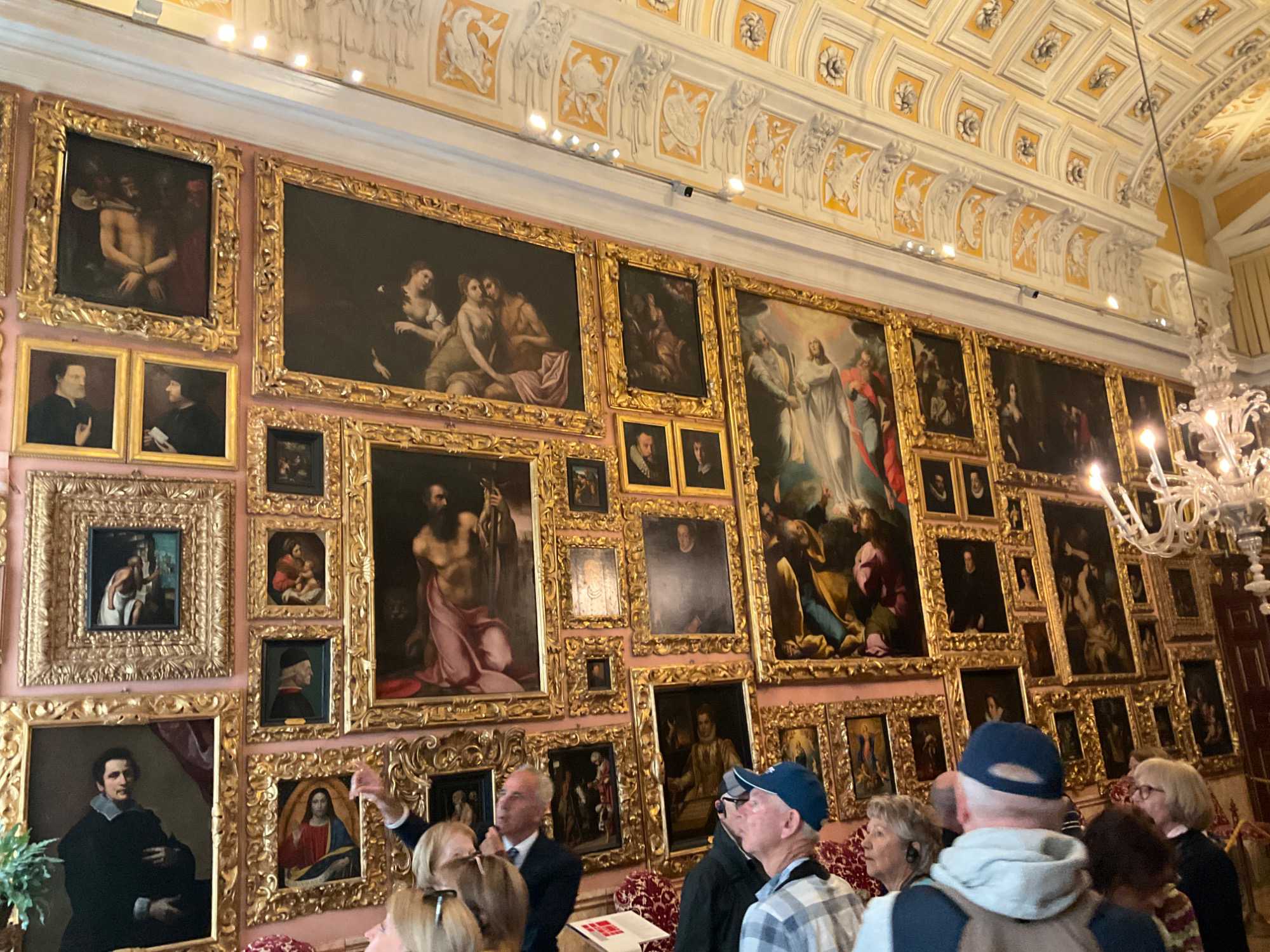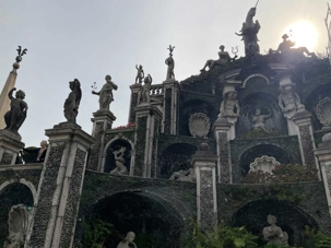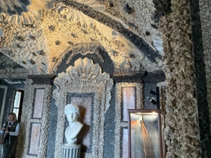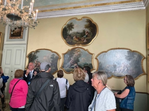 On débute par l’Île Bella située à seulement 400 mètres de Stresa et mesure …320 m de longueur sur 180 m de largeur. Nous avons droit à une visite guidée du château qu’on appelle ici "petit Versailles". Le guide du château est sympathique, bien informé et pince sans rire. L’île doit son nom à une femme bien sûr, celle du comte Carlo III de la Maison Borromeo, la bella Isabella (XVIIe siècle). Isola Bella était auparavant connue sous le nom d’isola inferiore ou isola di sotto (île inférieure ou île du bas) jusqu’en 1632. Comme sa voisine, on y trouvait un petit village de pêcheurs. Cette année-là, le comte Charles III Borromée (Carlo III Borromeo) commença la construction d’un palais baroque en l’honneur de sa femme Isabella d’Adda, la chanceuse! Les travaux, interrompus par une épidémie de peste, à chaque siècle sa pandémie, furent achevés par les fils de Charles vers 1652. On a visité de spacieuses salles ornées de belles peintures murales et de tableaux de maîtres, des dizaines et des dizaines de tableaux pour chacune des salles.On a vu des caves décorées de galets, la salle de Napoléon, les grottes et ses jardins avec la terrasse dites en amphithéâtre ou si vous préférez organisée sous une forme pyramidale en dix terrasses successives,37 m de hauteur, inaugurées en 1671.