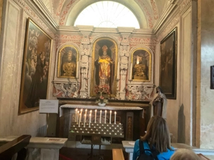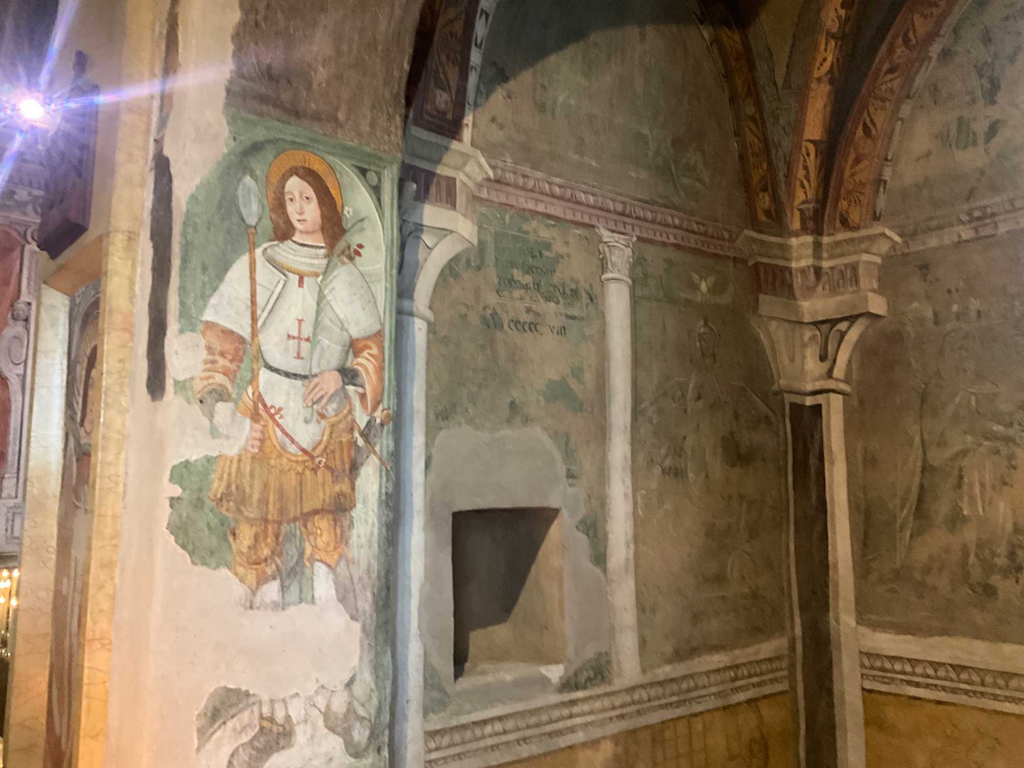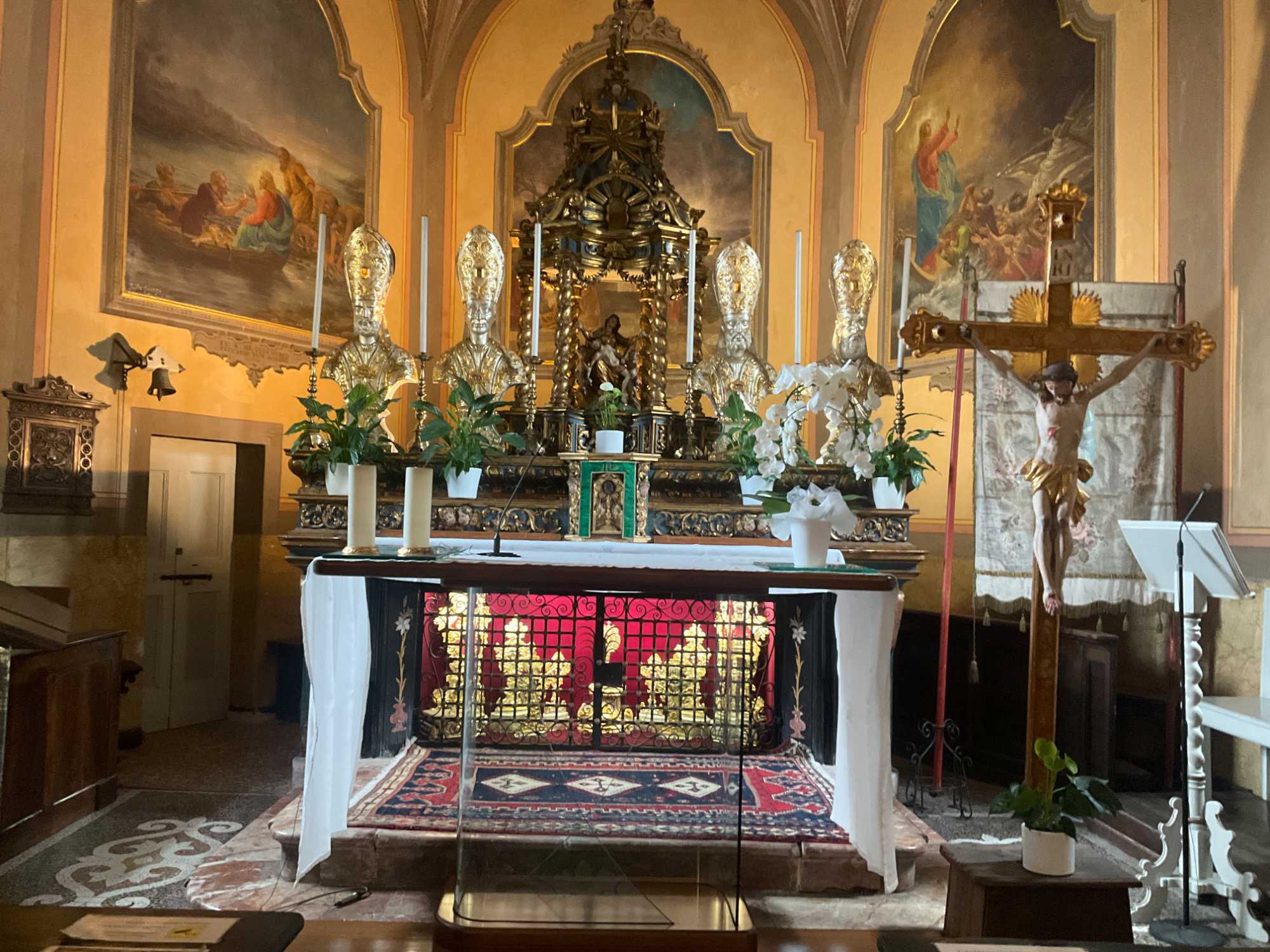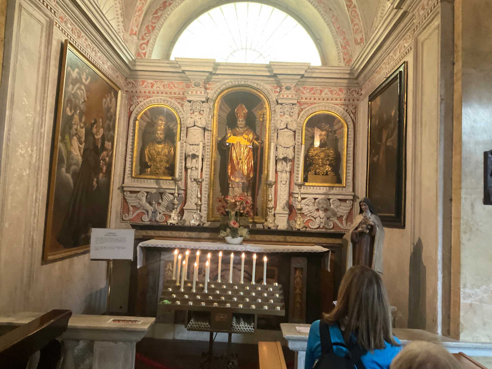 On reprend le bateau pour nous rendre…juste à côté à l'île des Pêcheurs, la plus petite, large de 100 mètres et longue de 350 mètres, de l’archipel, également connue sous le nom d'Île Supérieure, seule île de l'archipel des Borromées dans le Lac Majeur à être habitée de façon stable par …une cinquantaine d’habitants permanents, dont une vingtaine sont pêcheurs et les autres vivent du tourisme grâce aux deux hôtels ouverts de mars à octobre. Elle est la seule des trois îles Borromées à ne jamais avoir appartenu à la famille Borromeo, évidemment, on imagine mal ces derniers risquant leur vie dans des bateaux de misère à tirer la ligne! Dans l'église, on a trouvé des illustrations sur l'histoire de l'île, ainsi que des bustes des saints patrons des pêcheurs. Habitée depuis au moins 700 ans, le petit village nous a enchantés avec ses maisons typiques à plusieurs étages caractéristiques, avec de longs balcons qui servaient à sécher le poisson, ses ruelles étroites caractéristiques, ses nombreux petits magasins d'artisanat local et, sa paroisse dédiée à saint Victor. Dès le XIe siècle, l'église de San Vittore, au sud de l'île, fut construite.
