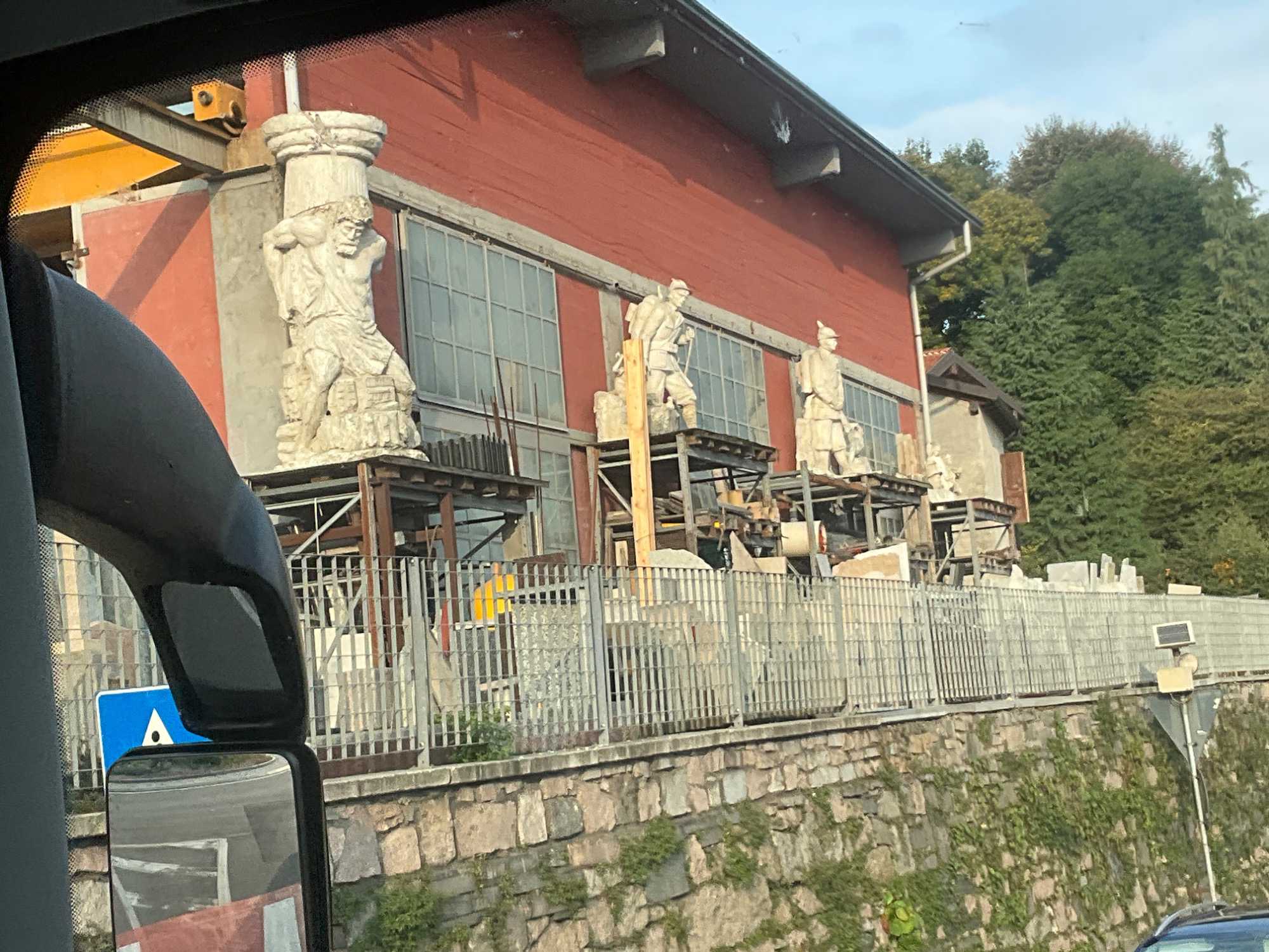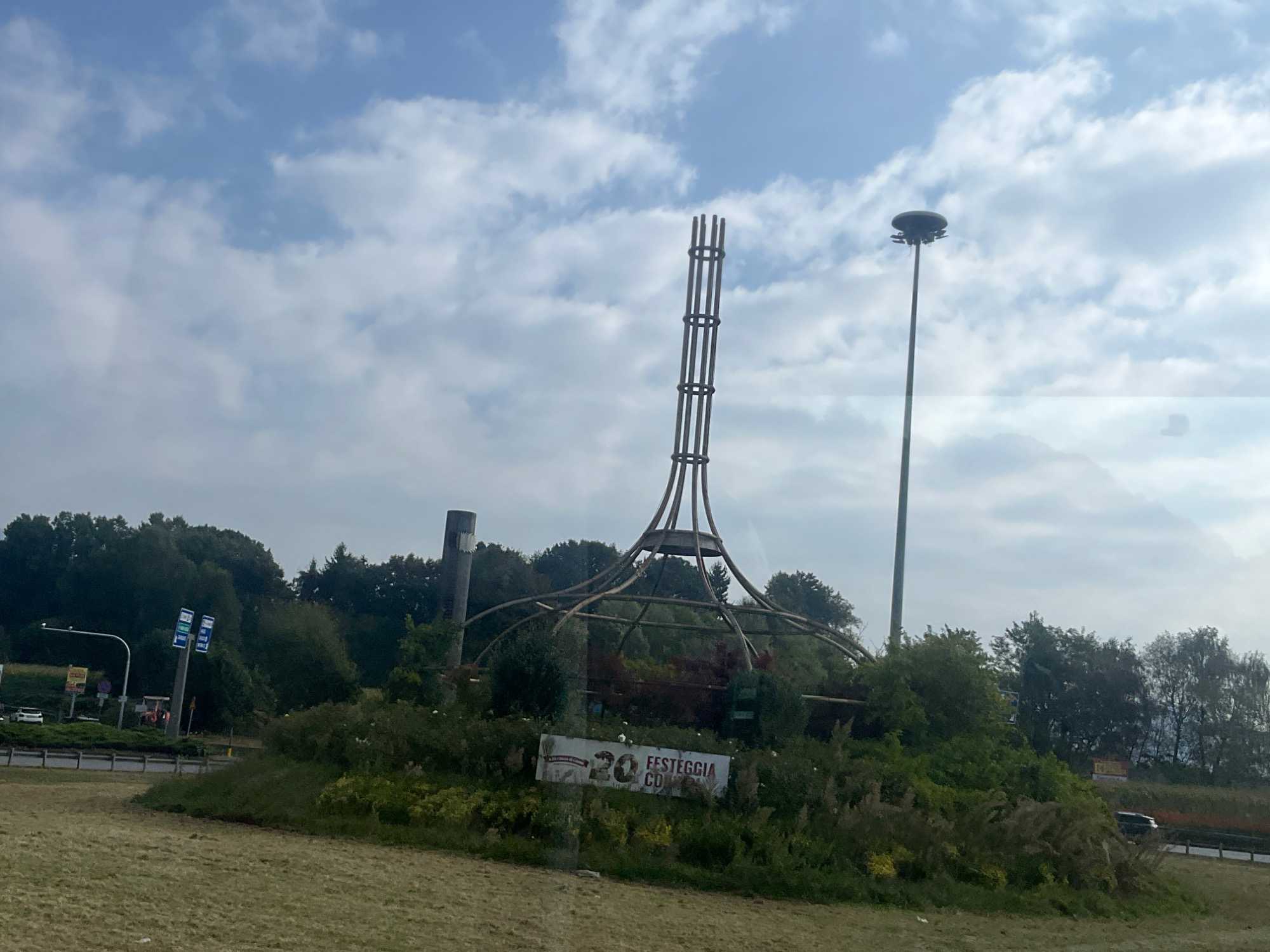 À droite de l’autoroute, alors qu’on vient de changer de régions et qu’on se retrouve en Lombardie, on croise un grand bâtiment dans lequel on procède à la construction d’un grand nombre d’hélicoptères militaires. Ils sont distribués partout dans le monde. Jadis cette compagnie portait le nom de Agusta.