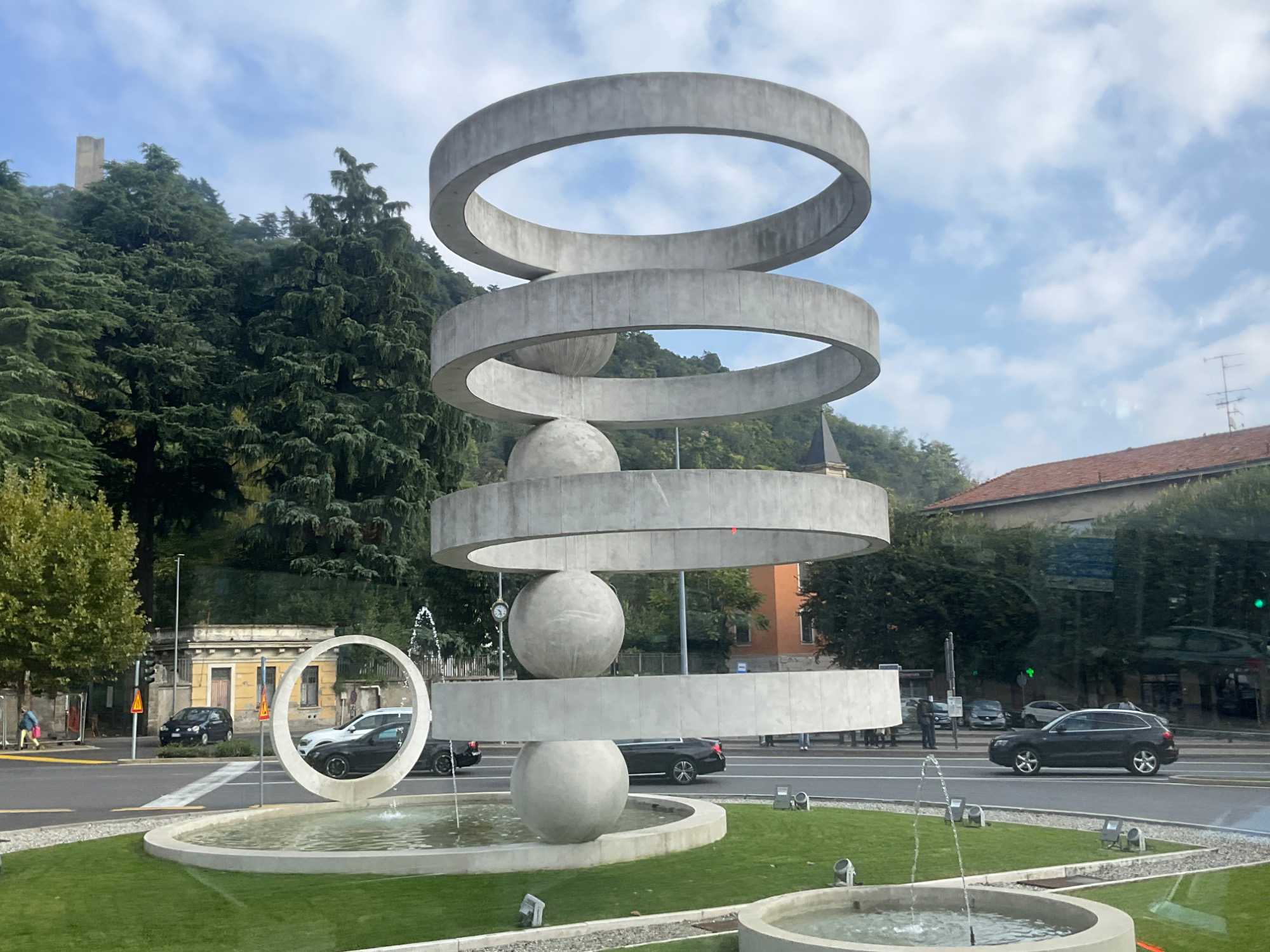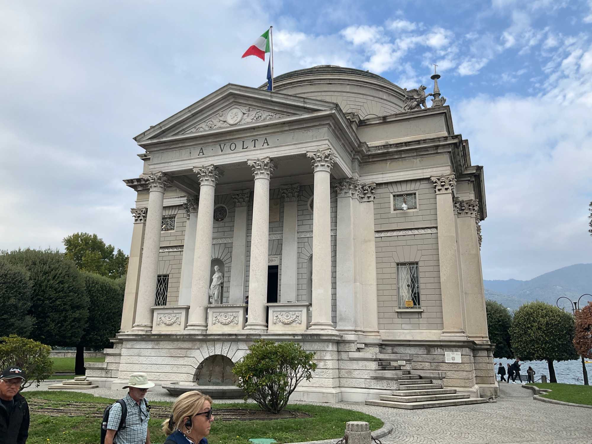 J’allais oublié, nos guides nous ont également parlé de Volta dont un monument de la ville italienne de Côme a dédié à Alessandro Volta en 1928. Alessandro Volta, physicien connu pour l'invention de la pile électrique, est né et mort à Côme. En entrant dans la ville on avait également aperçu le château Baradello, un château médiéval surplombant la ville, c’est tout ce qui reste de la forteresse construite par Frédéric Barberousse en 1158.
