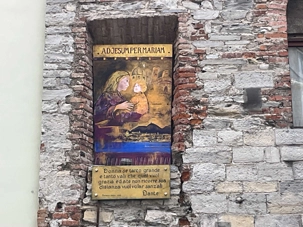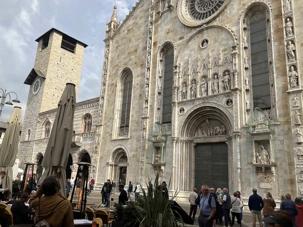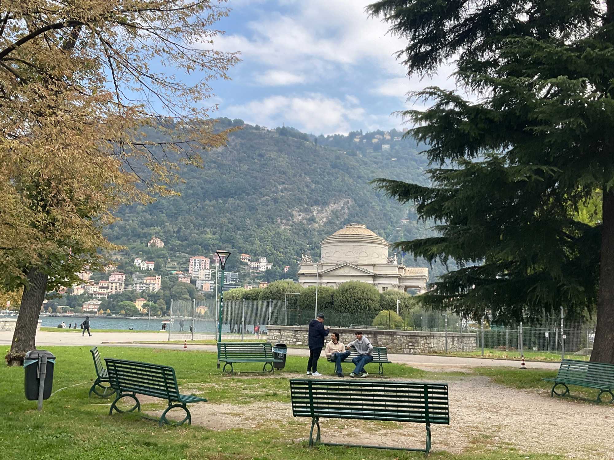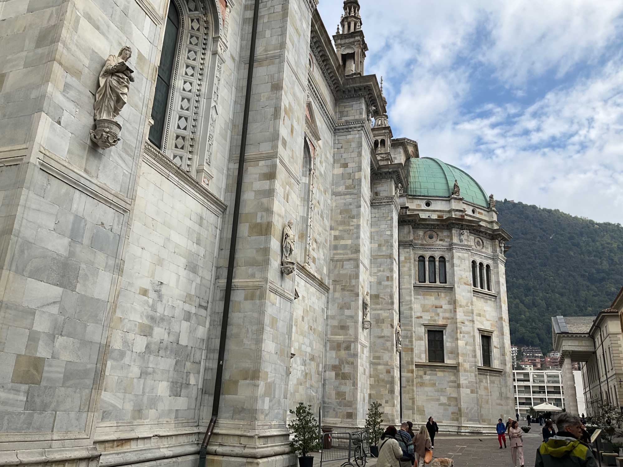 Les points de vue sur le lac et les montagnes nous donnaient des idées de toile…j’aurais voulu être un artiste… comme le chantait Claude Dubois! Ses paysages et son patrimoine artistiques garantissent toujours son importance culturelle. Tous ces éléments ont rendu notre petite balade à pied agréable, à notre rythme. Un fait étrange pour nous lorsqu’on apprend que l'économie de Côme, jusqu'à la fin des années 1980, a été traditionnellement fondée sur l'industrie et en particulier, la ville est mondialement célèbre pour ses fabricants de soie. Mais la concurrence chinoise dans ce domaine a fait fondre ces industries comme neige au soleil.