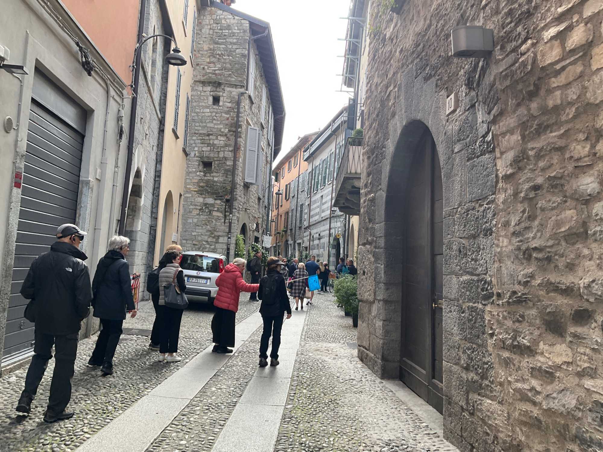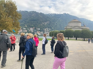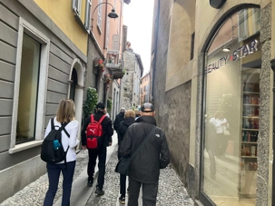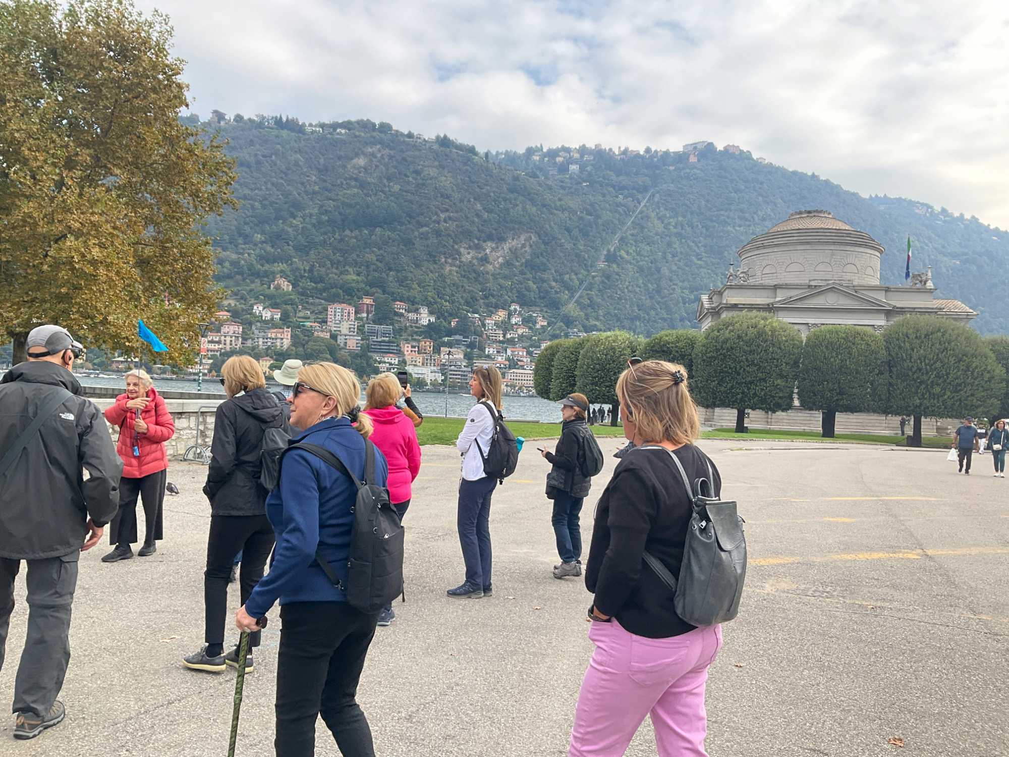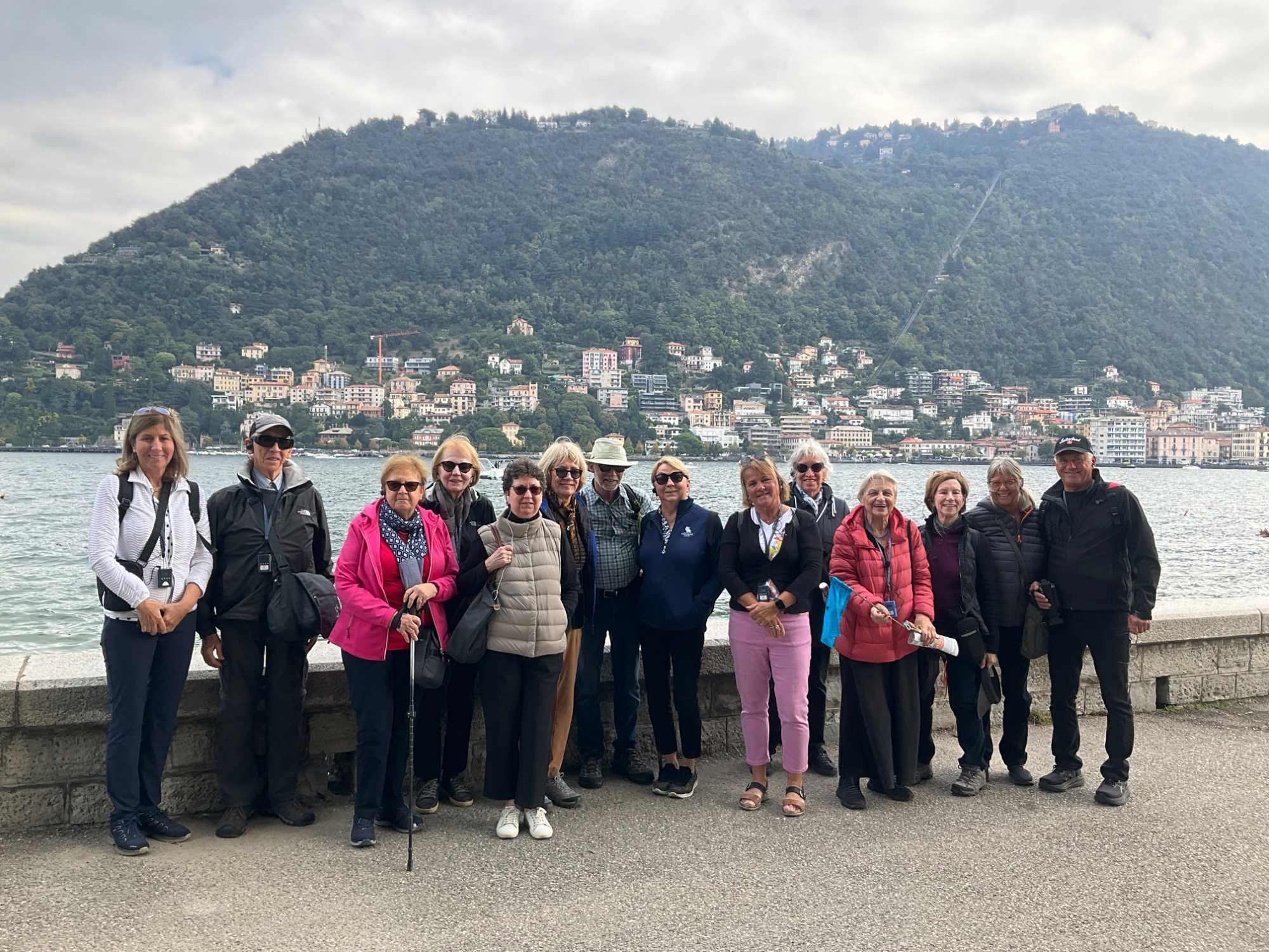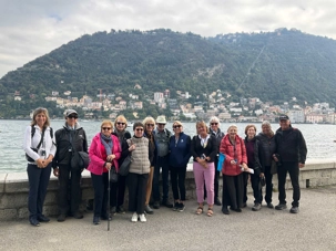Oui je sais, en mentionnant lac de Come, vous avez immédiatement penser à Alain Morisod et Sweet Peolple, ce suisse a chanté le « fameux lac de Côme » mais il semble que le groupe ne soit pas le seul à avoir profité de cette destination très prisée dans le monde entier grâce à son paysage surprenant et fascinant aux mille nuances. Nous aussi on a remarqué ses collines rocheuses ou enneigées, ses édifices en pierre perchés entre le lac et les montagnes. Nos voyageurs étaient divisés en deux groupes menés par des guides locaux disons….d’expérience. Pour être plus précise, ces dames mentionnent que le lac est situé entre la plaine du Pô et les Alpes, à 197 m d’altitude et il offre une géométrie en forme de « Y » renversé ou, selon un dicton local très répandu, si vous regardez bien sur une carte, le lac de Côme aurait la forme de la jambe droite d'un homme et, à Lecco sa jambe gauche à Côme, se rejoignant à Bellagio; le nom de cette ville balnéaire vous dit quelque chose? Et oui, l’hôtel Bellagio à Las Vegas avec ses gondoles « intérieures » l’un des complexes les plus prestigieux. La ville américaine, « « la ville du péché’’, s’est inspirée du style des maisons et du paysage de ce lac.