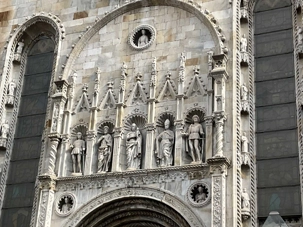 Le dynamisme de son centre-ville recèle de jolies rues et de monuments historiques dont la magnifique cathédrale Santa Maria Assunta qui fait la fierté de la ville. Elle fut la dernière cathédrale gothique construite en Italie, en 1396, sur le site d’une église romane, dix ans après la fondation de la cathédrale de Milan. Les travaux de construction ont été achevés en 1740, avec l'élévation de la coupole. On a aimé cette cathédrale dotée d’une rosace caractéristique, un portail avec deux statues et un dôme construit dans le style rococo. À l'intérieur sont conservées de magnifiques tapisseries des XVIe et XVIIe siècles, réalisées à Ferrare, Florence, Anvers et des peintures du XVIe siècle de Bernardino Luini et Gaudenzio Ferrari (non pas les voitures de luxe hihi!).