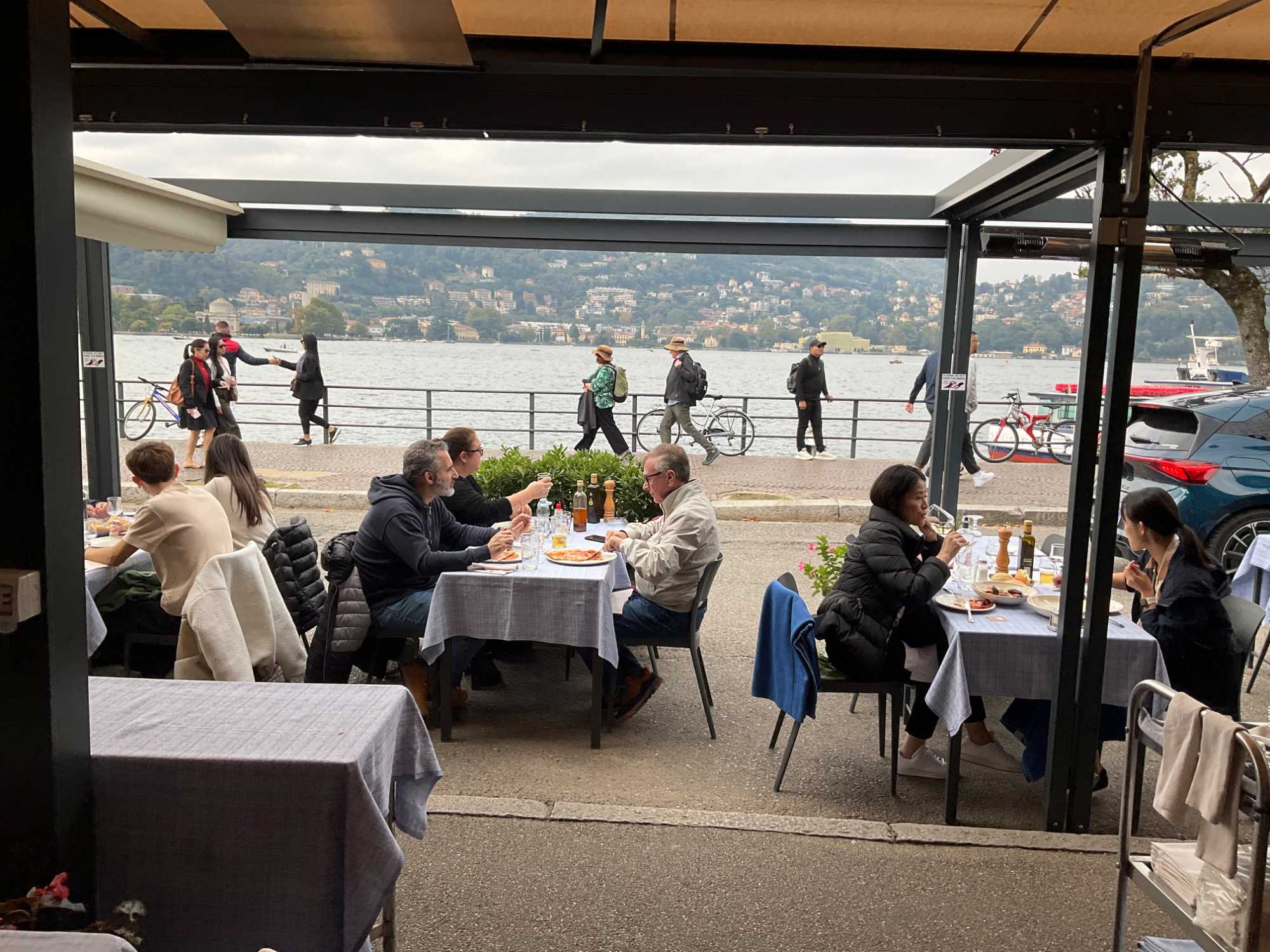 Ici débute notre chronique ‘’people’’. À Moltrasio, sur « la jambe ouest » du lac où nous circulons, le Premier ministre britannique Winston Churchill, toujours accompagné de son fameux cigare, y aurait séjourné. Se dirigeant vers l’est, Laglio, est devenue une ville connue pour la résidence de l'acteur George Clooney, et à Dongo, juste situé à une jonction, l’histoire du fascisme a été écrite avec la capture de Benito Mussolini. Mais peu importe du « côté de la jambe » que l’on prend, ses rives sont le lieu de villégiature par excellence des aristocrates, artistes et écrivains, depuis les Romains jusqu'à d’autres grands de ce monde du XXIe siècle, en passant par les romantiques Virgile, Stendhal, Verdi, Franz Liszt, et… Brad Pitt mais l’histoire ne dit pas s’il était accompagné de madame Joli…ou une autre demoiselle hihi! Même notre Fernand Gignac national a chanté ce Lac de Côme. Et oui, nous aussi on a trouvé les lieux romantiques, avec ses villas cossues qui entourent le lac. Ici sortez les mouchoirs. Fin de la chronique ‘’people ou potins ou, si vous préférez ‘’7 Jours’’.