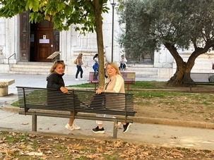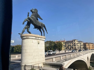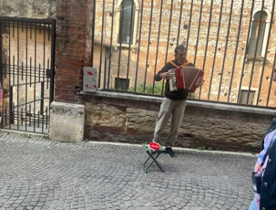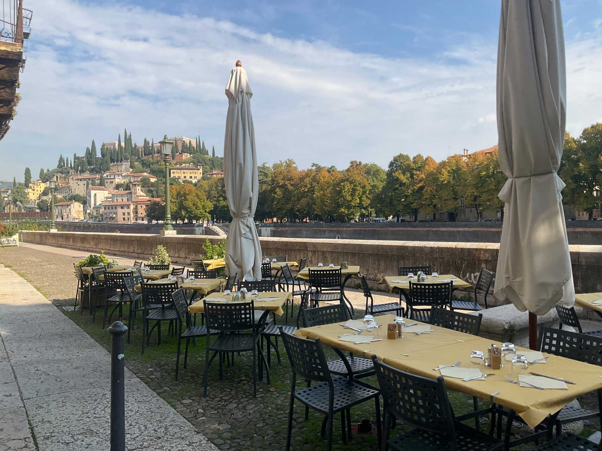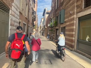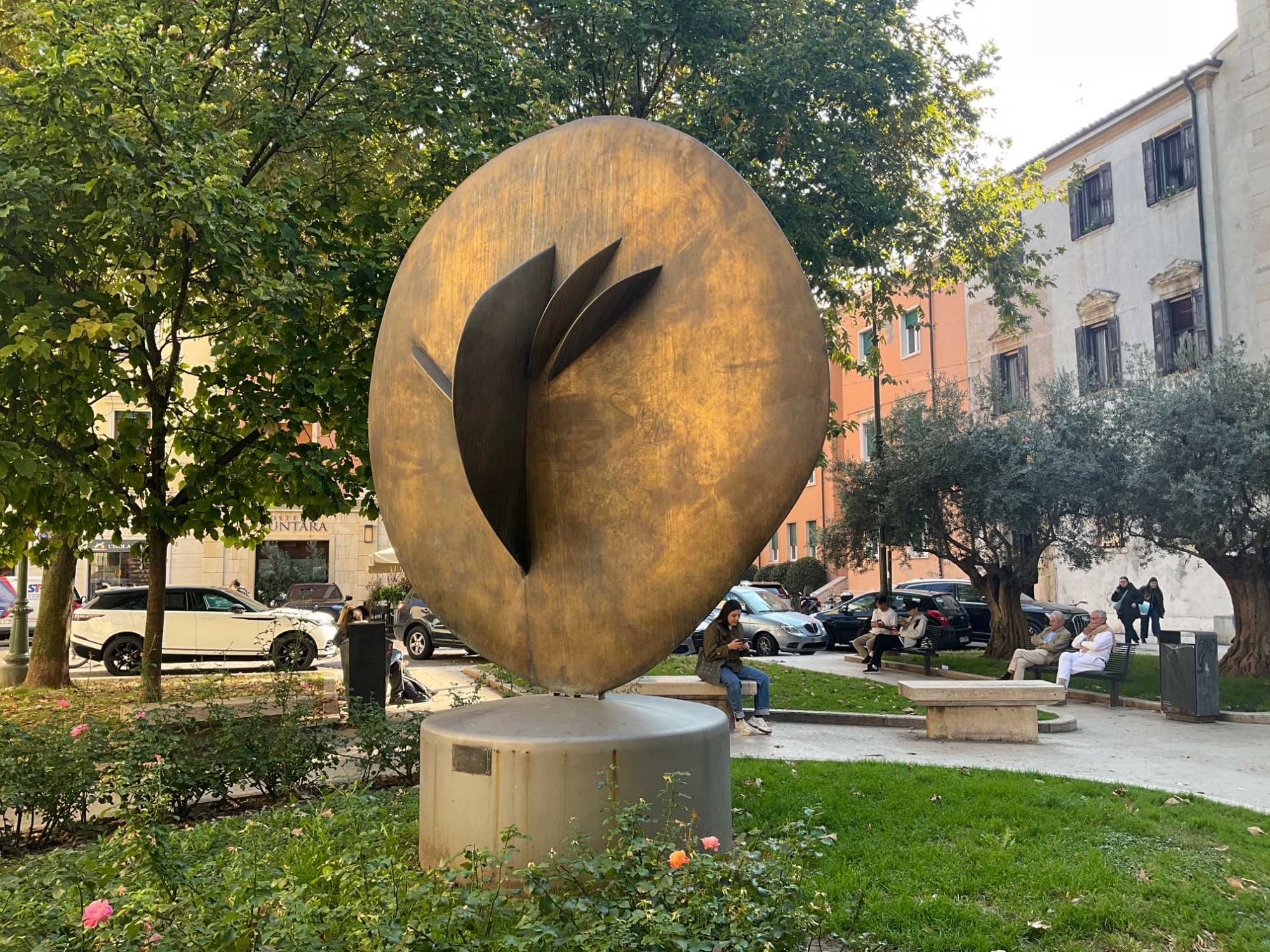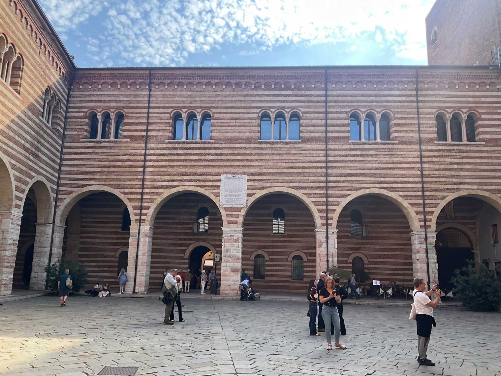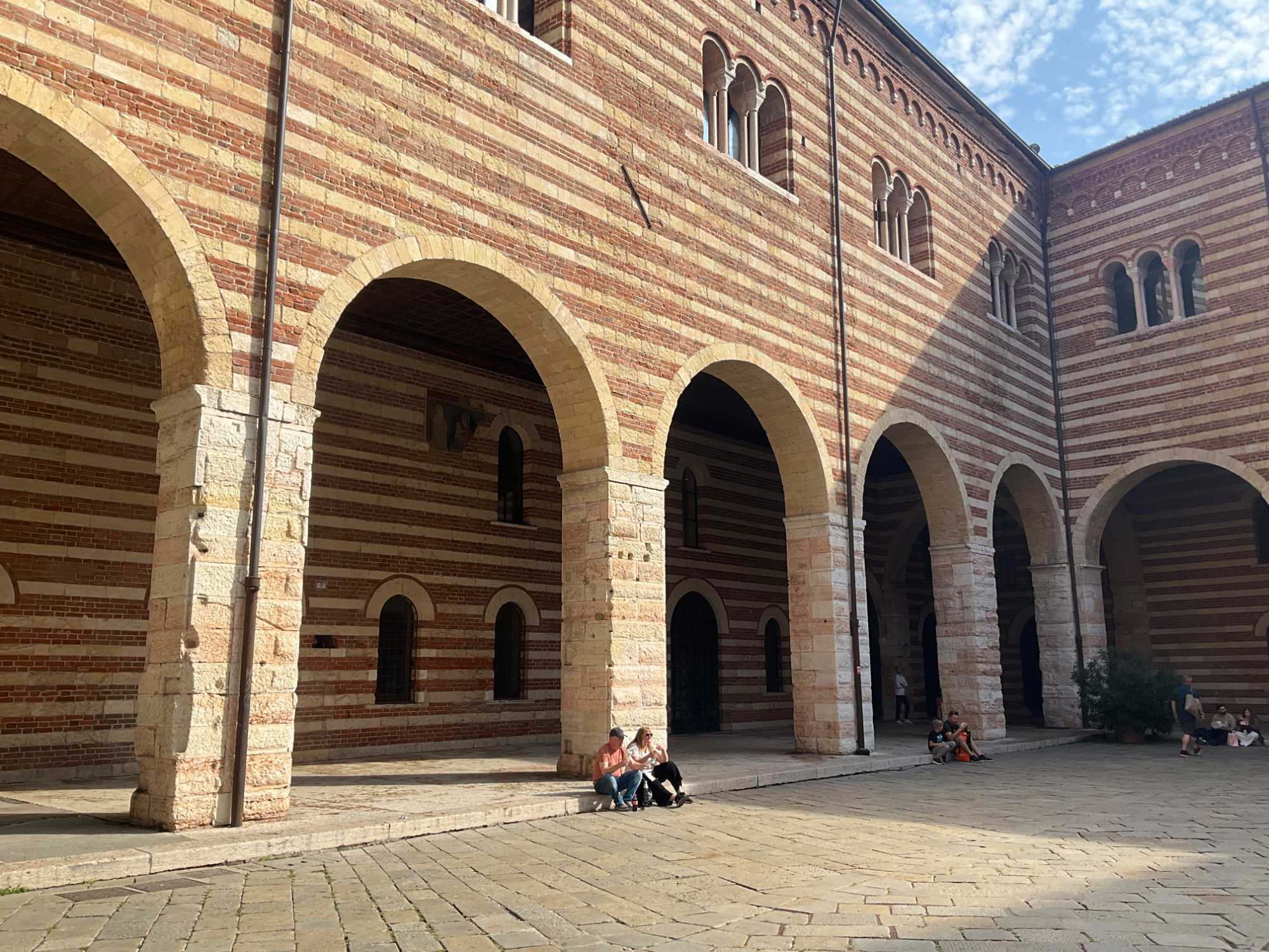 En poursuivant notre marche éducative, on distingue rapidement une structure nous rappelant le Colisée de Rome…de format légèrement plus petit: L'Arena, ou les arènes, de Verona, là en plein centre-ville. Cet amphithéâtre romain conservé intact depuis le 1er siècle avant JC, on y célèbre chaque année l'opéra universel : Puccini, Verdi, Rossini, Mascagni et bien d'autres grands compositeurs italiens dans le cadre du Festival de Vérone. Il y a quelques jours, le 30 septembre dernier, les arènes ont vibrés au son des plus grandes voix de l’opéra mondial à l’occasion d’un concert hommage exceptionnel célébrant les 90 ans de la naissance de Luciano Pavarotti décédé en 2007. Quelle ambiance cela devait être dans ce décor exceptionnel. Construites à une hauteur de 32 mètres, considéré comme le troisième amphithéâtre romain par ses dimensions (après Colisée de Rome et l’amphithéâtre de Capoue), il pouvait accueillir environ 30 000 spectateurs et est sûrement l'un des mieux conservés. Encore aujourd’hui, presque tous les soirs de avril à octobre environ, des spectacles ont lieu et ont pour thème les anciens combats de gladiateurs et, chaque année se déroulent les Wind Music Awards, un spectacle musical rediffusé en direct à la télévision avec des chanteurs italiens contemporains. L’arène se mettra « sur son 36 » pour accueillir la cérémonie de clôture des Jeux olympiques d'hiver et la cérémonie d'ouverture des Jeux paralympiques d'hiver de Milan-Cortina d'Ampezzo 2026. Vous penserez à nous lors de cet événement, nous, on sera fixé sur nos écrans en pensant « on était là »! Juste à côté, la Piazza Brà, la grande place de Vérone, réunit bon nombre de véronais et en fin de journée nous avons pu nous reposer dans ses jardins à l'italienne avec sa fontaine rafraîchissante et délicate.