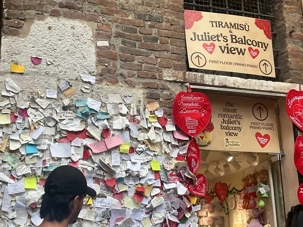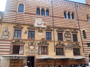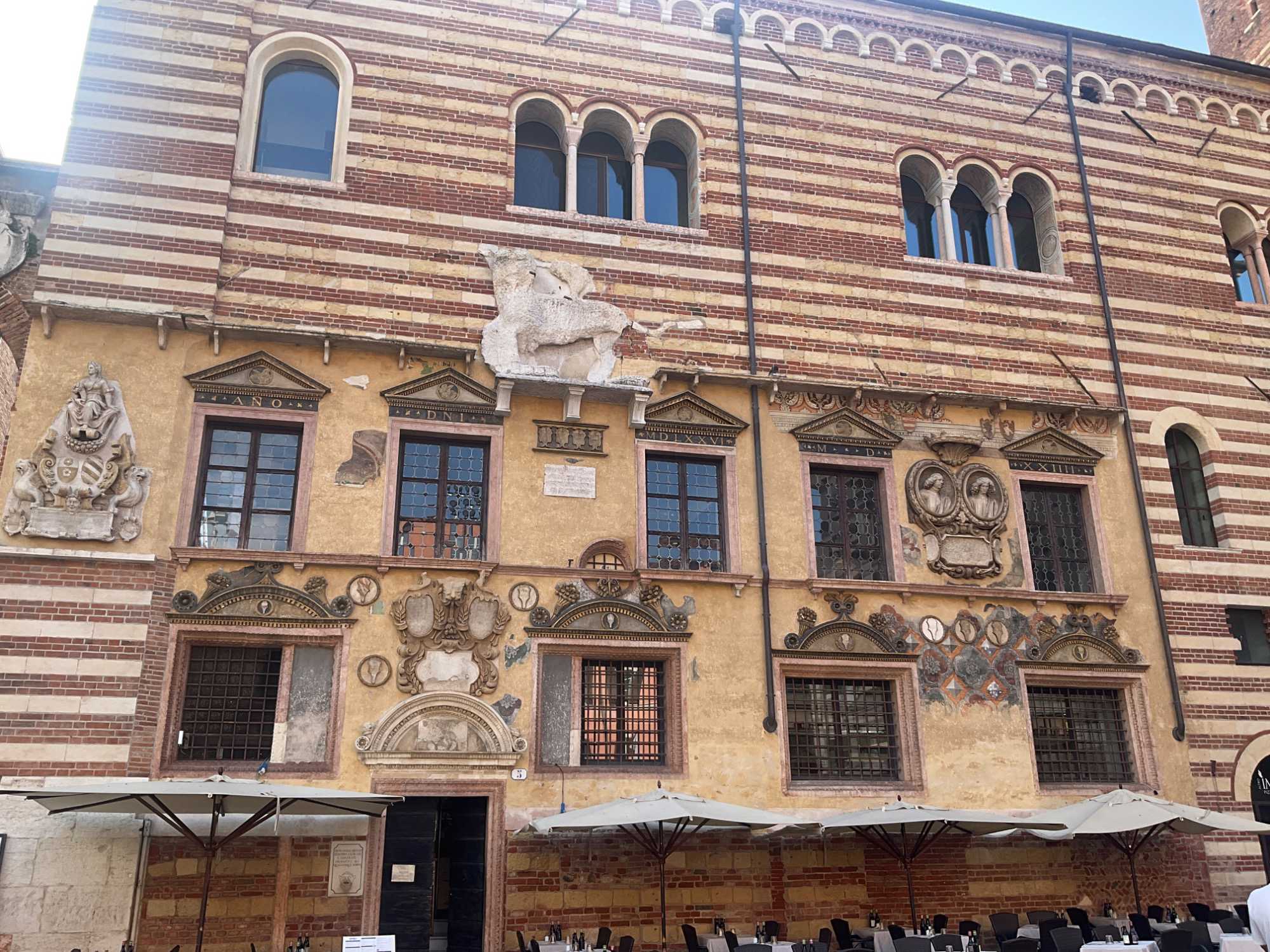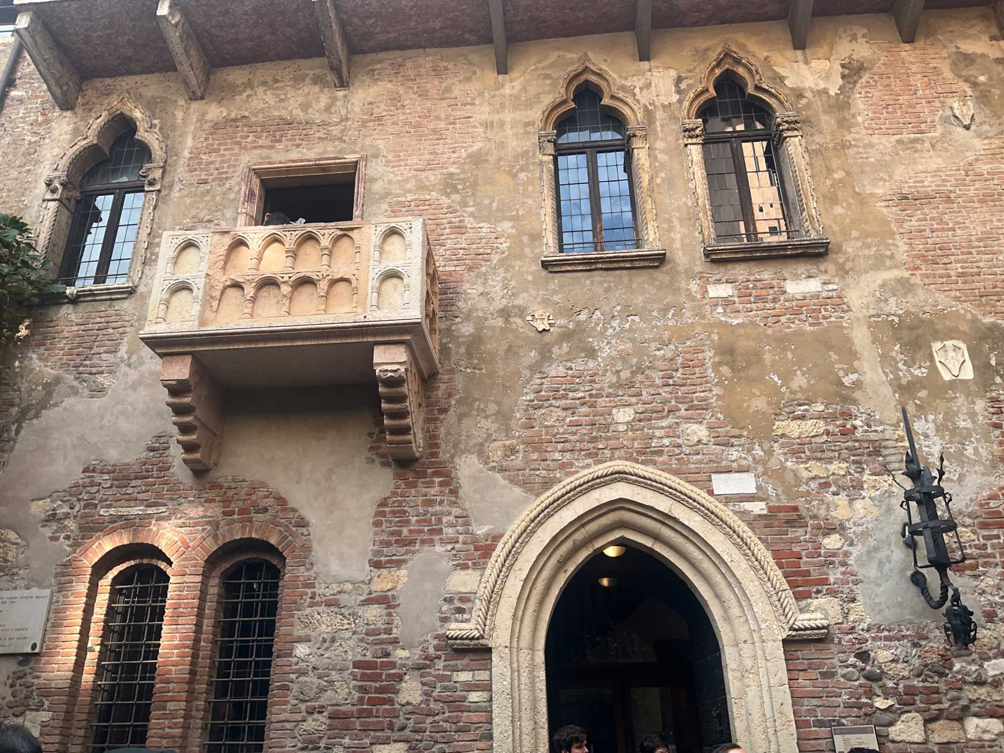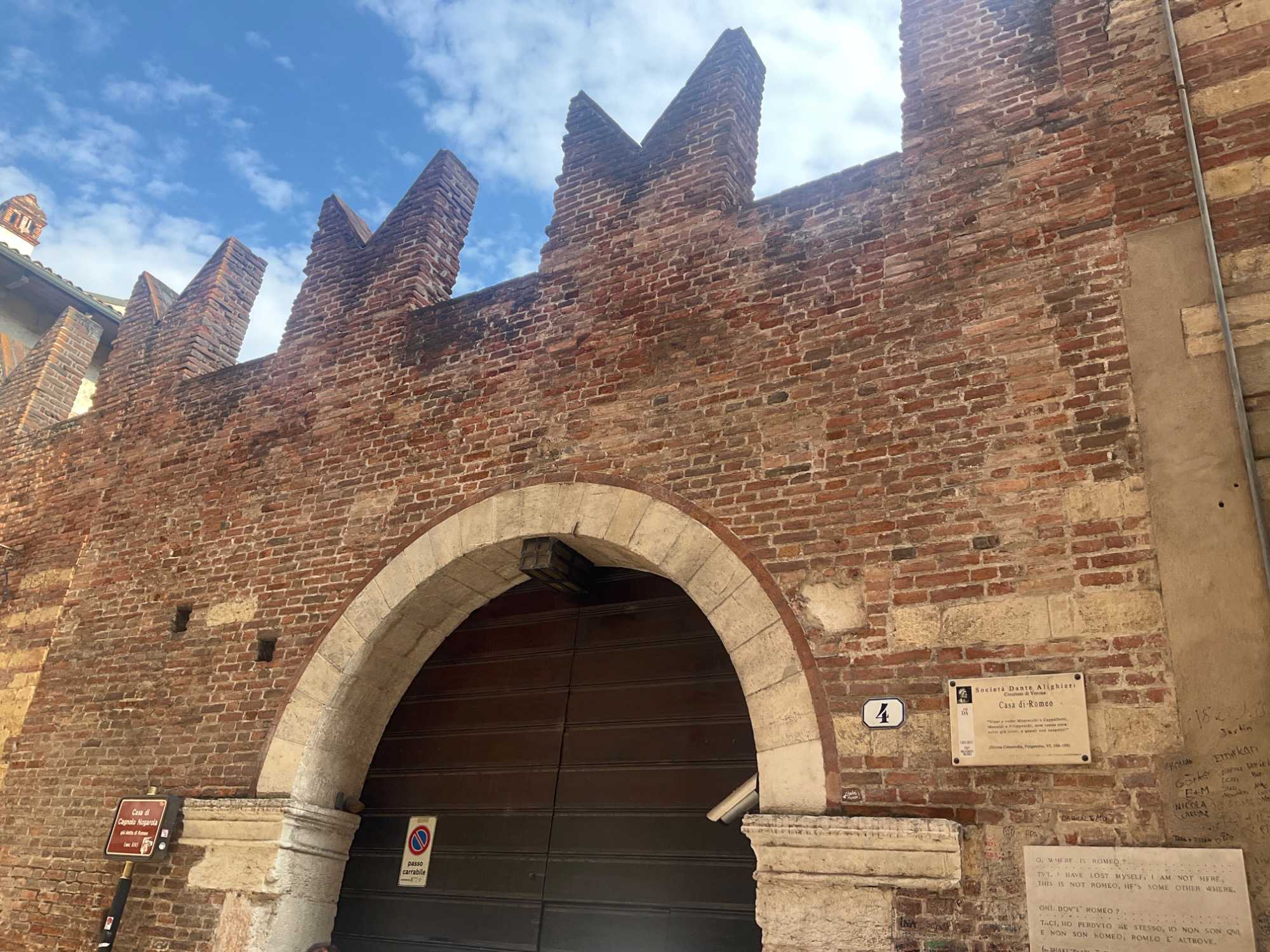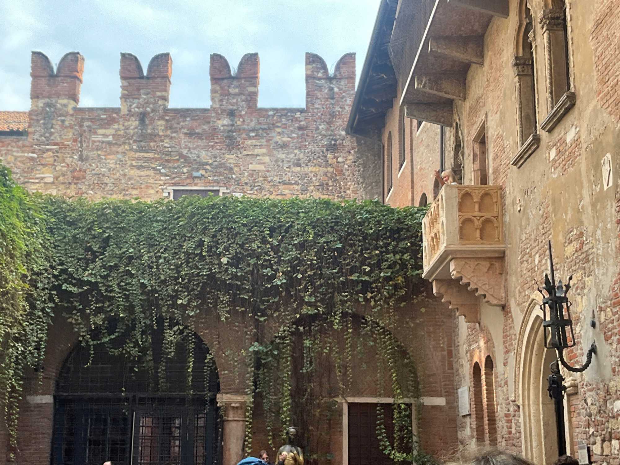 Et comme la ville de Vérone, reconnue comme la ville des amants de Shakespeare, la ville de l’amour, on vous a rassemblé les sites romantiques pour la fin. Et oui, arrive le moment que vous attendiez tous, comme nous d’ailleurs, le balcon de Juliette appelé ici la Casa (maison) di Giuletta. Cette ville romantique par excellence, tant aimée du grand poète William Shakespeare, en a fait le scénario de la célèbre tragédie théâtrale Roméo et Juliette écrite en …1596. Si vous êtes amoureux de l'amour, c'est la ville qui vous ressemble. Ça devrait être la destination obligatoire pour tous les « voyages de noces ». La maison de Juliette constitue un musée de 1905 dans un logis seigneurial du XIIe siècle appartenant à la famille de la noblesse italienne Dal Cappello (Capulet). Le blason est sculpté sur la clé de voûte de l'arc interne de la cour. C’est dans cette demeure que les amants se seraient promis un amour éternel. Un fait important à noter…Shakespeare n'a jamais mis les pieds à Vérone, et sa pièce est purement fictionnelle.