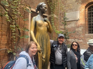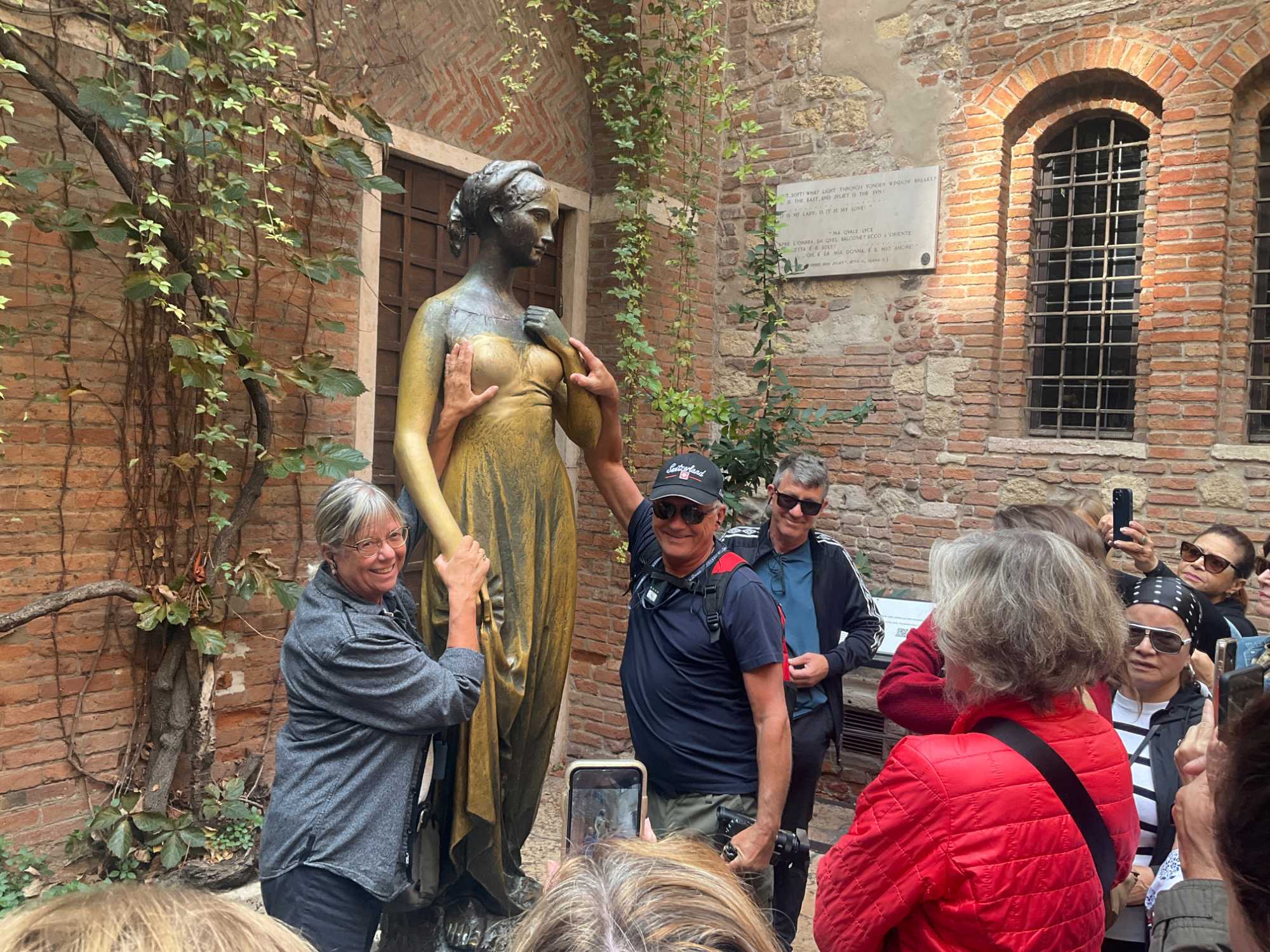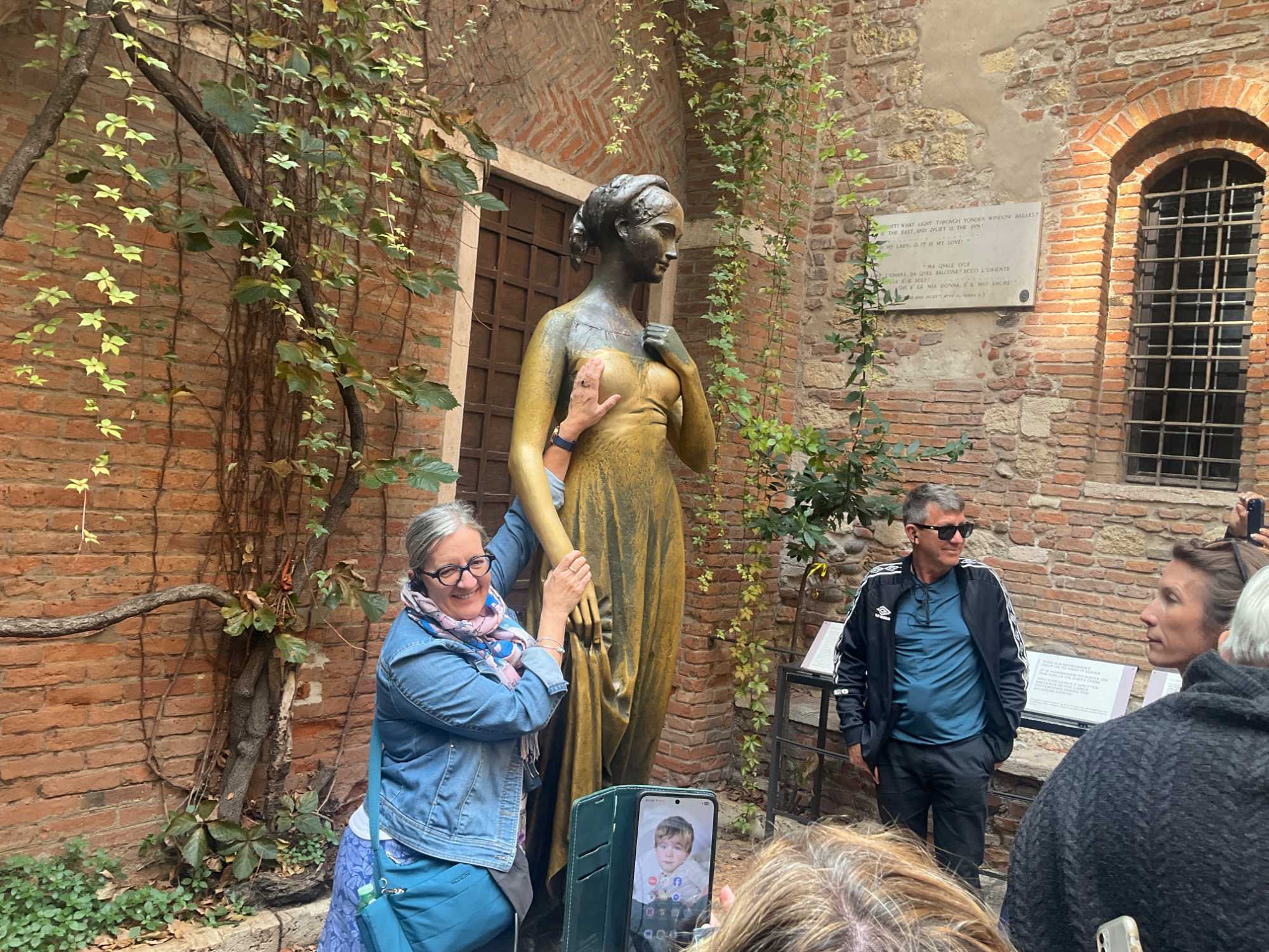 Hier soir au souper, on a glissé un mot et chanté pour les 33 années d’amour de Johanne et Daniel, on leur en souhaite 33 autres. C’est sûrement la raison pour laquelle ils ont touché le sein de la statue de Juliette…espérant poursuivre ce grand élan d’amour!