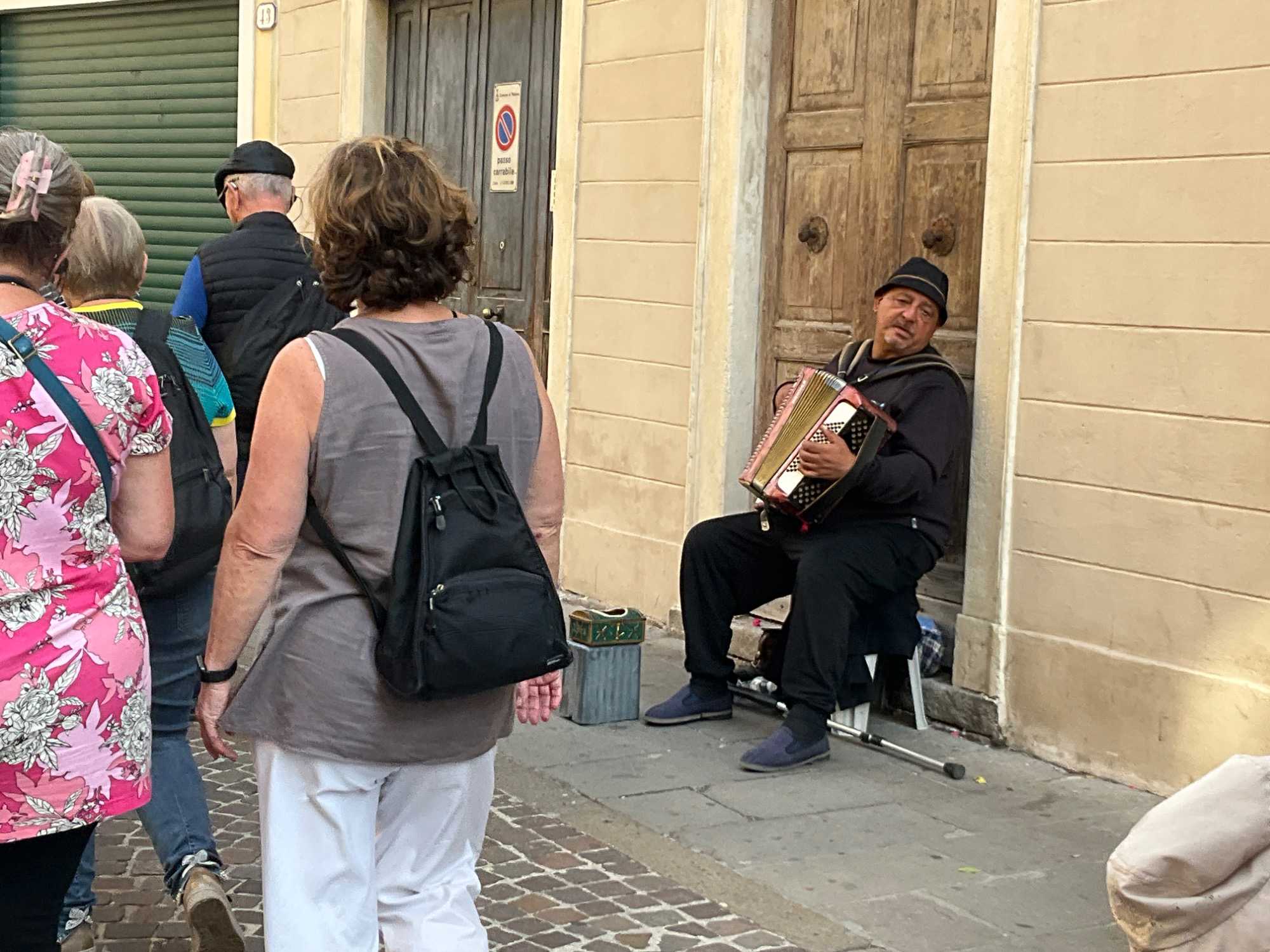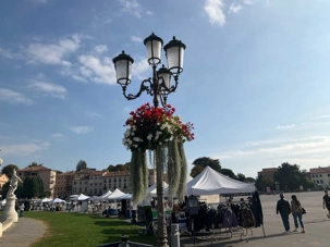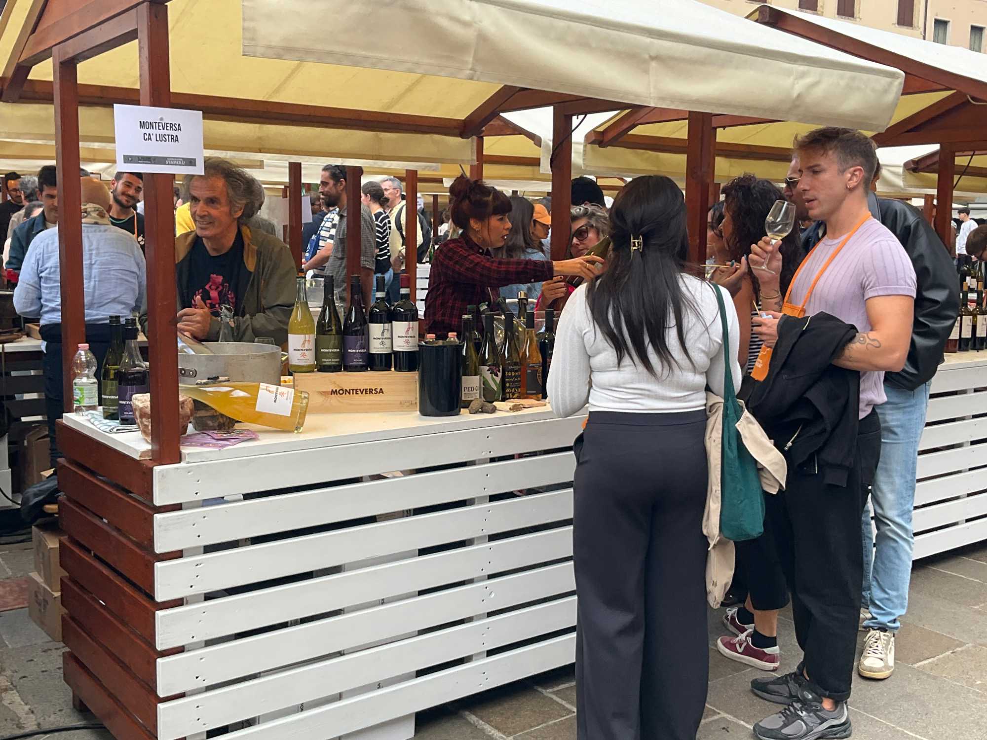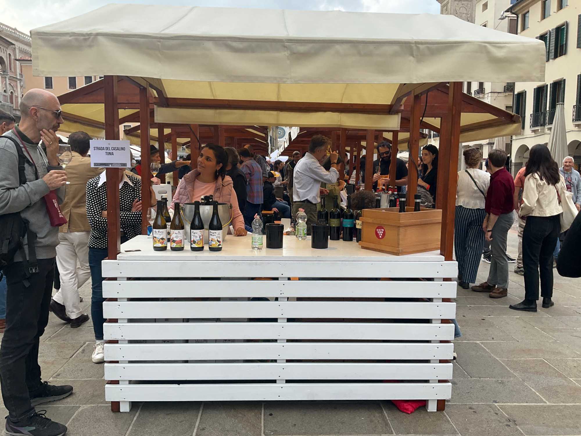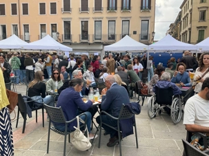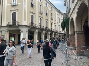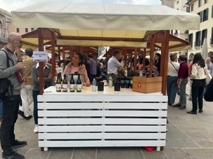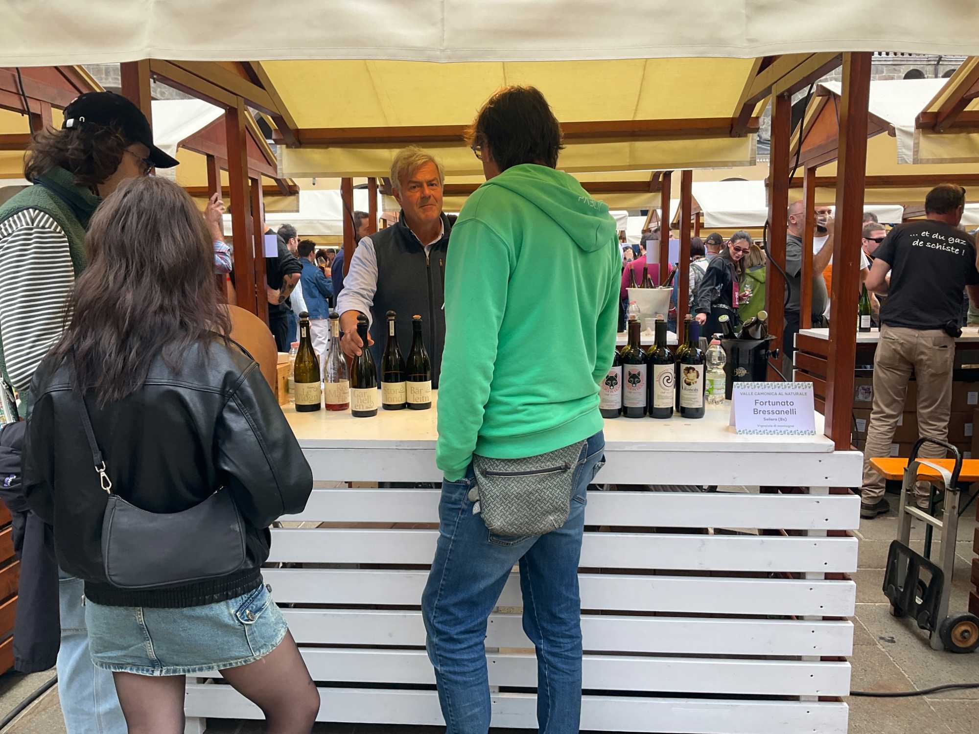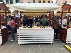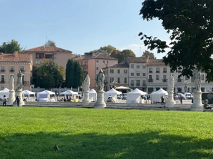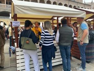 Aujourd’hui on a découvert la foire du vin sur la Piazza delle Erbe. Toutes générations confondues, les habitants fêtaient en dégustant les vins locaux que les producteurs présentaient. Au moins une cinquantaine de kiosques installés dehors invitaient tous et chacun à déguster leur production. Le temps était à la fête, quelle belle façon de découvrir une ville, en se mêlant aux gens de l’endroit.