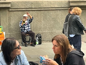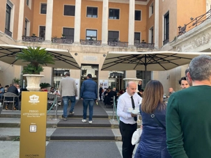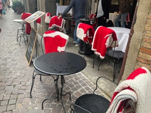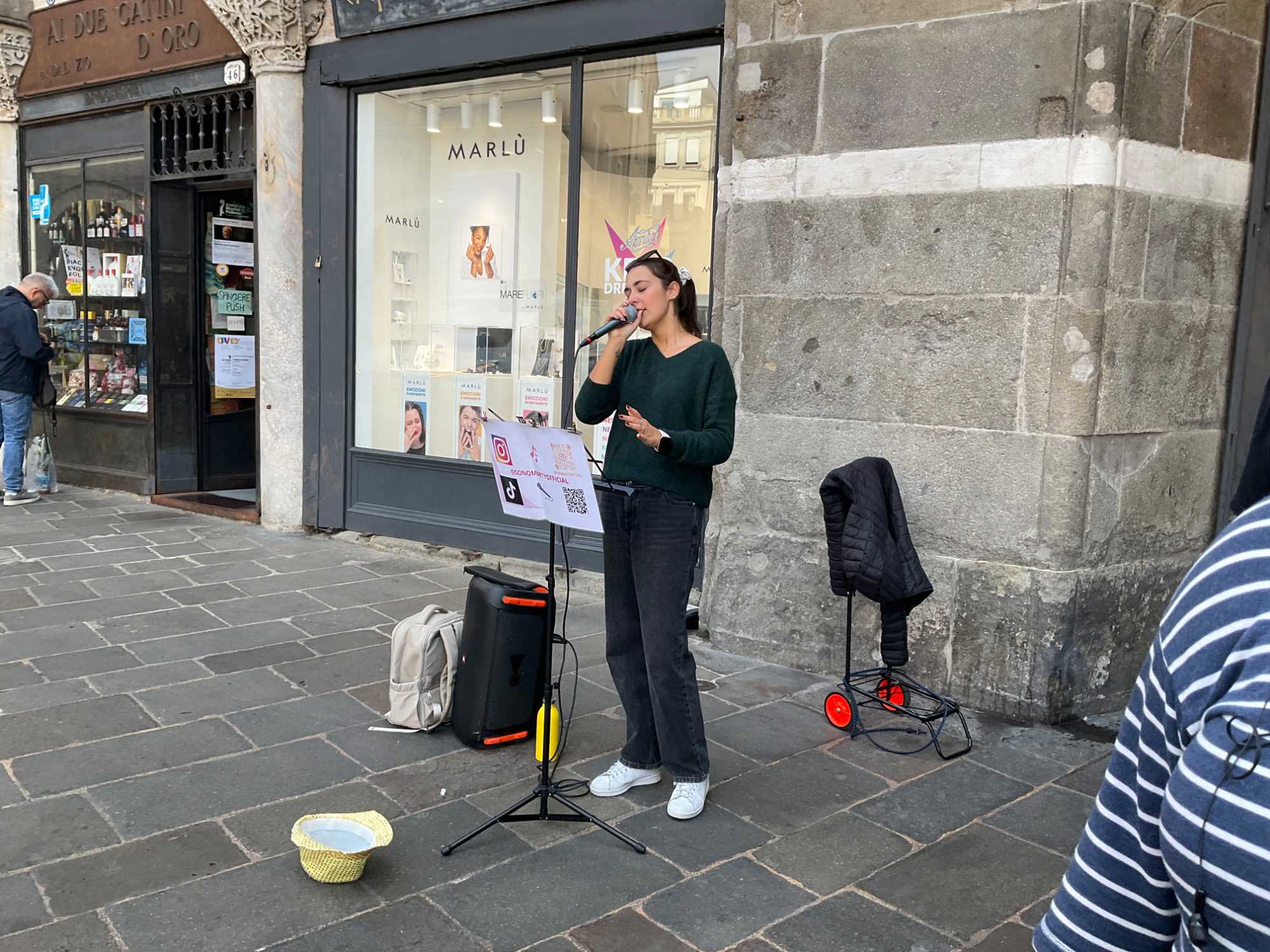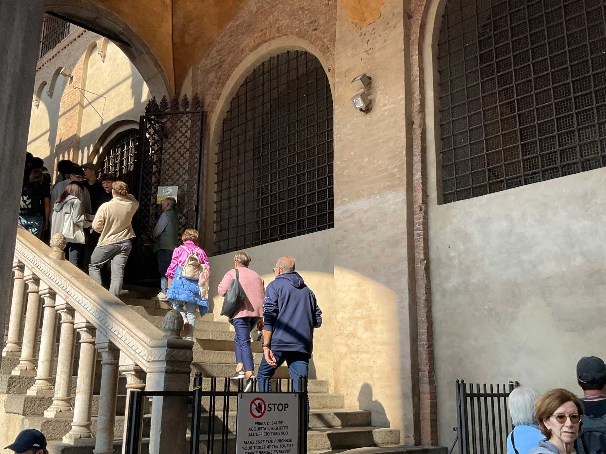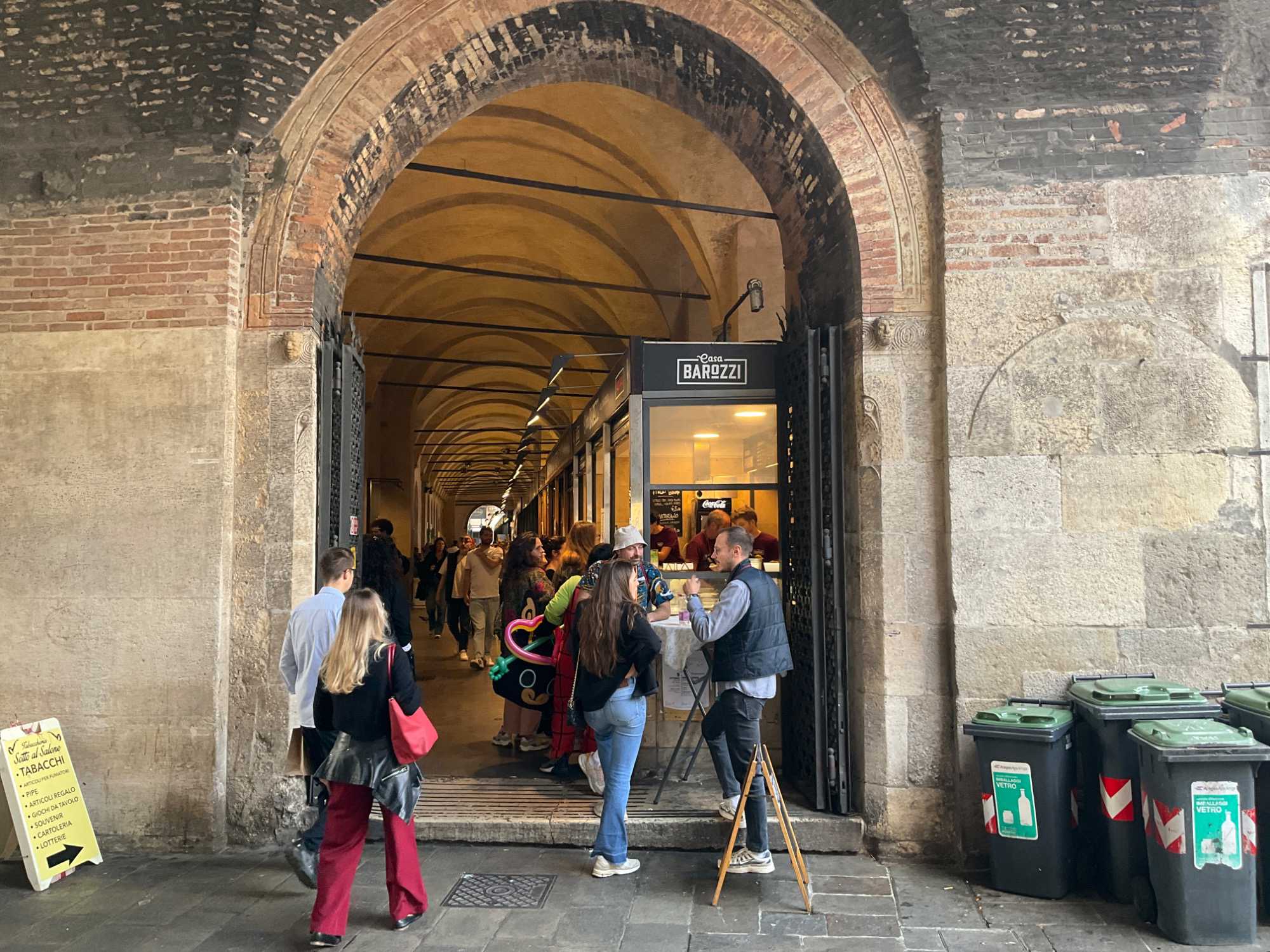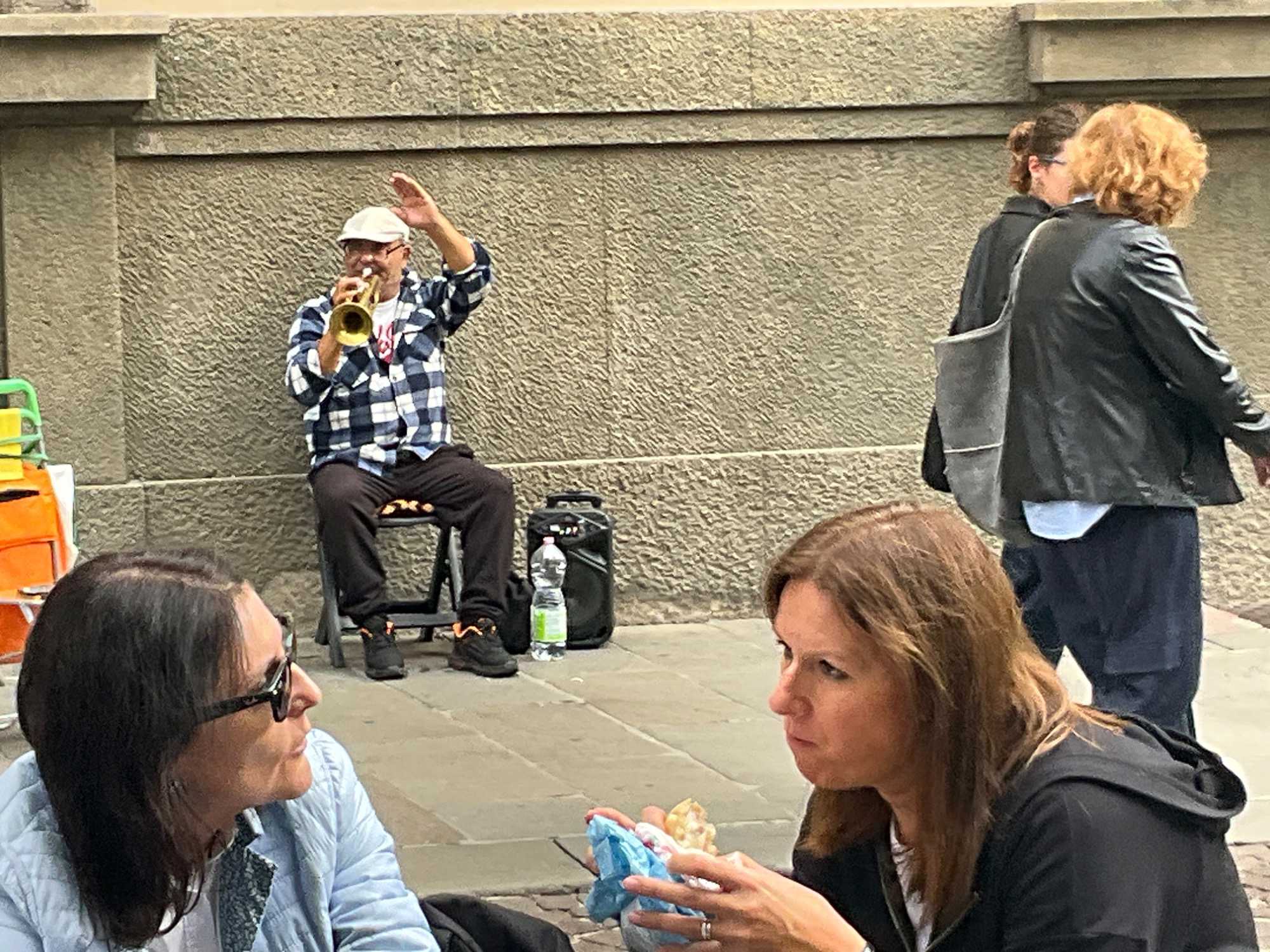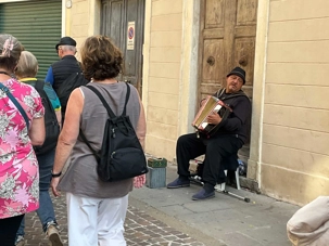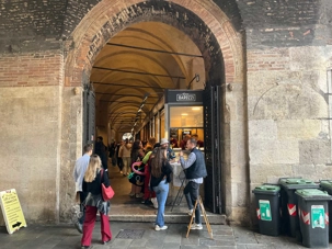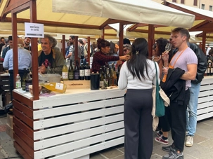 Aujourd’hui on a découvert la foire du vin sur la Piazza delle Erbe. Toutes générations confondues, les habitants fêtaient en dégustant les vins locaux que les producteurs présentaient. Au moins une cinquantaine de kiosques installés dehors invitaient tous et chacun à déguster leur production. Le temps était à la fête, quelle belle façon de découvrir une ville, en se mêlant aux gens de l’endroit.