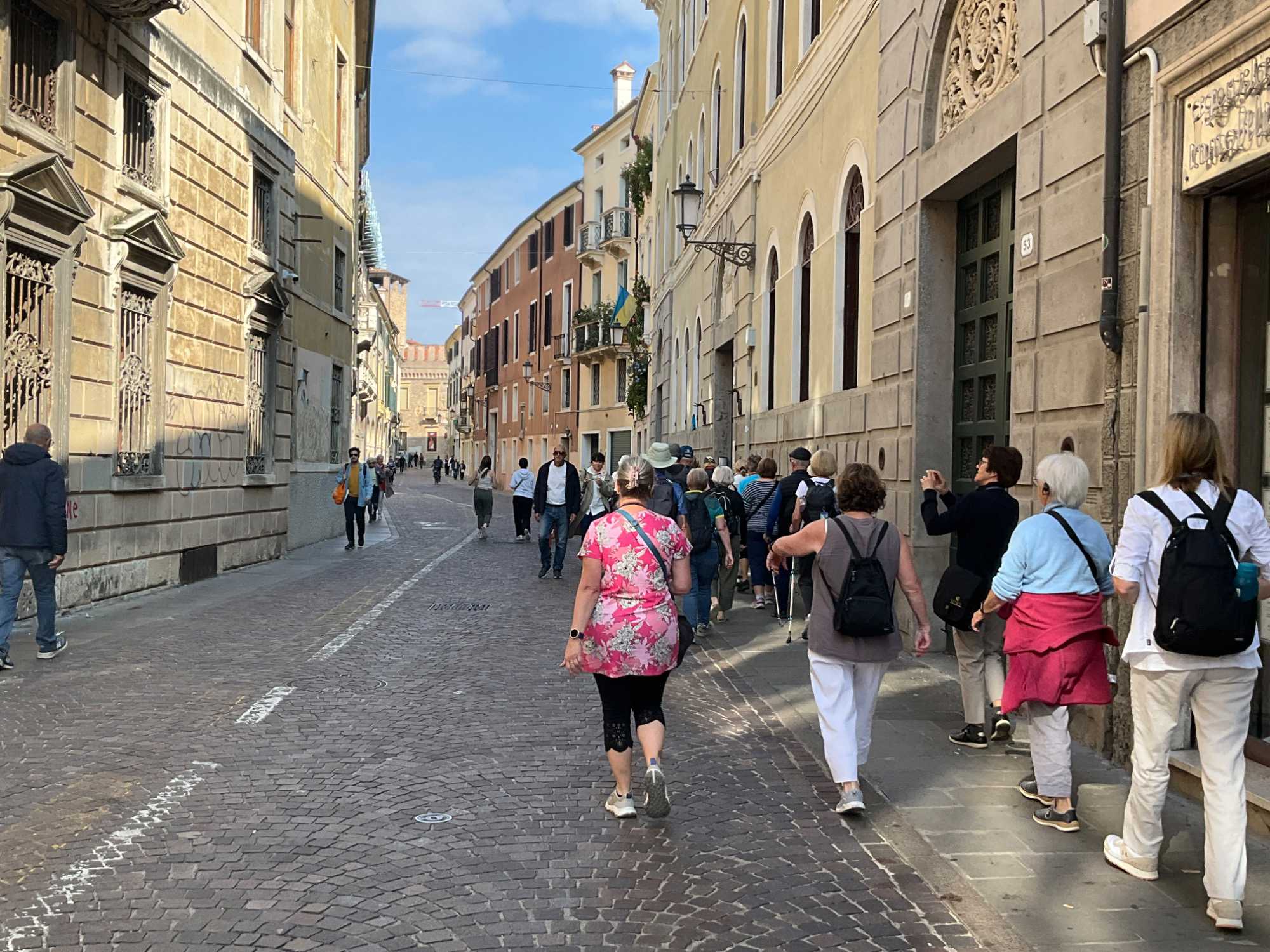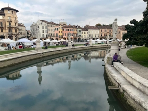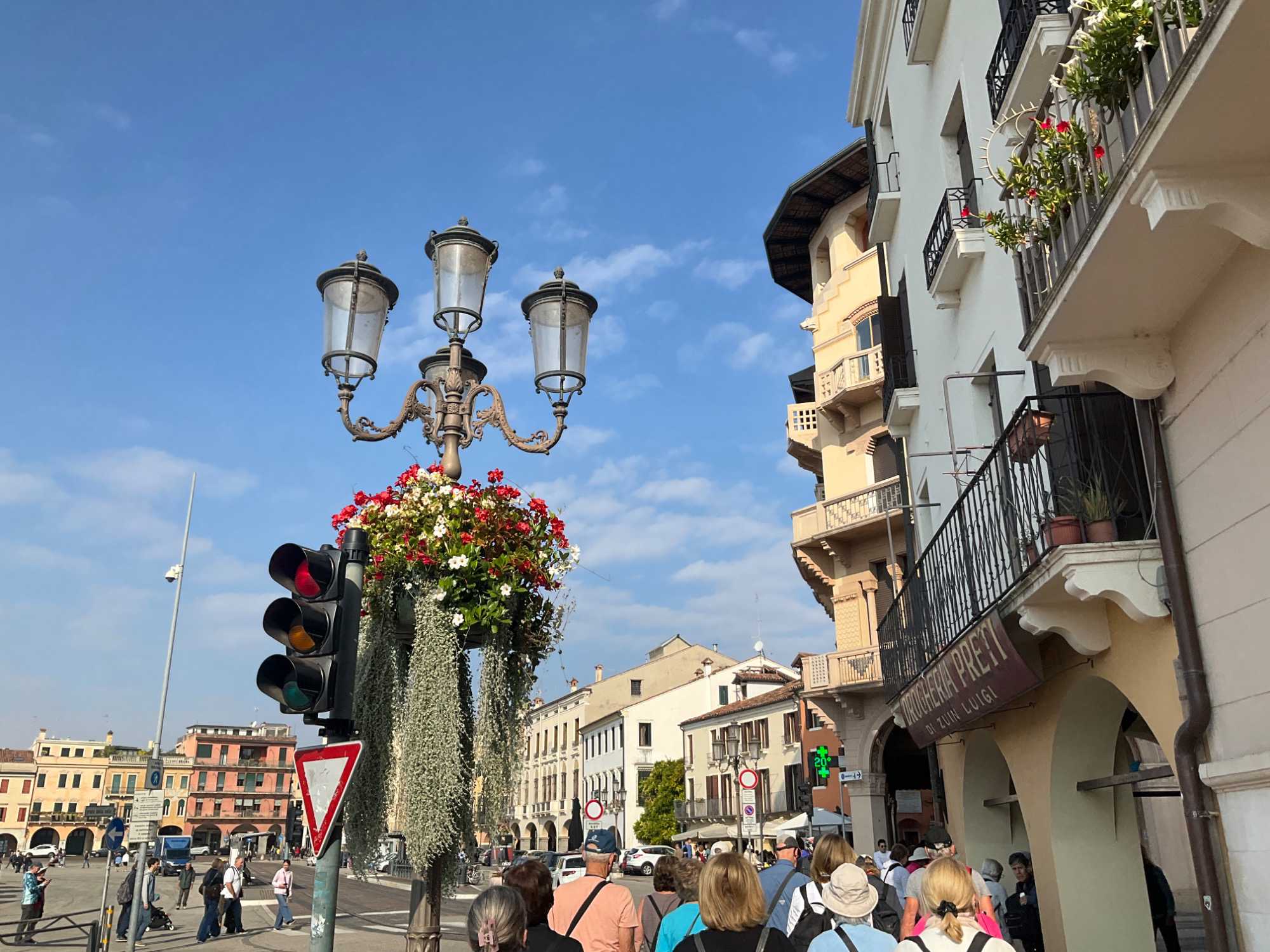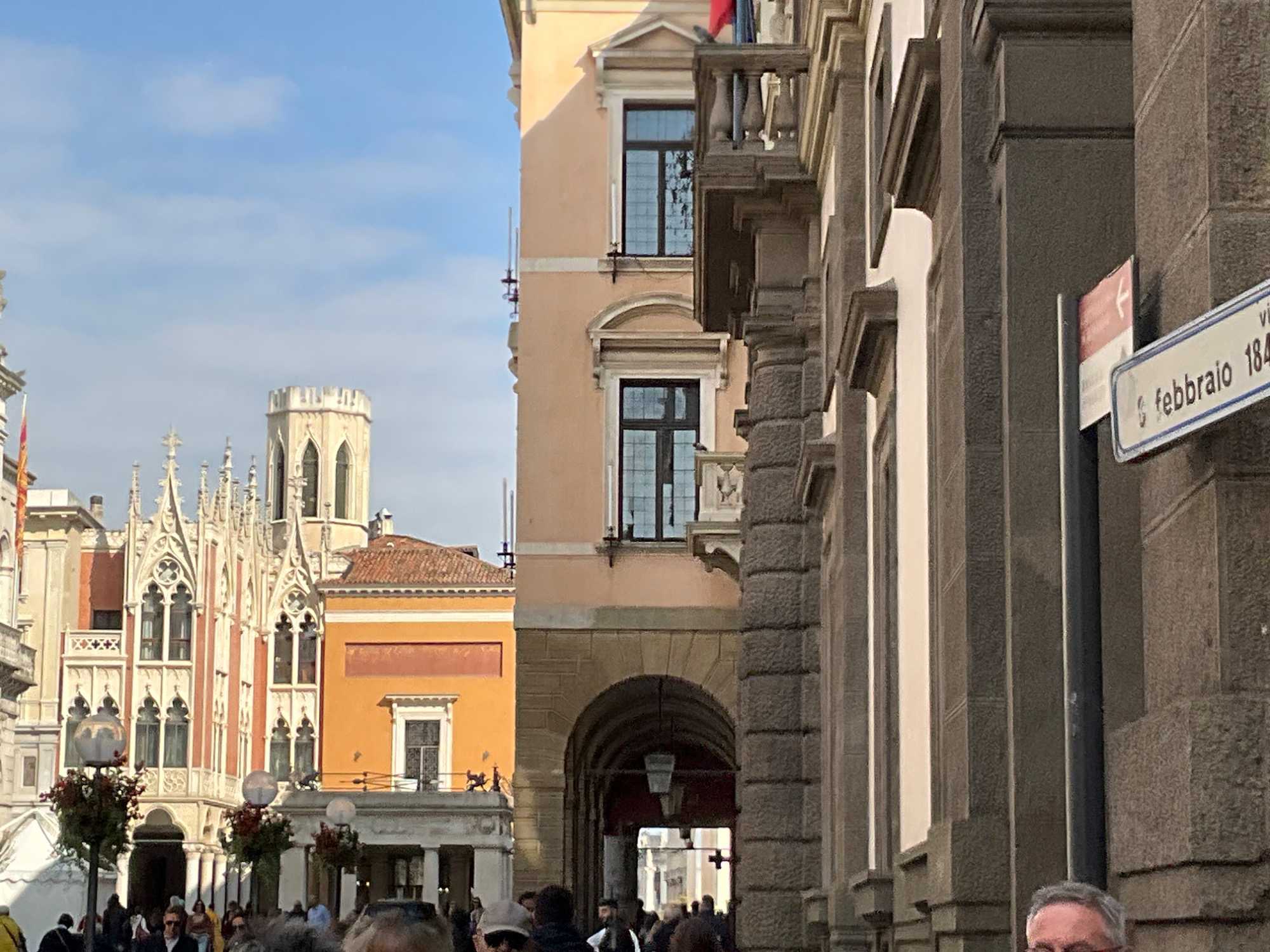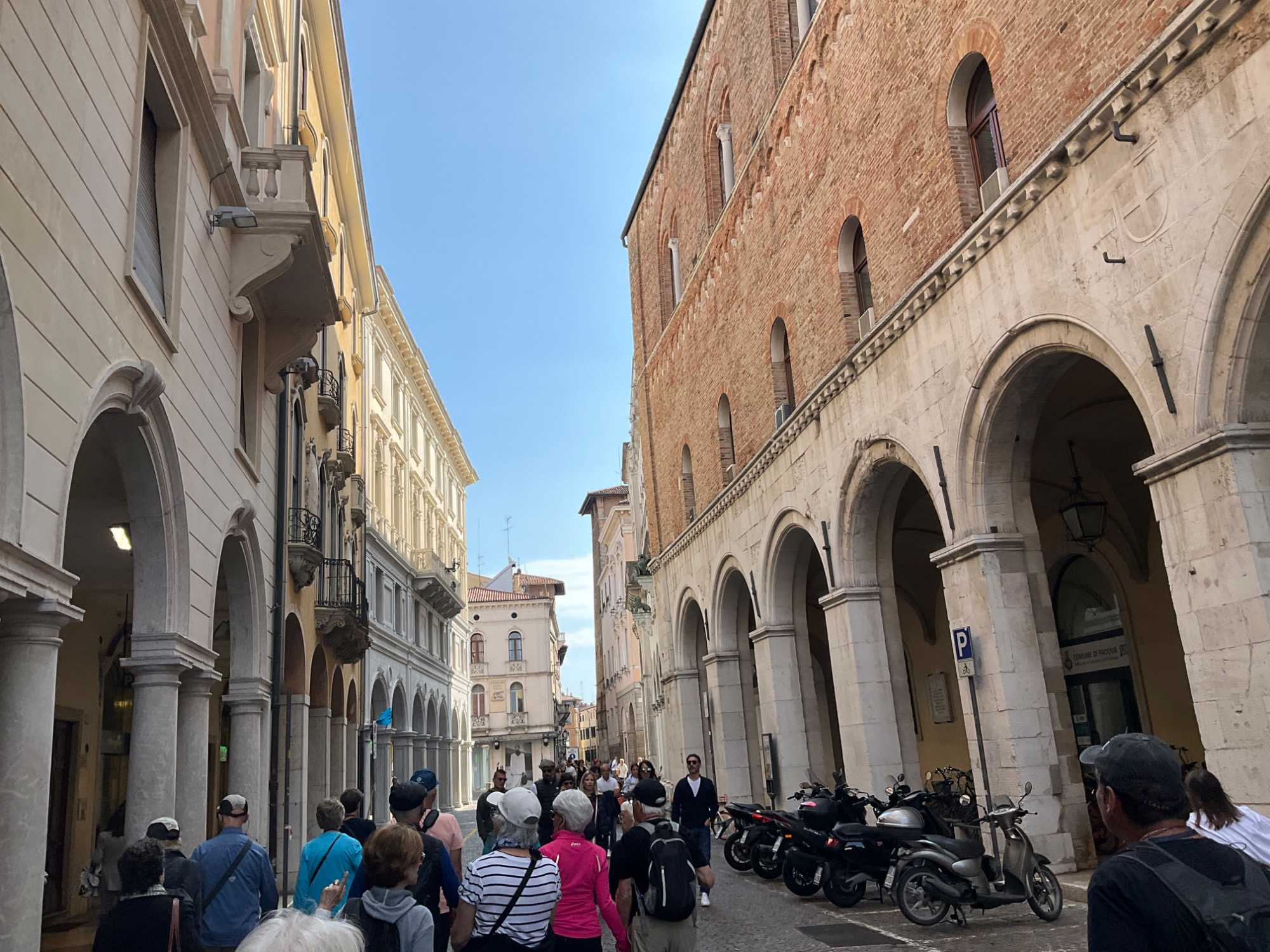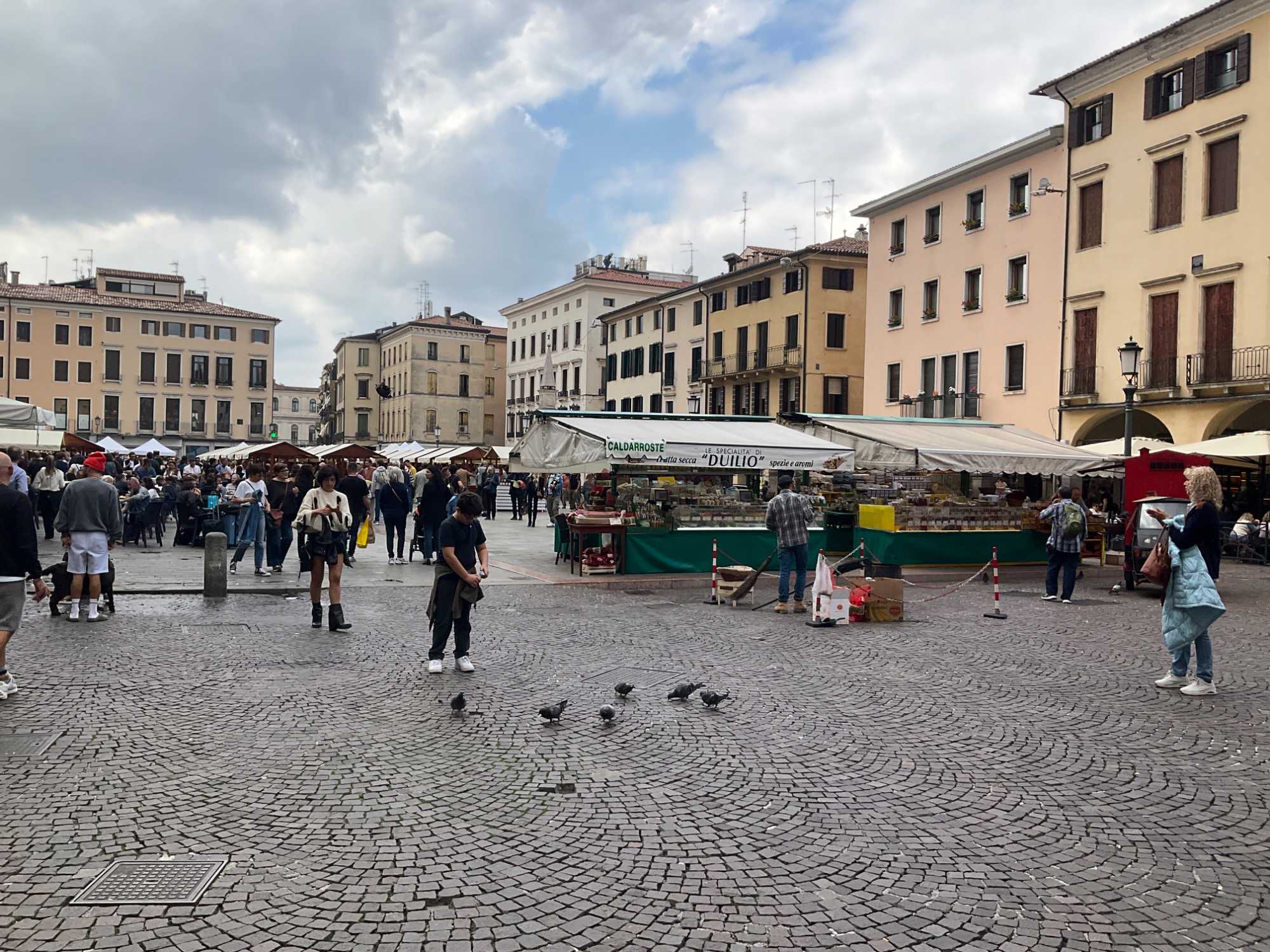 Ce que nous remarquons lors de notre balade avec Claudia, c’est que cette ville pittoresque, possède un réseau dense de rues à arcades s'ouvrant sur de grandes places et de nombreux ponts traversant les diverses branches de la rivière Bacchiglione qui entourent les anciens murs, comme un fossé.