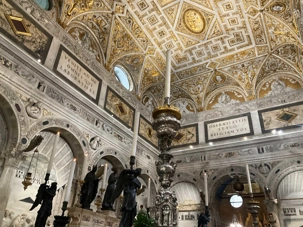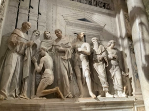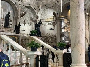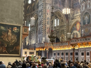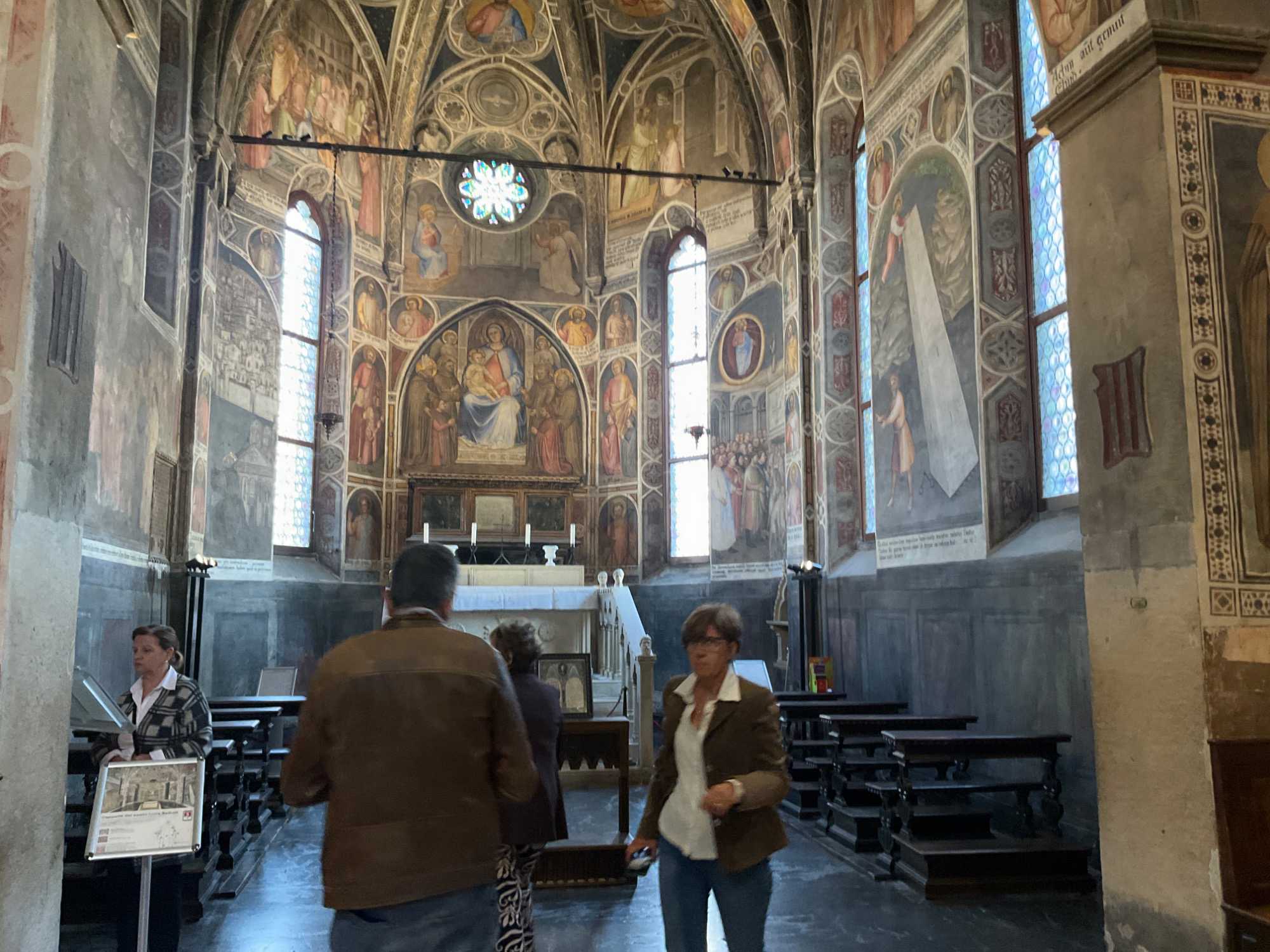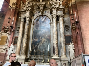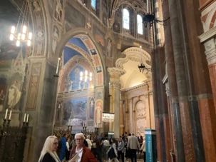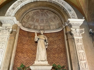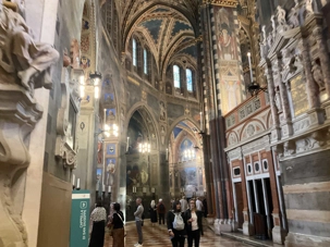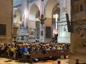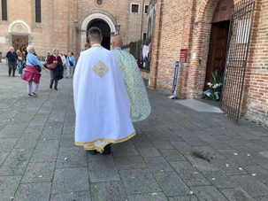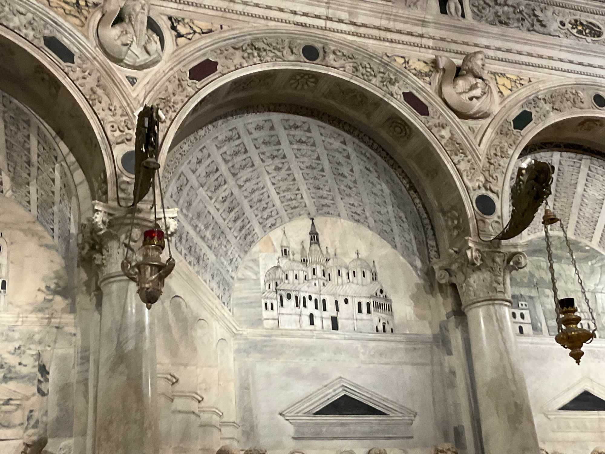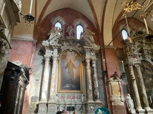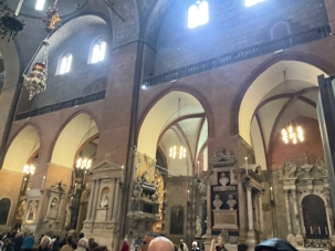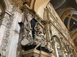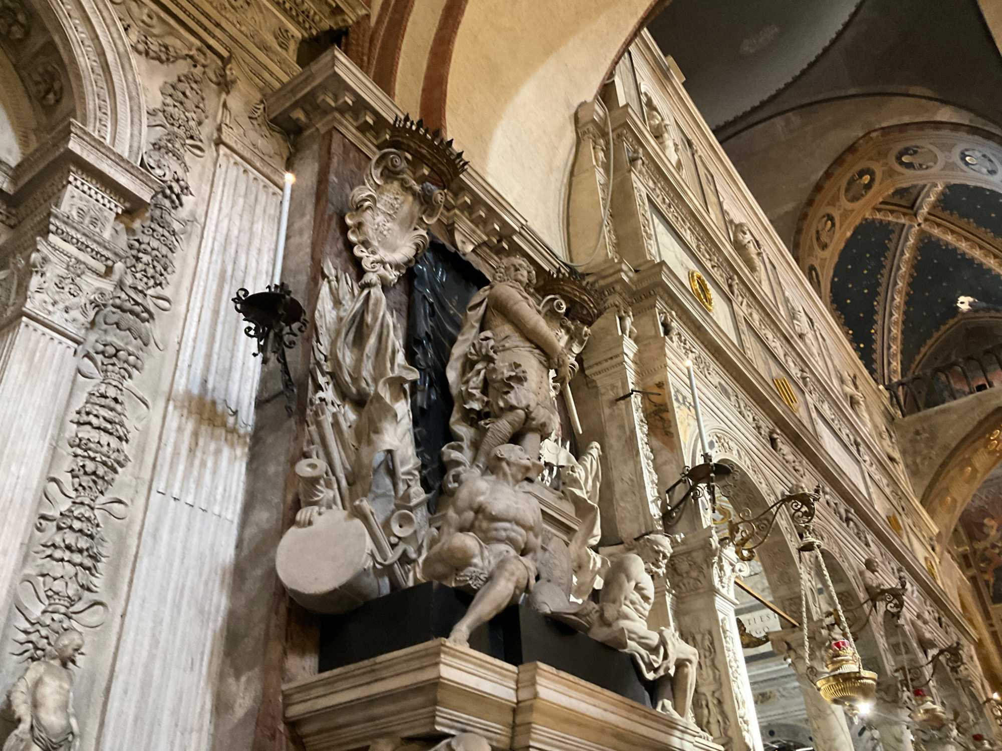 Comment passé à Padoue sans se rendre visiter… la basilique de Saint- Antoine de Padoue! Mais qui était-il cet Antoine? On le disait frère franciscain portugais du XIIIe siècle et docteur de l'Église. En y jetant un œil, on apprend que la basilique figure comme deuxième plus grande église de la ville et la plus visitée...mais n’ose pas portée le titre de cathédrale, qui revient au Dôme de Padoue. La statue de Saint-Antoine au-dessus du portail est … une copie. Le corps de Saint-Antoine fut déposé en 1231, dans la petite église « Sainte Marie Mère de Dieu », incorporée à la basilique en chapelle de la Vierge Noire. Un an après la mort de Saint-Antoine de Padoue, en 1231, on commença sa construction et se continua jusqu'en 1310. Alors, lorsque nous ferons nos demandes pour objets perdus à l’avenir, on aura cette église en tête! Vous dire l’immensité et la richesse de cette basilique serait minimisé l’importance de cette basilique. Les tableaux, l’autel, les fresques, les statues, tout respire le recueillement. Notre église préféré du voyage. Ah oui, lors de notre passage (un dimanche), la basilique débordait de fidèles, des plus petits aux plus grands. Une autre différence avec les perrons d’églises plus souvent vides chez nous.