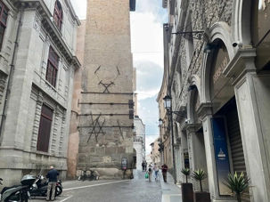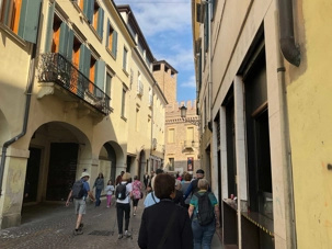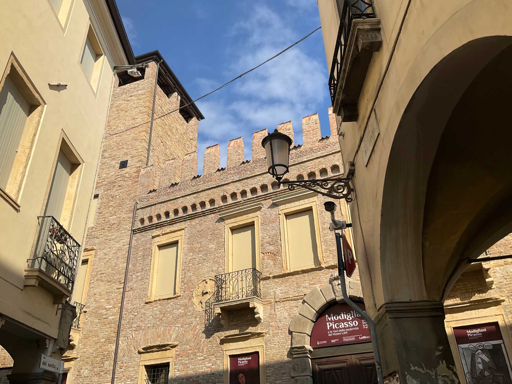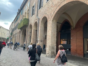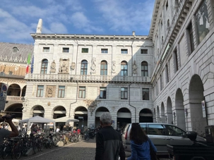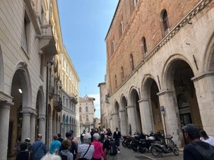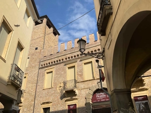 Ici, toutes ces piazza immenses sont pleines de vie, les gens s’y rassemblent tous les jours. Nous à -30 C, l’hiver, ces gigantesques places seraient…inoccupées. Mais pendant des siècles, ces piazza furent le théâtre de fêtes civiques, de tournois et un espace de représentation de la ville. Les maisons qui entourent ces lieux, sont toujours d'époques et de styles divers, et se dressent pour la plupart sur des portiques des XIVe et XVe siècles. Certaines portent encore des décorations médiévales et Renaissance ce qui trahit …leur âge!
