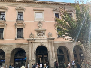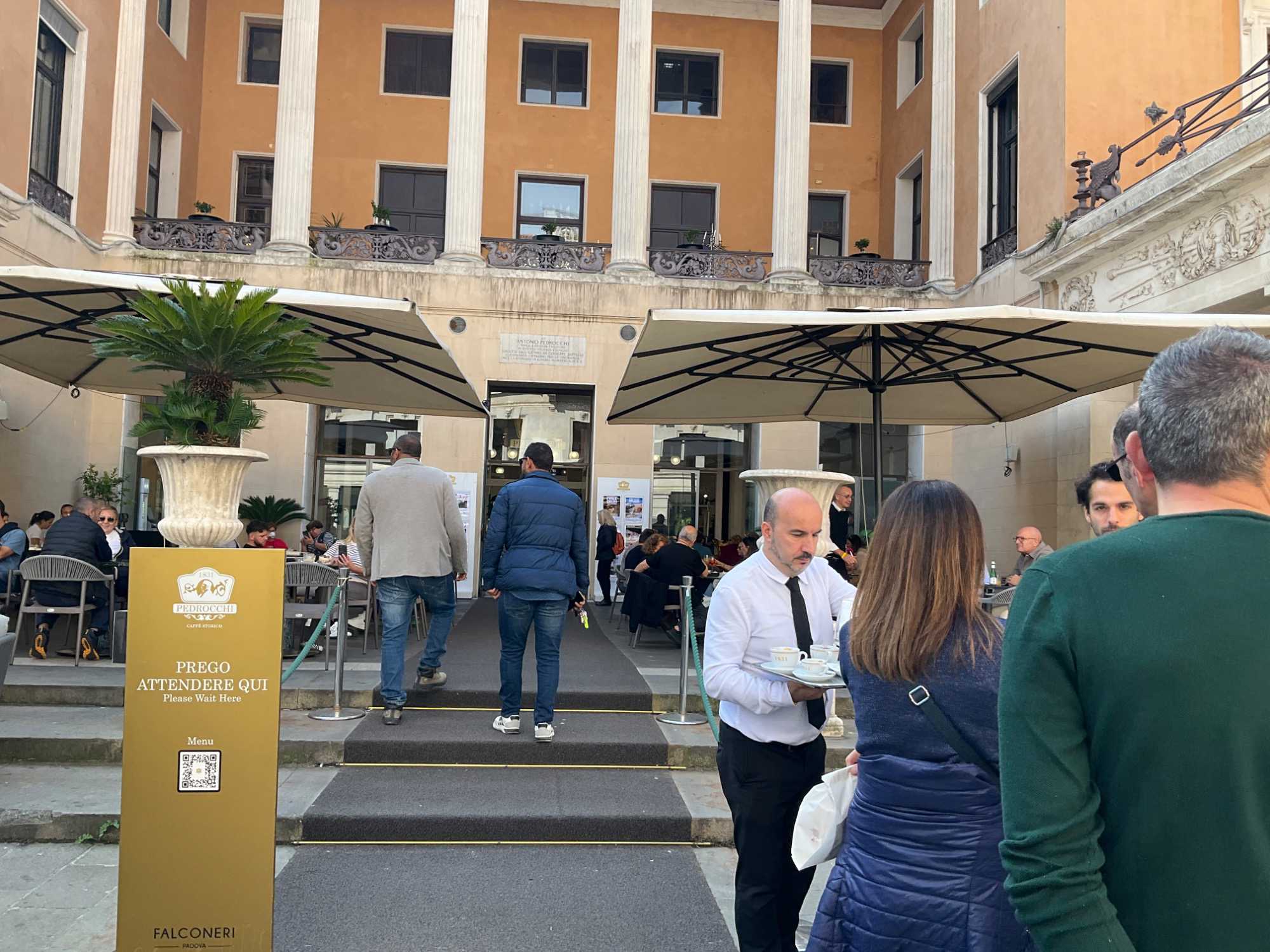 Sur les conseils de Claudia, plusieurs d’entre-nous ont fait une belle découverte en visitant le célèbre Café Pedrocchi, près de l’université et aménagé dans un édifice néoclassique du XIXe siècle, dont une immense salle nommée Rosa, occupe tout le rez-de-chaussée. Au premier étage, son architecte créatif, a imaginé huit salles décorées chacune dans un style différent égyptien, roman, Cinquecento et étrusque. Le portrait du fondateur Antonio (tient comme le saint de la place) Pedrocchi règne dans la place. Notre guide mentionne que le café est connu pour avoir été le théâtre, en 1848, des émeutes estudiantines qui furent le point de départ de la révolte contre les Autrichiens (Ça ne vous rappelle pas chez nous les manifestations des casseroles par les étudiants en 2012?). Célèbre café aussi pour avoir accueilli, de nombreux écrivains parmi lesquels, Stendhal, Lord Byron ou Dario Fo. Stendhal parlait du proprio comme « l'excellent restaurateur Pedrocchi, le meilleur d'Italie ». Mais pourquoi appelait-on ce Café : le Café sans porte? On raconte que jusqu’à la fin de la Grande Guerre, le café était ouvert jour et nuit sans interruption. La spécialité de la maison? Son fameux café aux arômes de crème mousseuse et de chocolat à la menthe. Plusieurs n’ont pu y résister! Réputation confirmée.