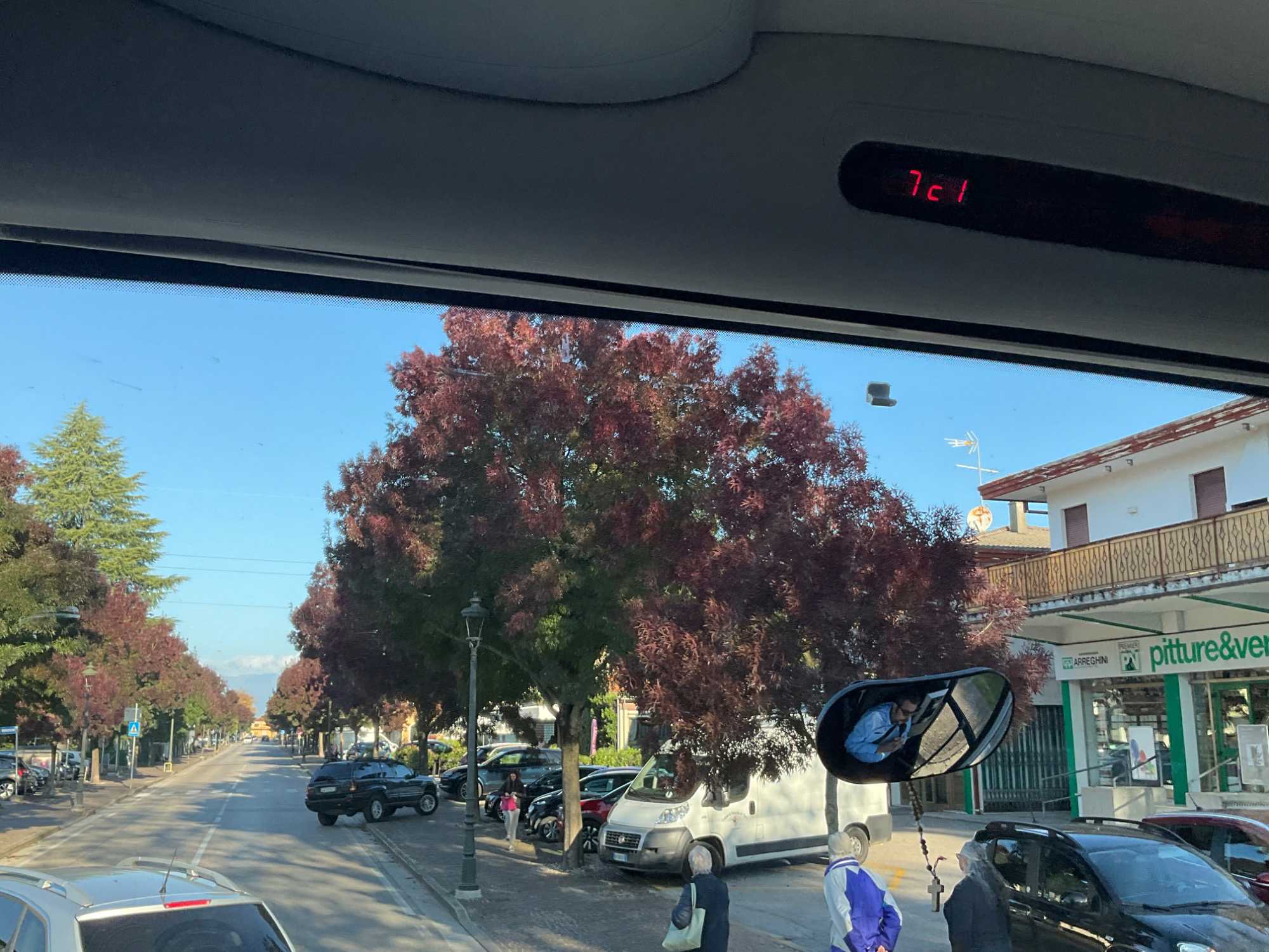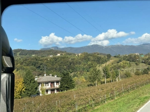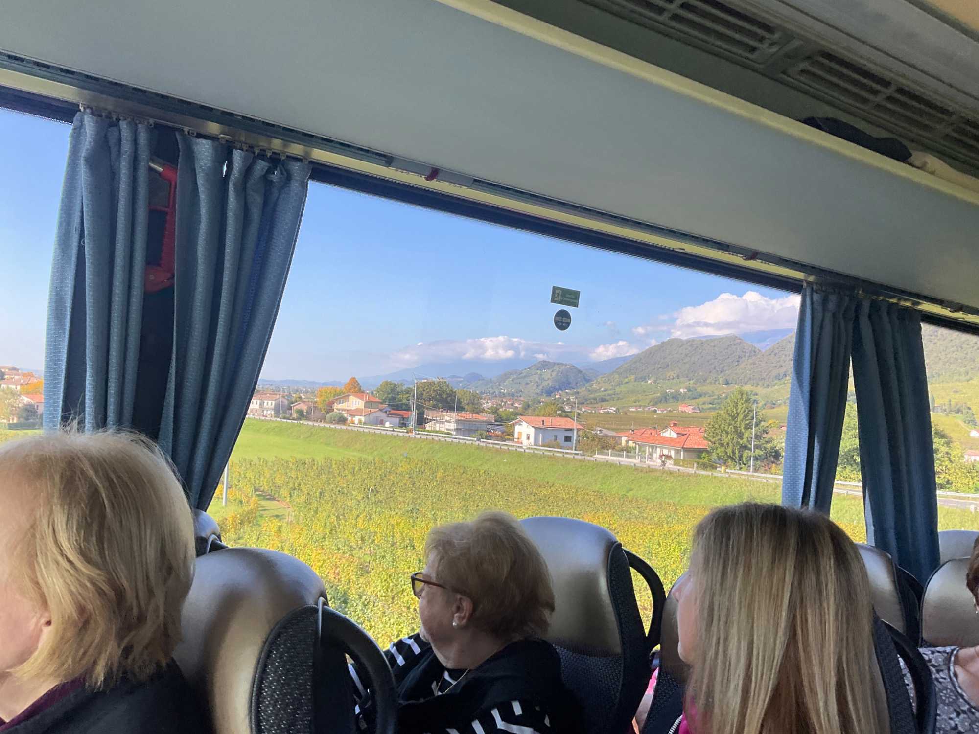 Alex nous mets en contexte de la journée puis commente la route pour s’y rendre. Il opte pour la route régionale à l’aller afin de nous faire passer par tous les petits villages et suivre en partie le fleuve Sile dont la source se trouve à Trevise. D’abord, il nous faut vous parler du circuit pour s’y rendre et de sa géographie. Nous avons refait un certain trajet de la route d’hier lors de notre visite à Cortina d’Ampezzo puis, nous avons bifurqué vers l’ouest pour entreprendre un peu plus loin « La Route du Prosecco et des Vins des Collines vers Conegliano Valdobbiadene ».